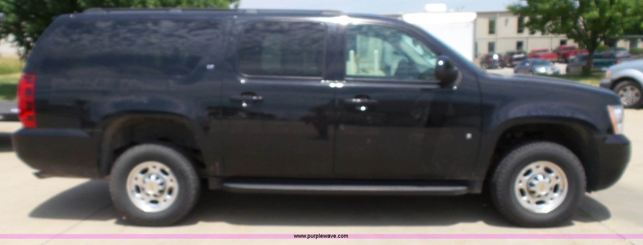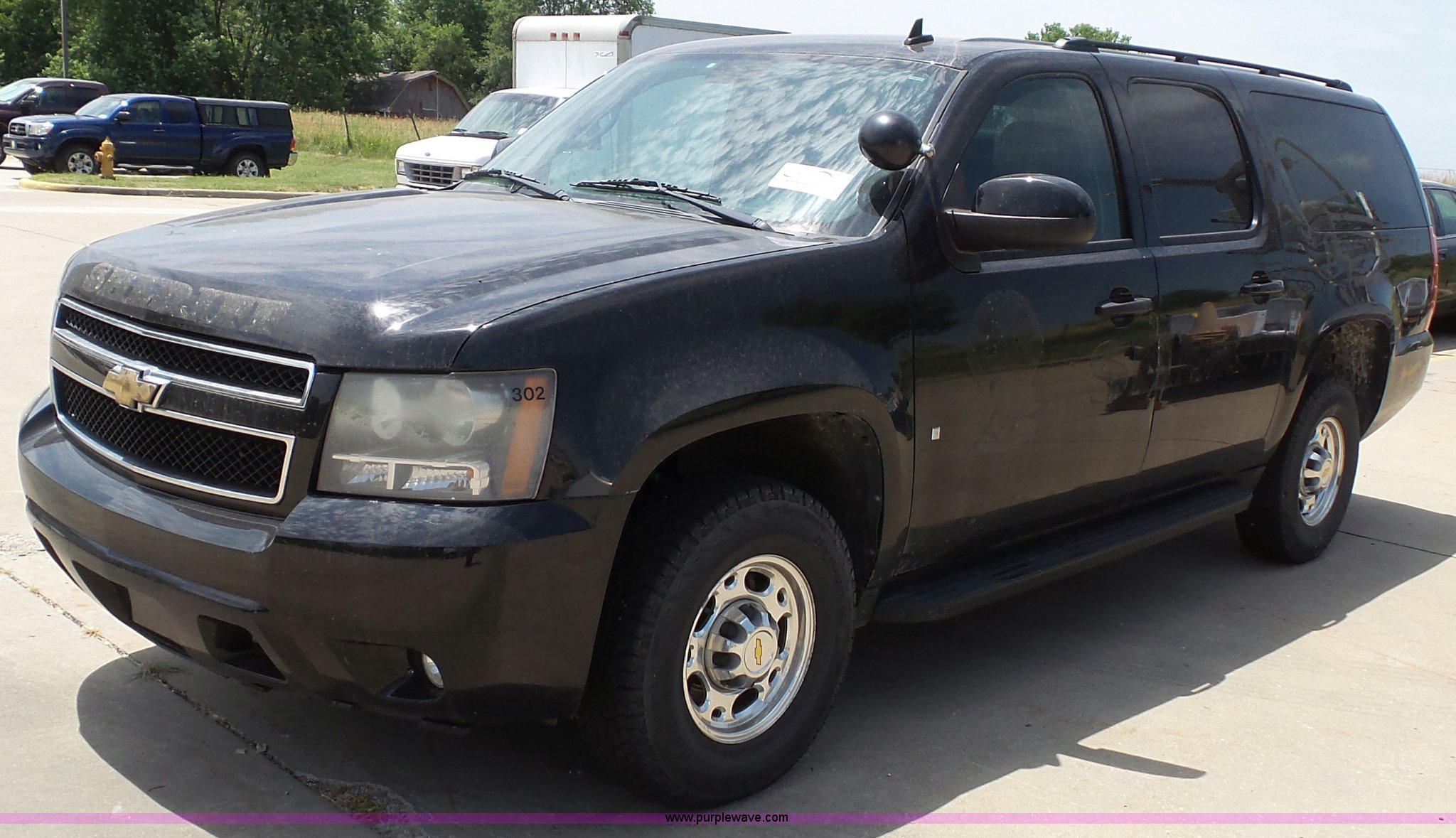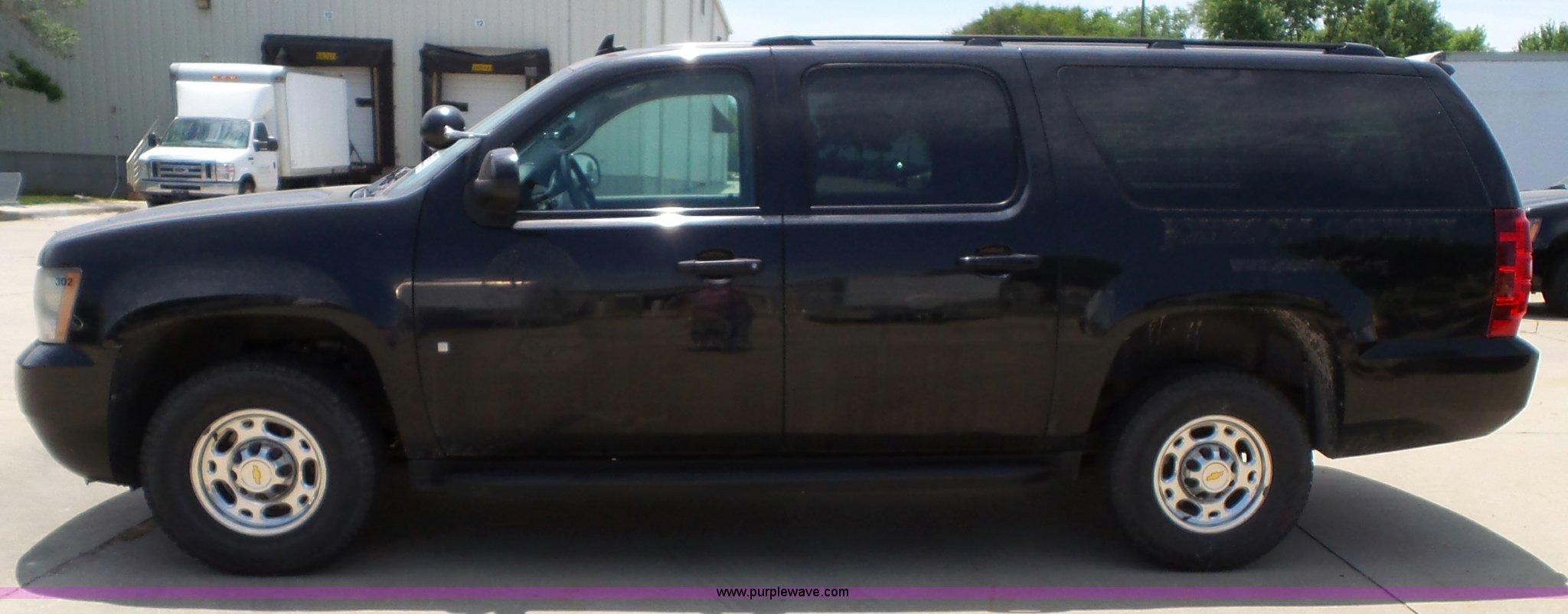 Purple Wave is selling a used Passenger Vehicle in Kansas. This item is a 2009 Chevrolet Suburban 2500 SUV with the following: 145,507 miles on odometer, 6.0L V8 OHV 16V gas engine, Automatic transmission, Four wheel drive, AC and heat, Tilt, Cruise, AM/FM/CD, Power windows, locks, mirrors, and seat, Cloth interior, Front tow hooks, Spotlight, Fog lights, Running boards, Luggage rack, Receiver hitch, Trailer wiring, 245/75R16 tires, Decal residue, Center console missing, Water leaks into cab through spotlight, Unit# SHR302