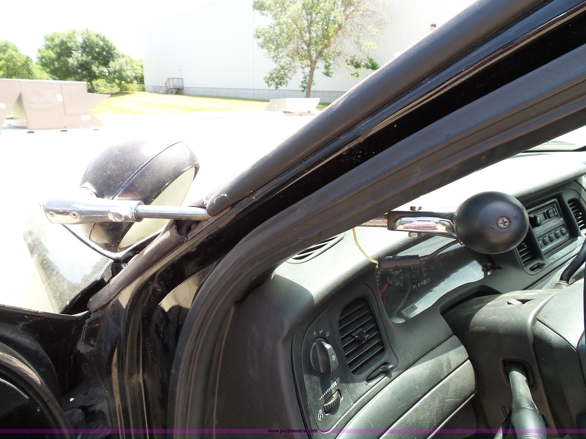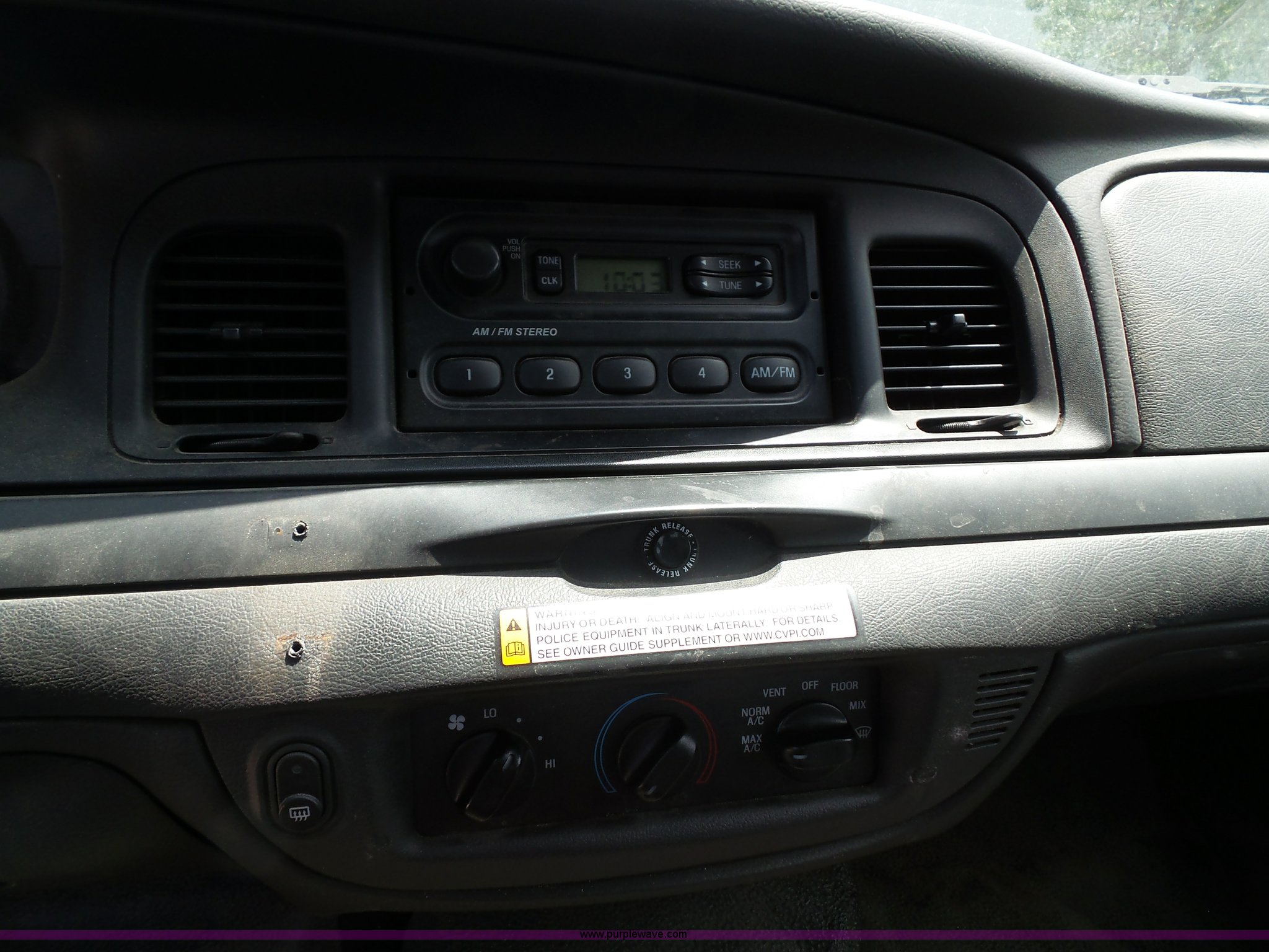Purple Wave is selling a used Passenger Vehicle in Kansas. This item is a 2006 Ford Crown Victoria Police Interceptor with the following: 103,730 miles on odometer, 4.6L V8 SOHC 16V gas engine, Automatic transmission, AC and heat, Non-operational AC, Tilt, Cruise, AM/FM, Power windows, locks, and mirrors, Cloth front interior, Vinyl rear interior, Spotlight, Trunk pak, 235/55ZR17 tires, Clicking noise in dash, Decal residue, Rear passenger door will not open, Hole in ceiling from equipment, Steering issues, Unit must be towed or hauled, Unit# SHR214
