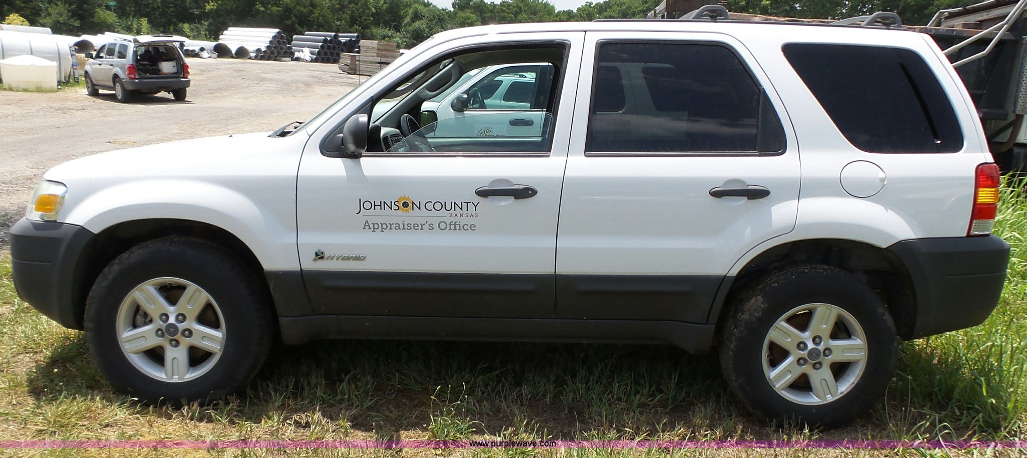 Purple Wave is selling a used Passenger Vehicle in Kansas. This item is a 2006 Ford Escape SUV with the following: 86,915 miles on odometer, 2.3L L4 DOHC 16V hybrid gas engine, Automatic transmission, AC and heat, Tilt, Cruise, AM/FM/CD, Power windows, locks, mirrors, and seat, Cloth interior, Luggage rack, Fog lights, 235/70R16 tires, Rear brakes, rotors, and tie rods may need to be repaired/replaced, Unit# APR3389
