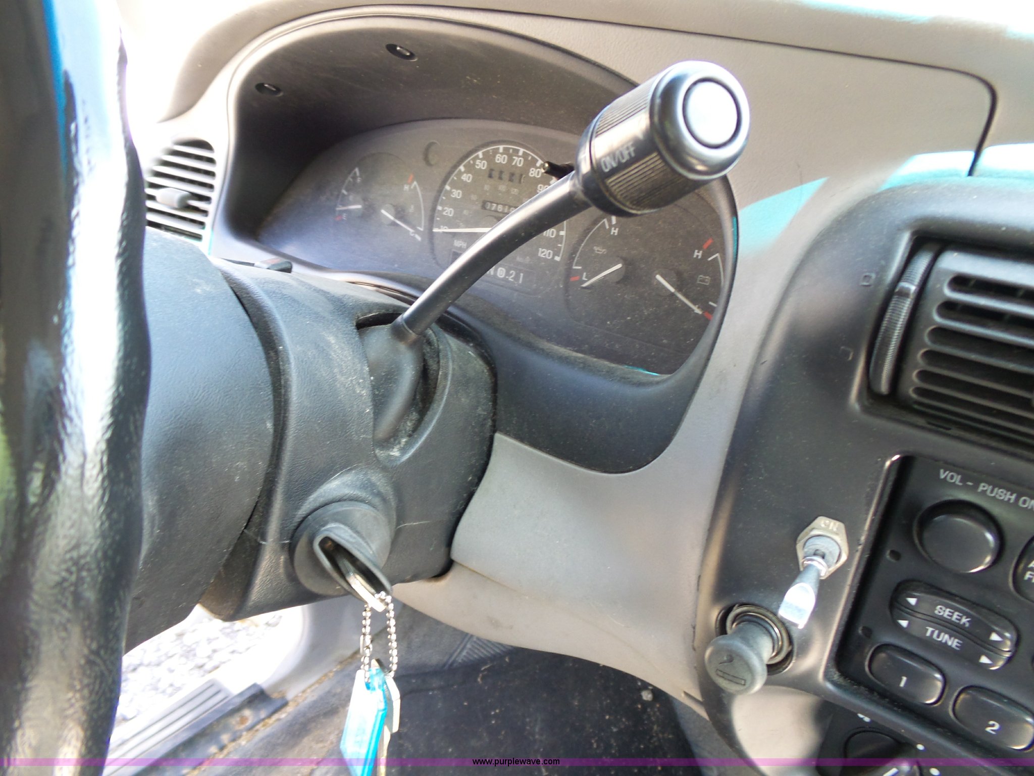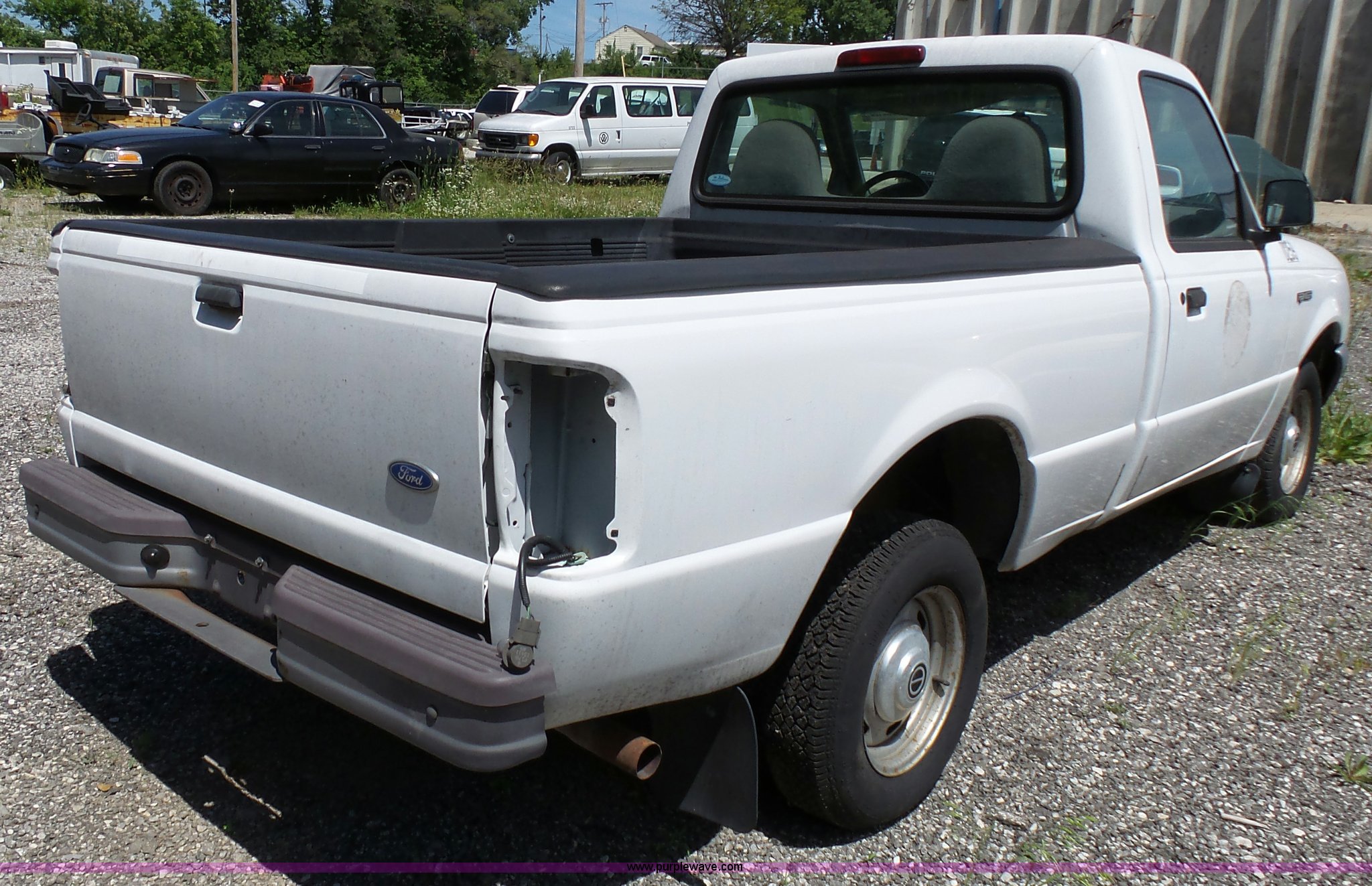 Purple Wave is selling a used Compact Pickup or Van in Kansas. This item is a 1997 Ford Ranger pickup truck with the following: 76,197 miles on odometer, 3.0L V6 OHV 12V gas engine, Automatic transmission, AC and heat, AM/FM, Manual windows and locks, Vinyl interior, P195/75R16 tires, Dead battery, No keys
