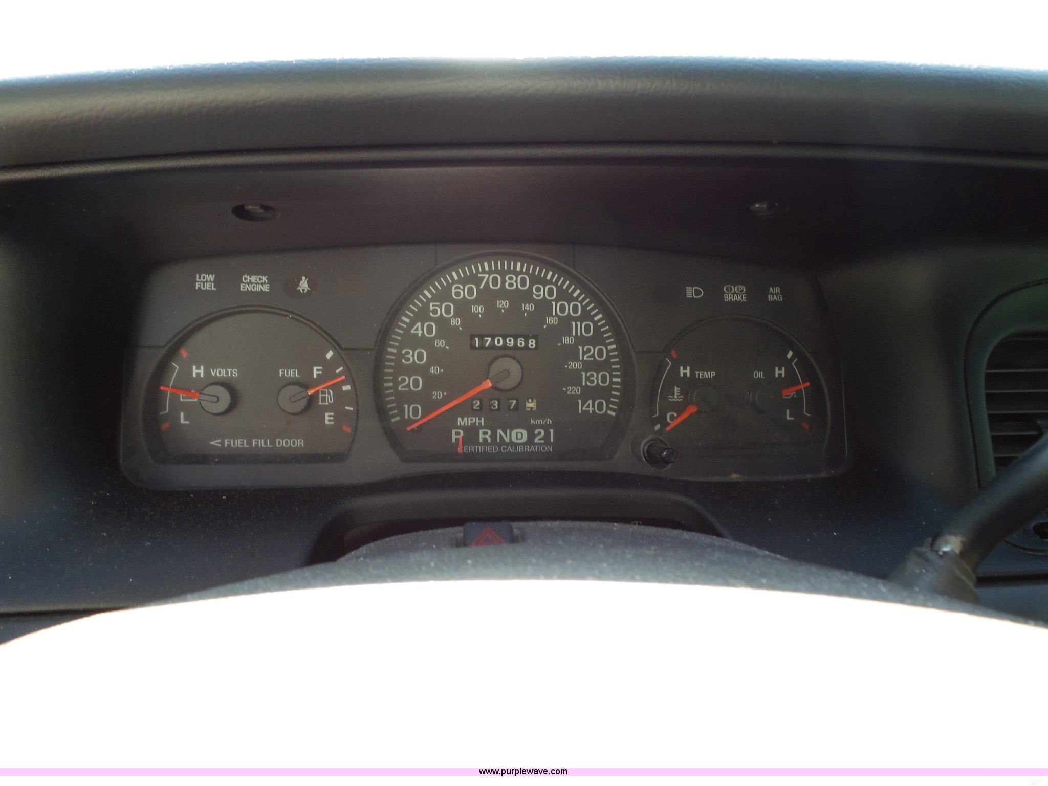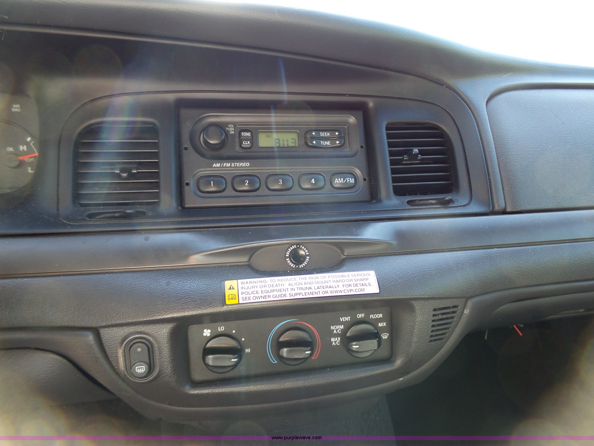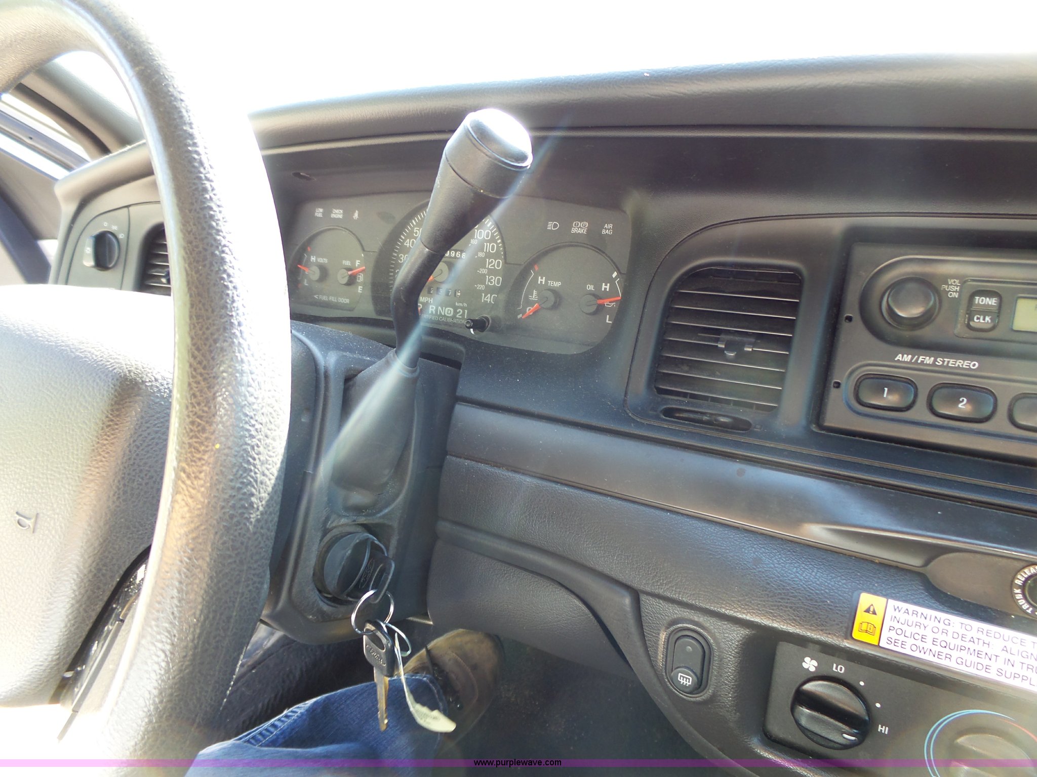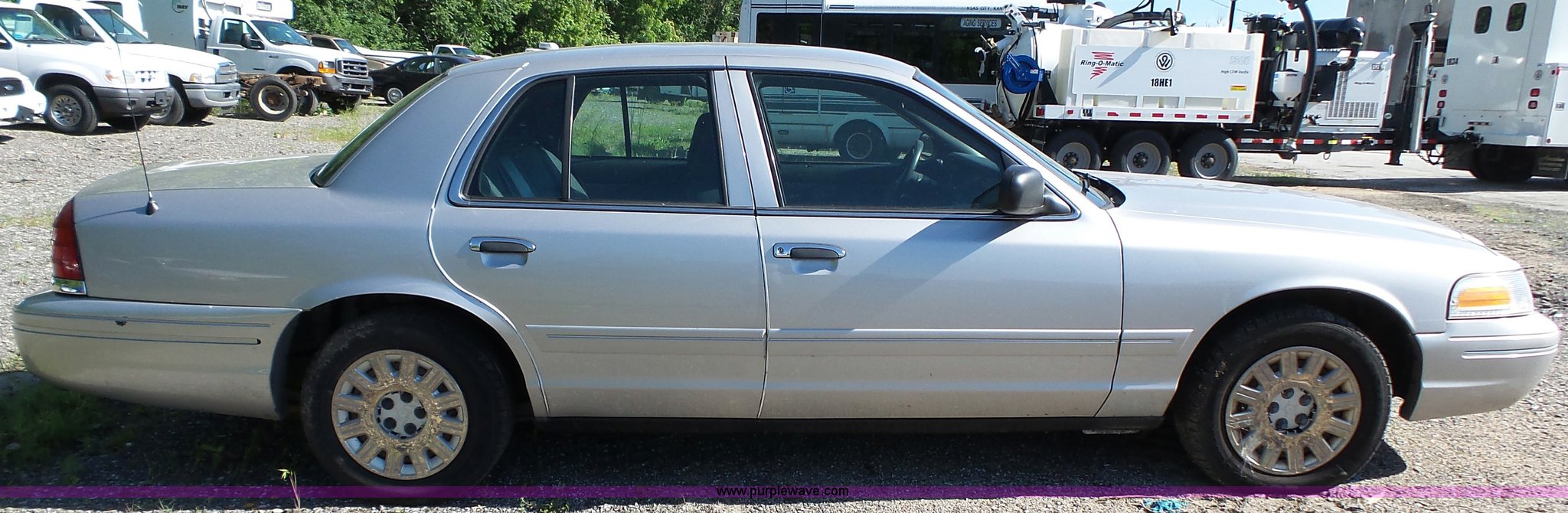Purple Wave is selling a used Passenger Vehicle in Kansas. This item is a 2005 Ford Crown Victoria Police Interceptor with the following: 170,968 miles on odometer, 4.6L V8 SOHC 16V gas engine, Automatic transmission, AC and heat, Tilt, Cruise, Non-operational, AM/FM, Power windows, locks, and mirrors, Cloth interior, P235/60R16 tires, Dead battery, Dash lights inoperable, Unit# 15-215