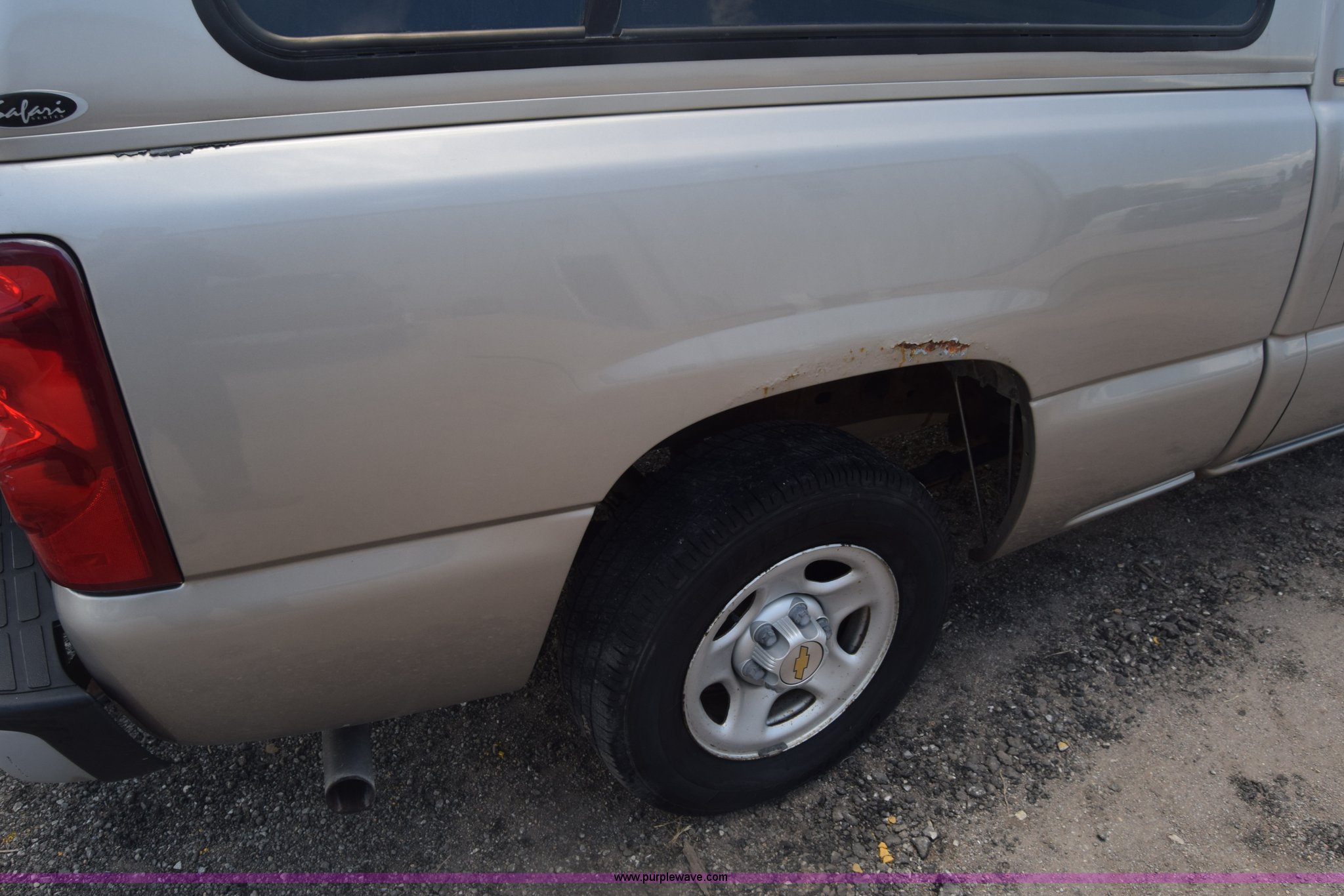 Purple Wave is selling a used 1/2 Ton Pickup or Van in Kansas. This item is a 2003 Chevrolet Silverado 1500 Ext. Cab pickup truck with the following: 93,089 miles on odometer, 4.3L V6 OHV 12V gas engine, Automatic transmission, AC and heat, AM/FM, Manual windows and locks, Vinyl interior, Front tow hooks, Line-X bed liner, Safari topper, 235/70R16 tires, Interior/exterior cosmetic damage, Rust