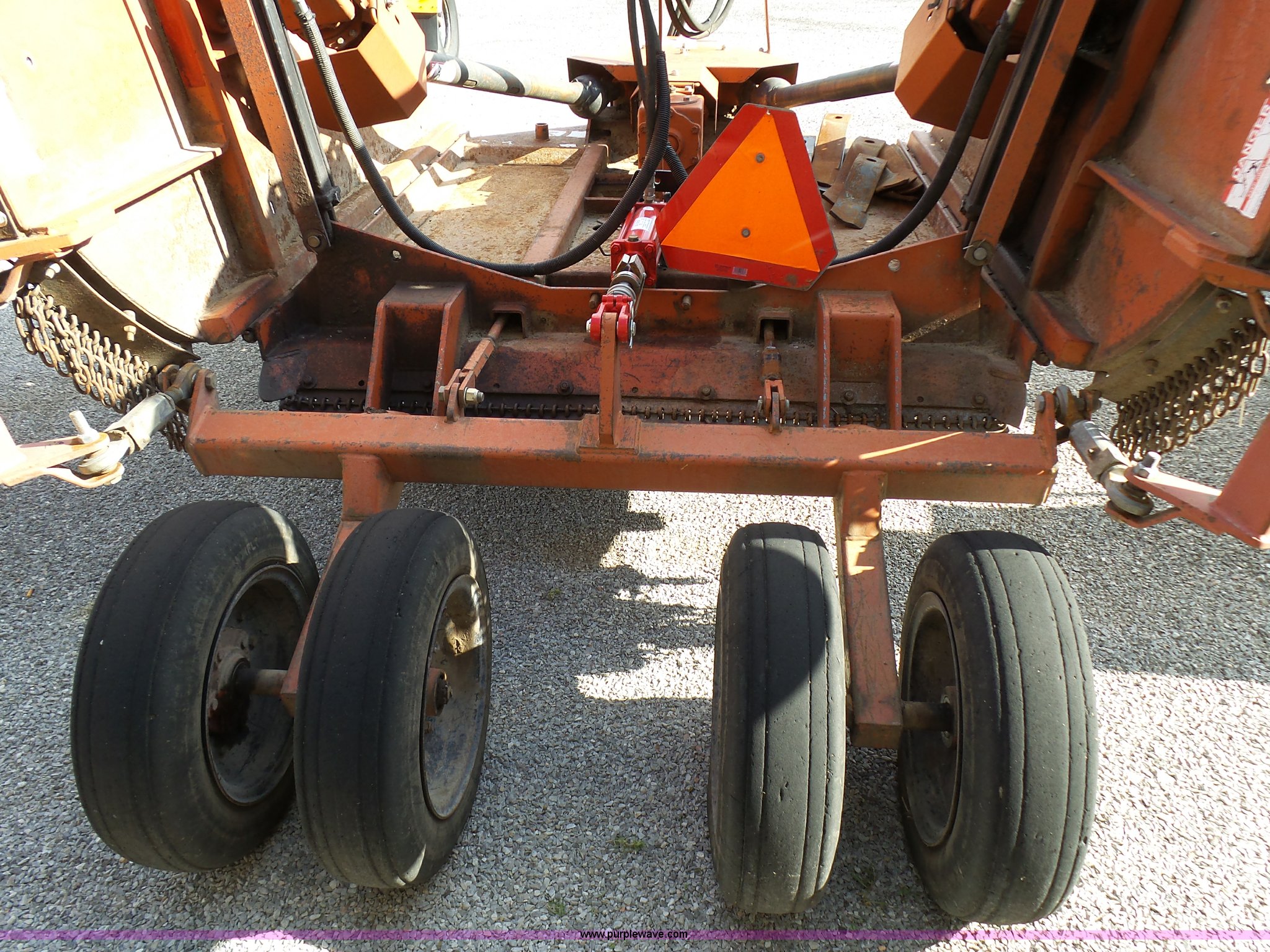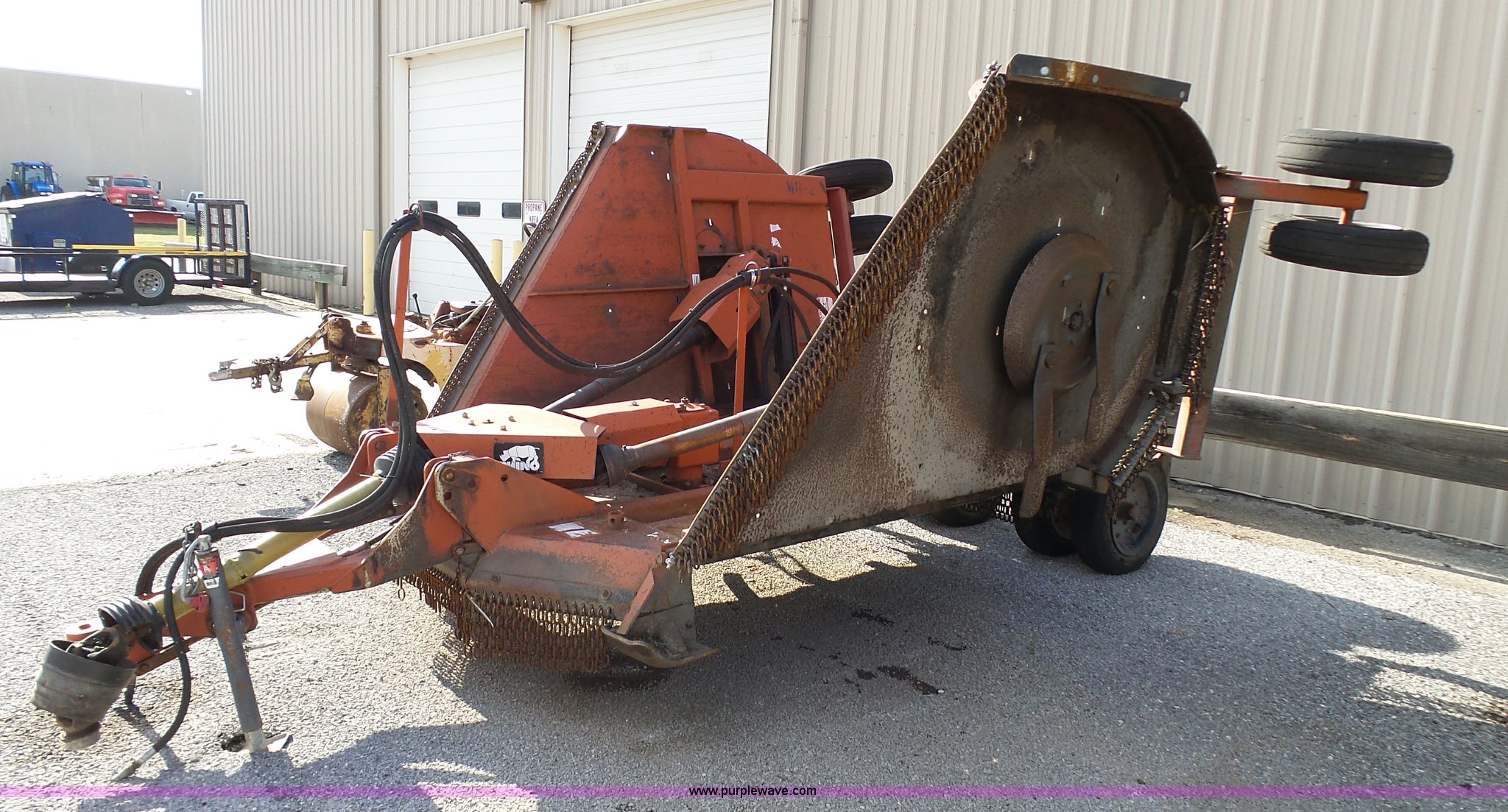 Purple Wave is selling a used Mower, Cutter, Shredder in Kansas. This item is a Rhino FM15 batwing rotary mower with the following: 15'W, Hydraulic lift and fold, 540 PTO, Pin hitch, (8) rear dolly wheels, Recaps, Some tire damage, (7) additional used blades, (2) unused blades, Serial 15191