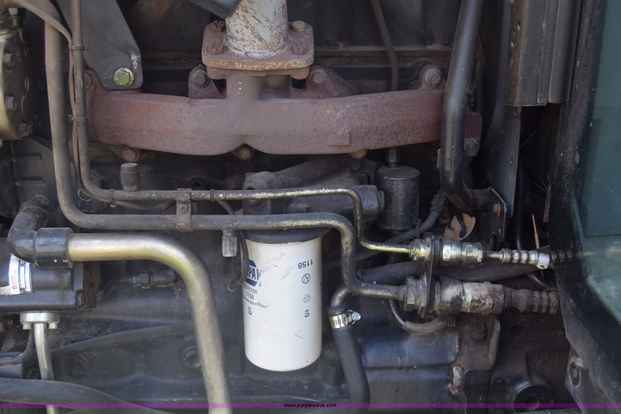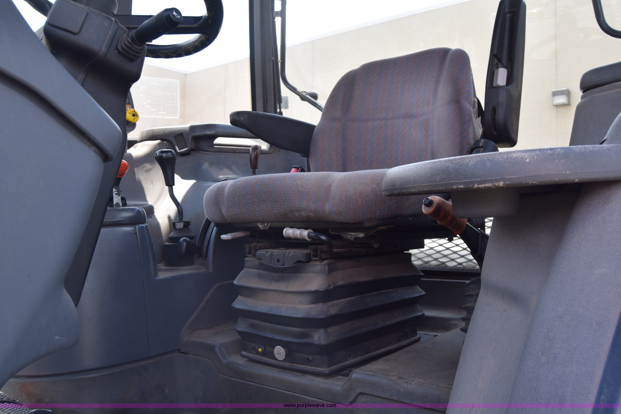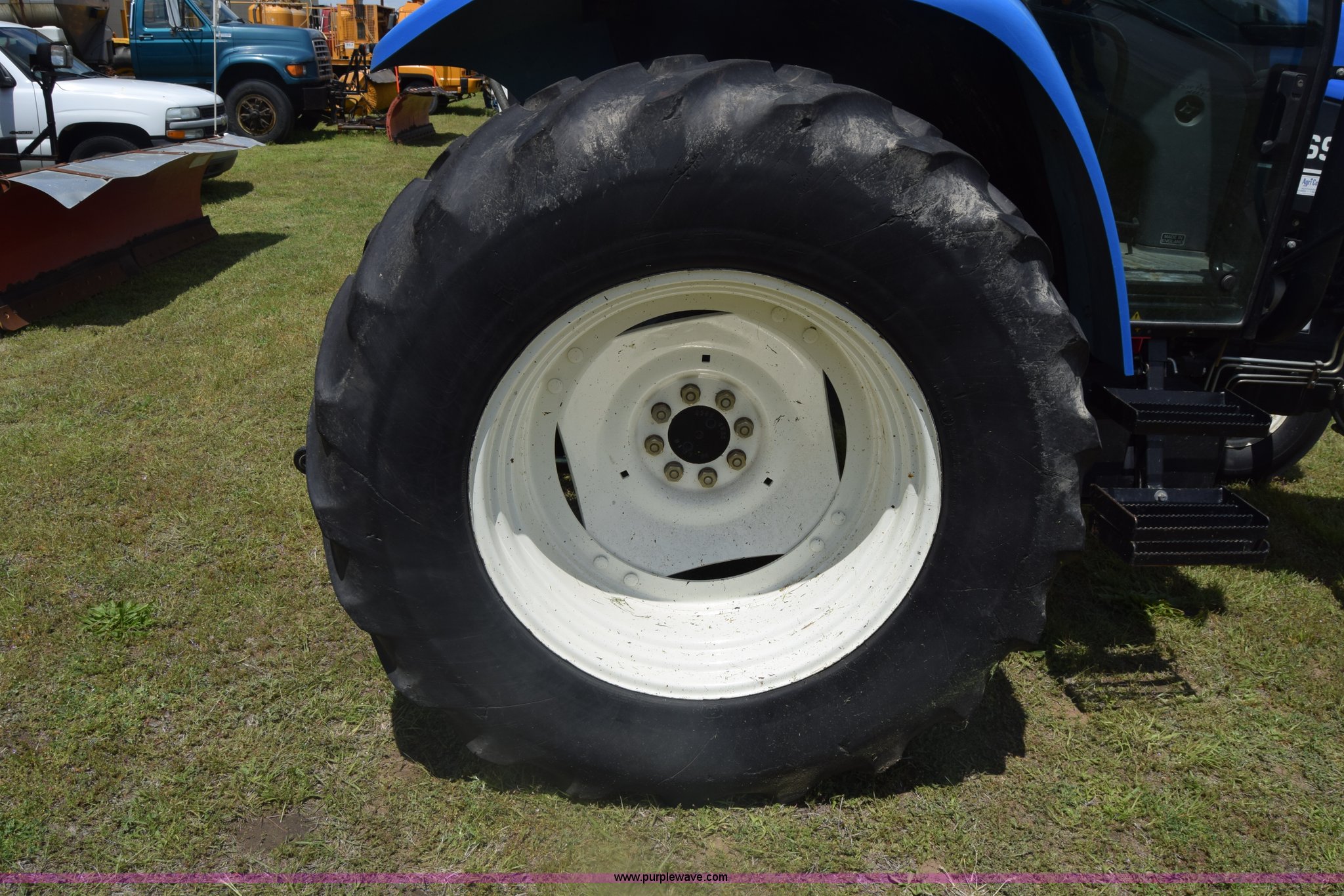 Purple Wave is selling a used Tractor in Kansas. This item is a 2002 New Holland TS90 tractor with the following: 7,113 hours on meter, Case New Holland 450/NE 5.0L four cylinder diesel engine, Serial 17913, Command synchro transmission, 12F-3R gears, AC and heat, Tilt steering wheel, AM/FM, Suspension seat, Shade, Three point, Top link, Seven pin outlet, ISO electrical outlet, 540 PTO, Rear hydraulic remote sets, 10.00-16SL front tires, 18.4R34 rear tires, Serial 185627B