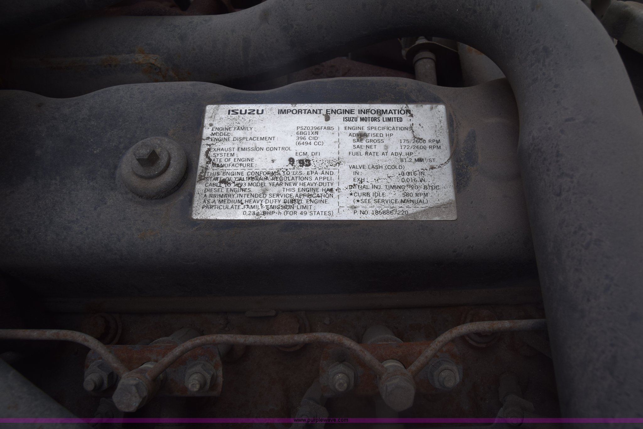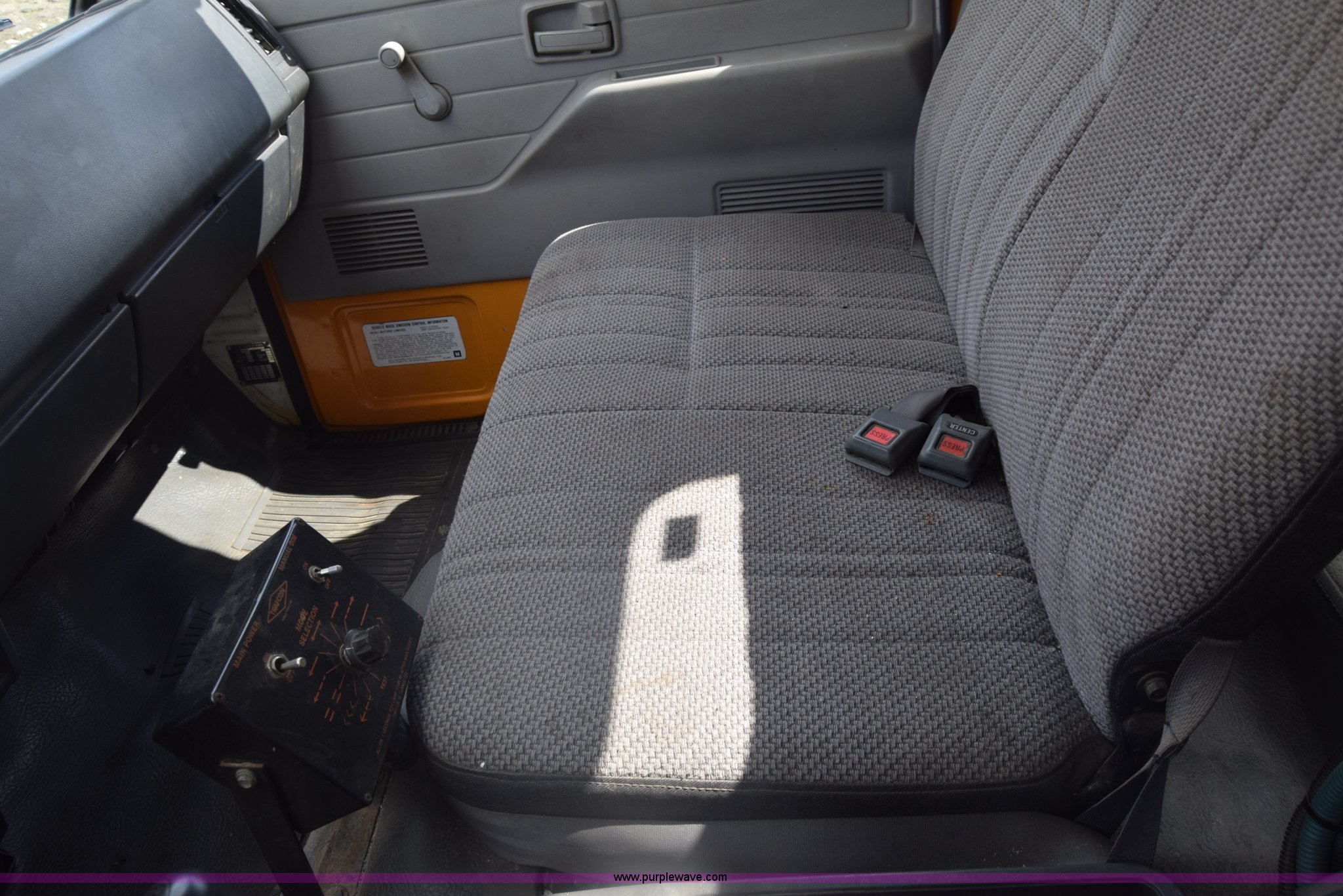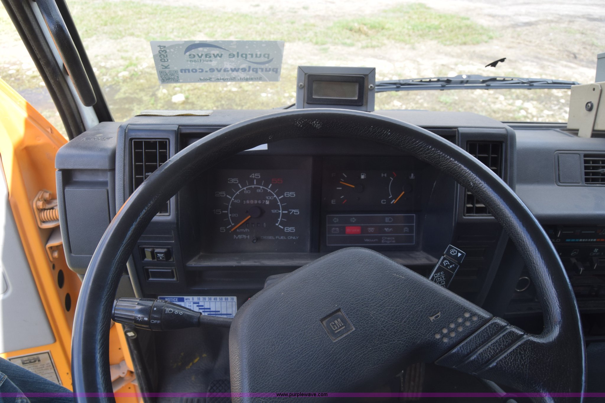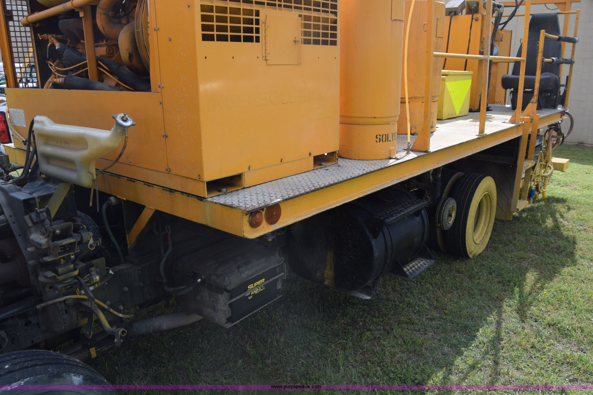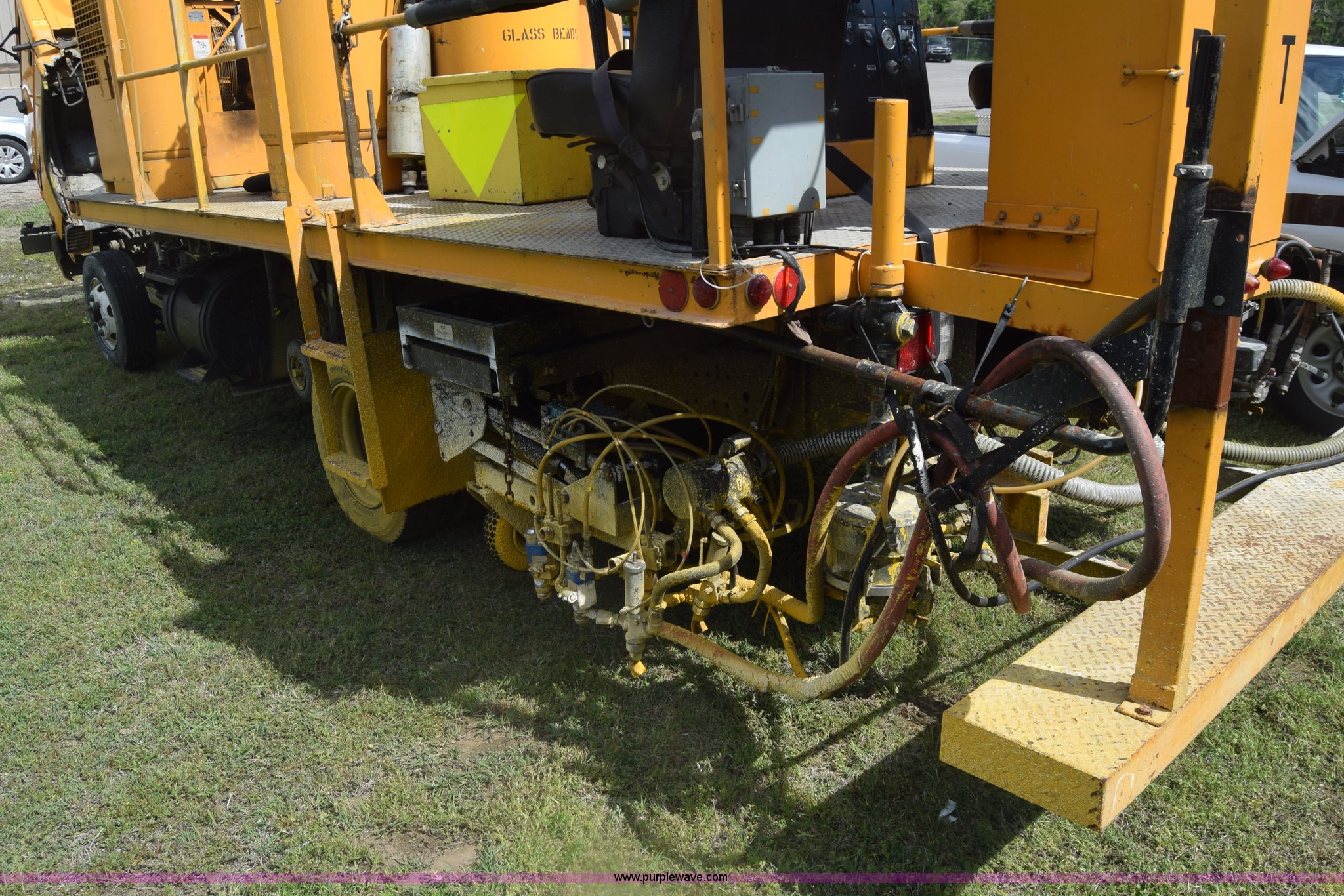 Purple Wave is selling a used Flat Bed Truck in Kansas. This item is a 1994 GMC W5 paint striper truck with the following: 50,367 miles on odometer, Isuzu 6BG1-TC 6.5L six cylinder diesel engine, Five speed manual transmission, Heat, Tilt, AM/FM/cassette, Manual windows and locks, Cloth interior, 16'8"L x 8'W flatbed, 1994 LDI Urbanliner highway striping system, Serial 1069, Trafcon traffic control dash, 1994 Ingersoll Rand compressor, Model P125WJDU, 3,392 hours on meter, Three cylinder diesel engine, Serial 246737UEE157, Left and right operator control center, Rear traffic control board, (2) paint pots, Glass bead pot, Solvent tank, Rollo-scope paint applicators, Front tow frame, Spring suspension, Hydraulic brakes, 215/75R17.5 tires, GVWR 18,000 lbs, Unit# 21