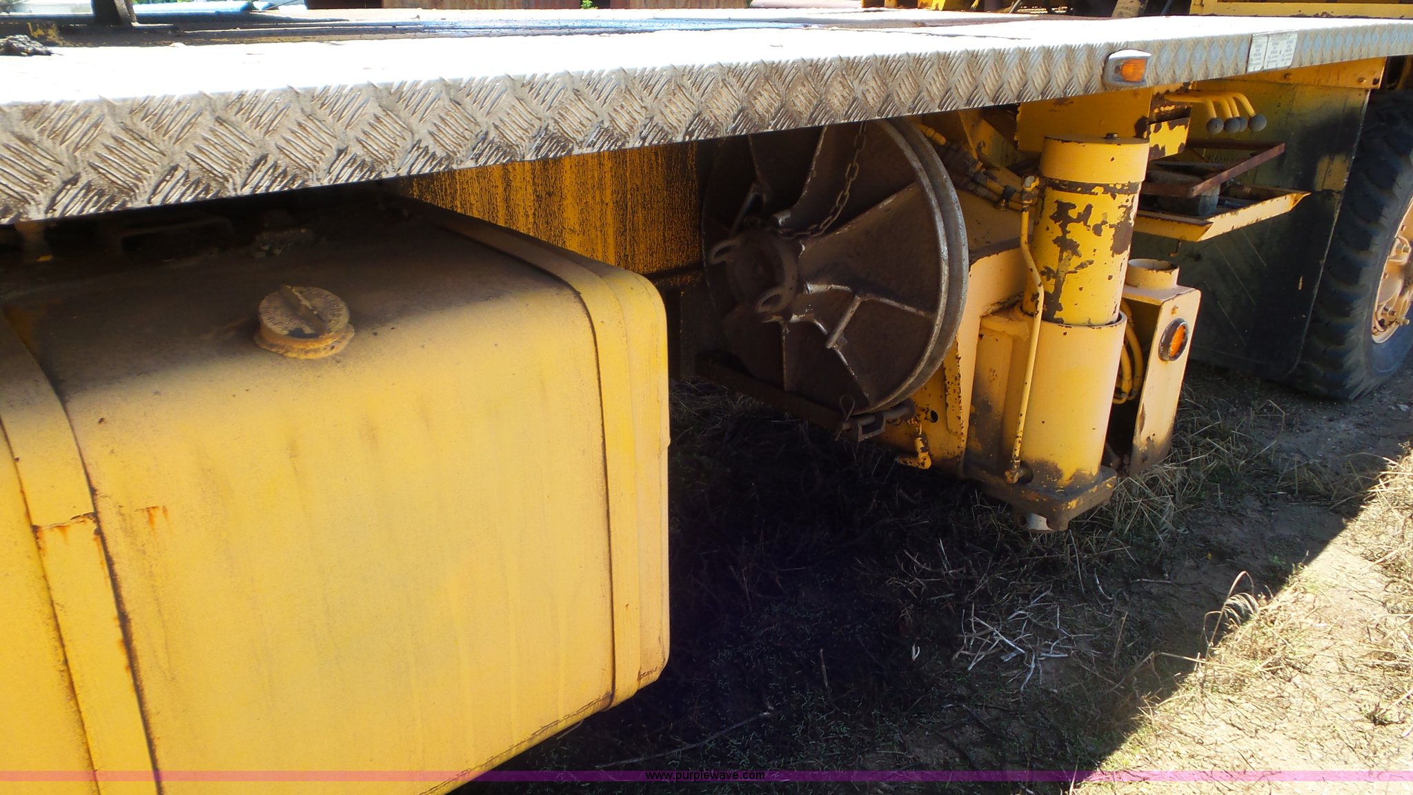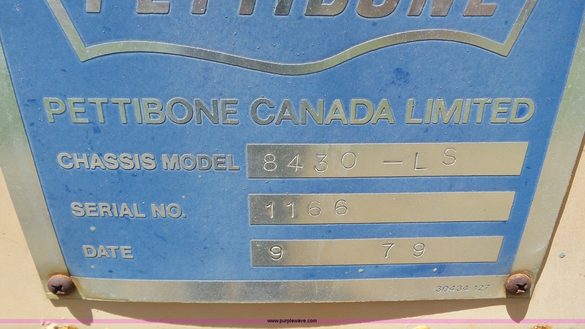 1979 Pettibone 8430 LS truck crane. 2,730 miles on odometer, 240 hours on meter, Detroit Diesel six cylinder diesel engine, Lower interior Suspension seat, Stick crane controls, Eaton Fuller RT613 13 speed manual transmission, Tandem axle, Upper interior Suspension seat, Stick crane controls, Hydraulic telescopic boom 75' boom length, 30 ton max lift capacity, (2) winches, In-cab boom controls, Crane block (3) sheaves, 30 ton capacity, Crane ball and hook, (4) stabilizers, Spring suspension, Air brakes, 274" wheelbase, 11.00-26 tires, Glass broken, Serial 1166. Lincoln County. Lincoln, KS 67455