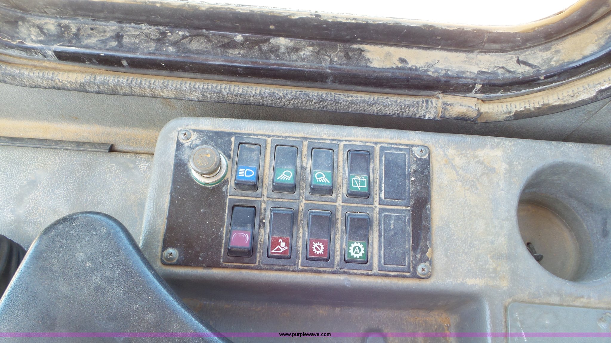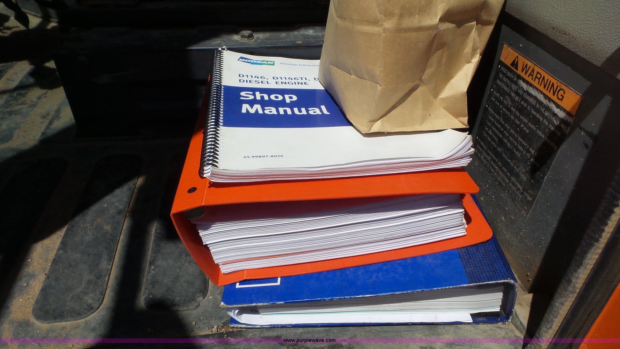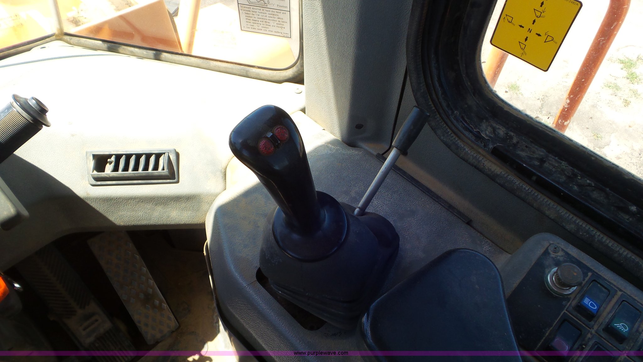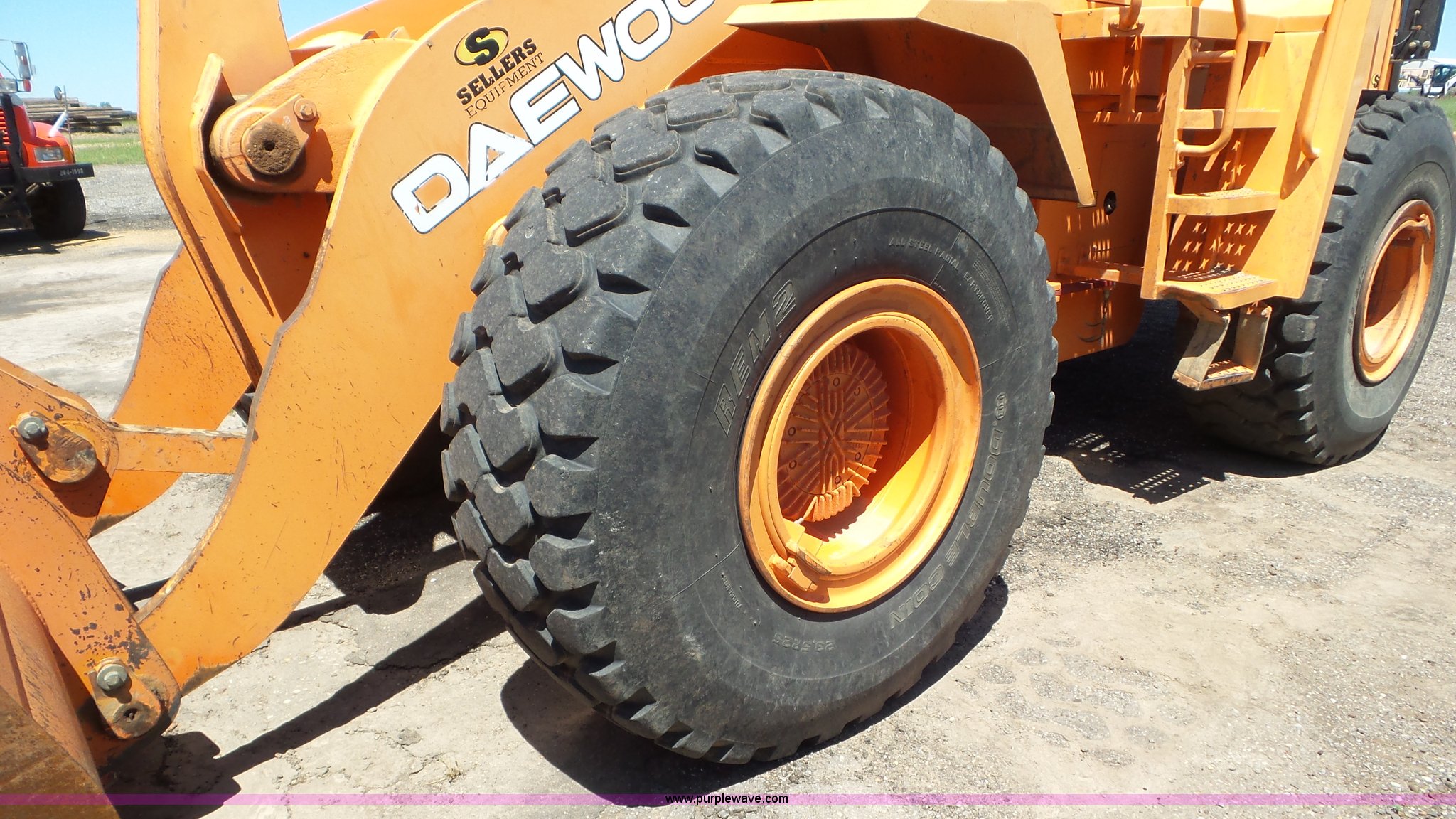 Purple Wave is selling a used Wheel Loader in Kansas. This item is a Daewoo MG300V wheel loader with the following: 8,086 hours on meter, Six cylinder turbo diesel engine, Powershift transmission, 3F-3R gears, Differential lock, Enclosed cab, AC and heat, Tilt steering wheel, AM/FM, Air suspension seat, Joystick bucket controls, Wipers, Backup alarm, Front and rear work lights, Dymax 114"W bucket, Bolt-on cutting edge, (8) teeth, 23.5R25 tires, Manuals, Serial 2030