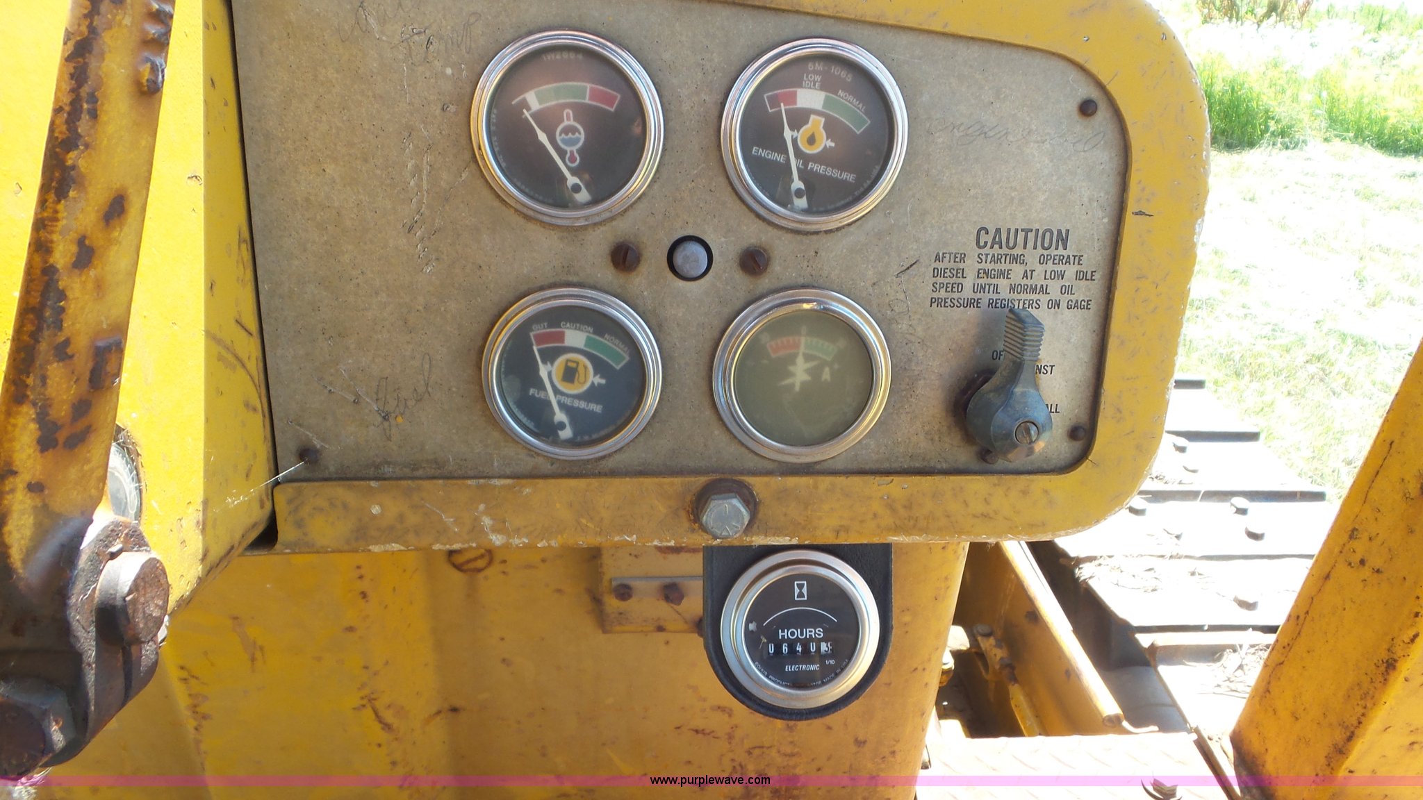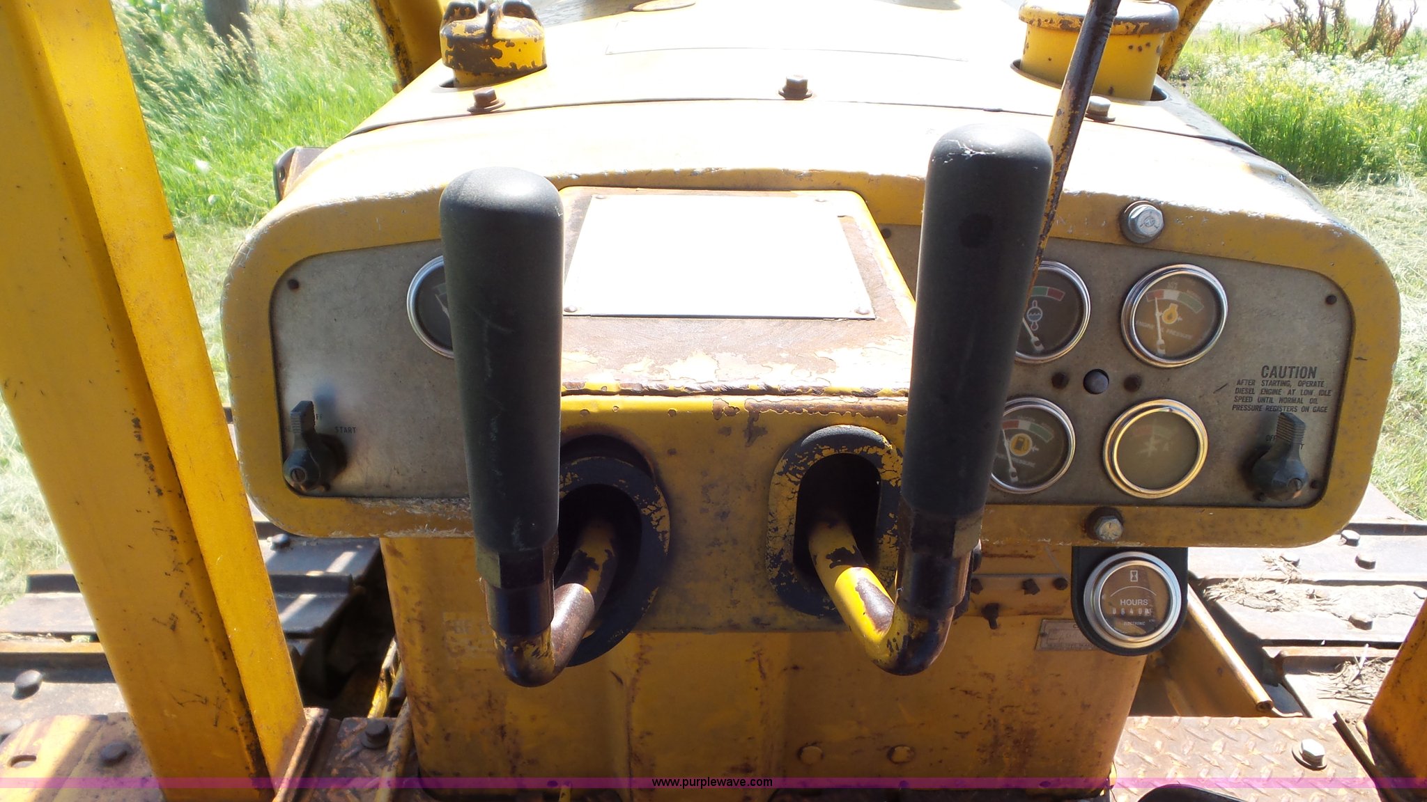 Purple Wave is selling a used Crawler Dozer in Kansas. This item is a 1966 Caterpillar D6C dozer with the following: 640 hours on meter, Caterpillar 3306 six cylinder turbo diesel engine, Powershift transmission, 3F-3R gears, Canopy, Suspension seat, Clutch brake steering, Sweeps, 124"W straight single tilt dozer blade, Hyster D6PCHY6D83 winch, Serial 082L1675K, Six bottom roller, Track guards, 20"W single grouser track pads, 31,227 lbs. base operating weight, Transmission and drive clutch issues, Serial 76A3669