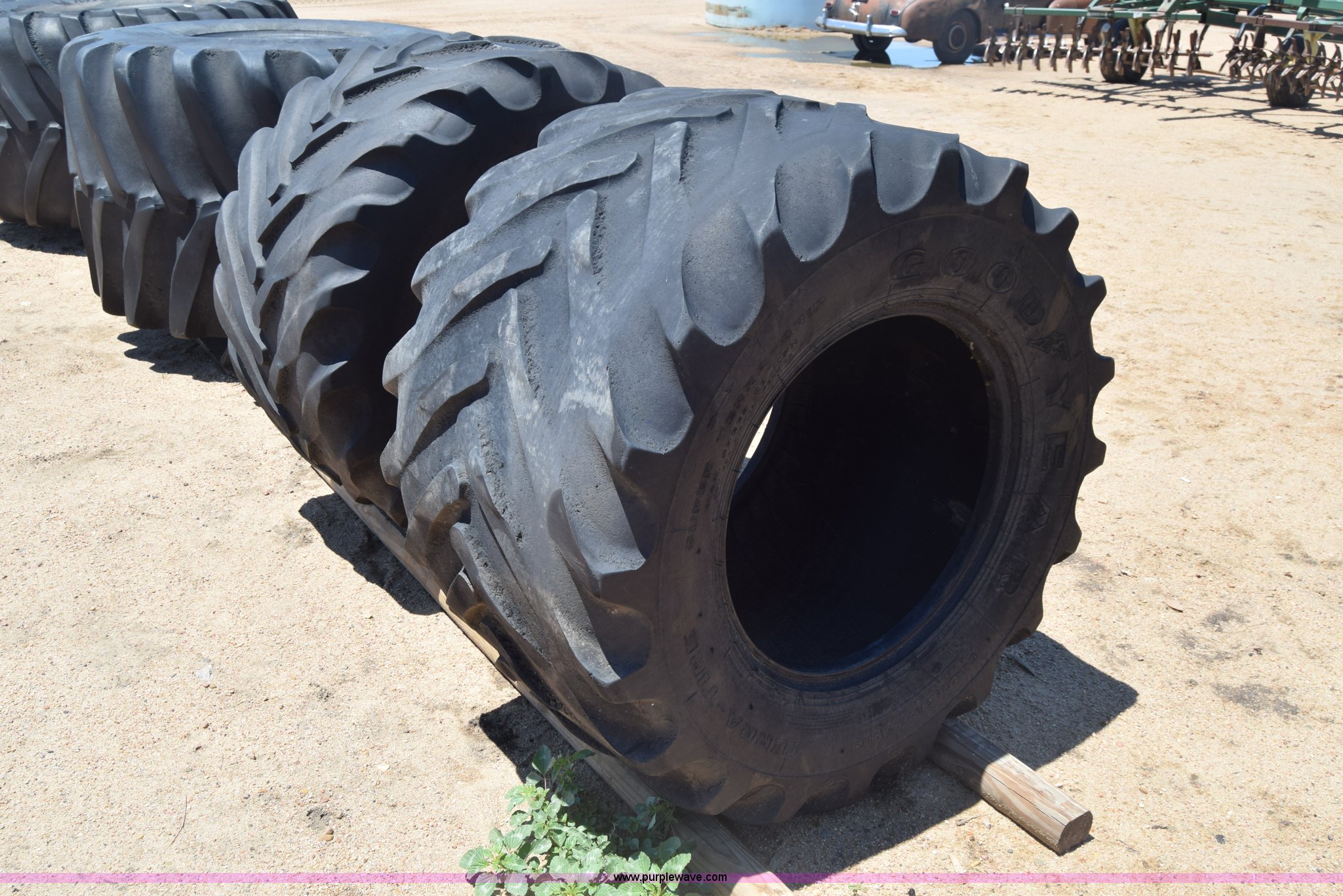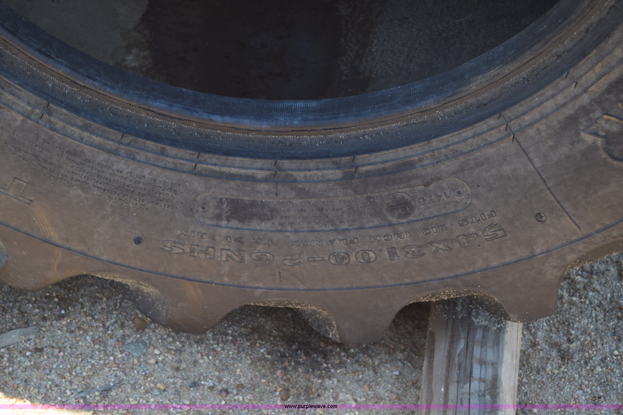 Purple Wave is selling a used Industrial Tires or Tracks in Kansas. This item is a (2) Goodyear 54x31.00-26 tires with the following: (2) Goodyear 54x31.00-26 tires. Kinsley, KS 67547