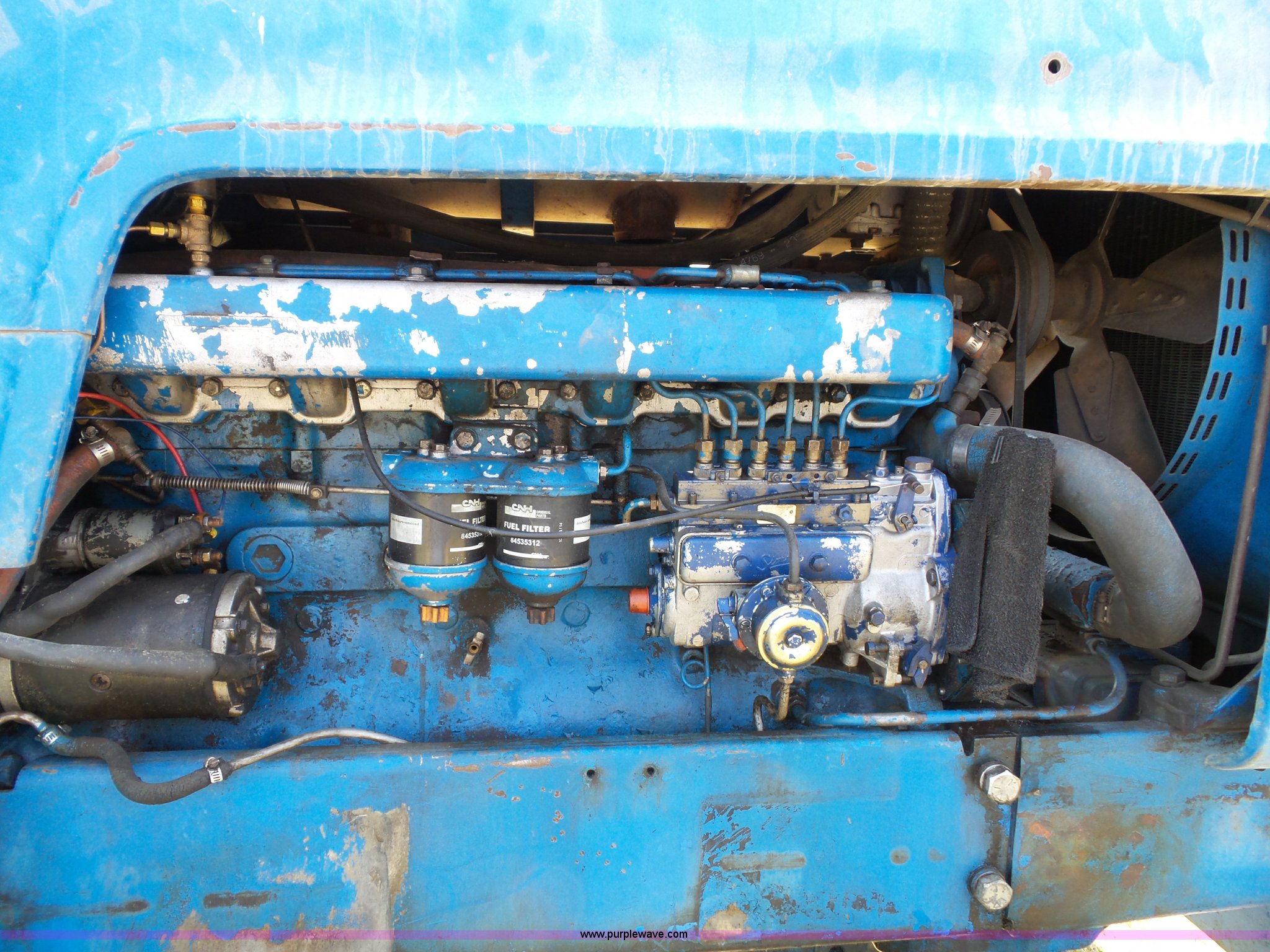 Purple Wave is selling a used Tractor in Kansas. This item is a Ford 8000 tractor with the following: Six cylinder diesel engine, 8F-2R gears, AC and heat, Front and rear work lights, Three point, Draw bar, 540 PTO, (2) rear hydraulic remote sets, 10.00-16 front tires, 18.4-38 rear tires, Seat damaged, Wiring under dash removed, Unknown running condition