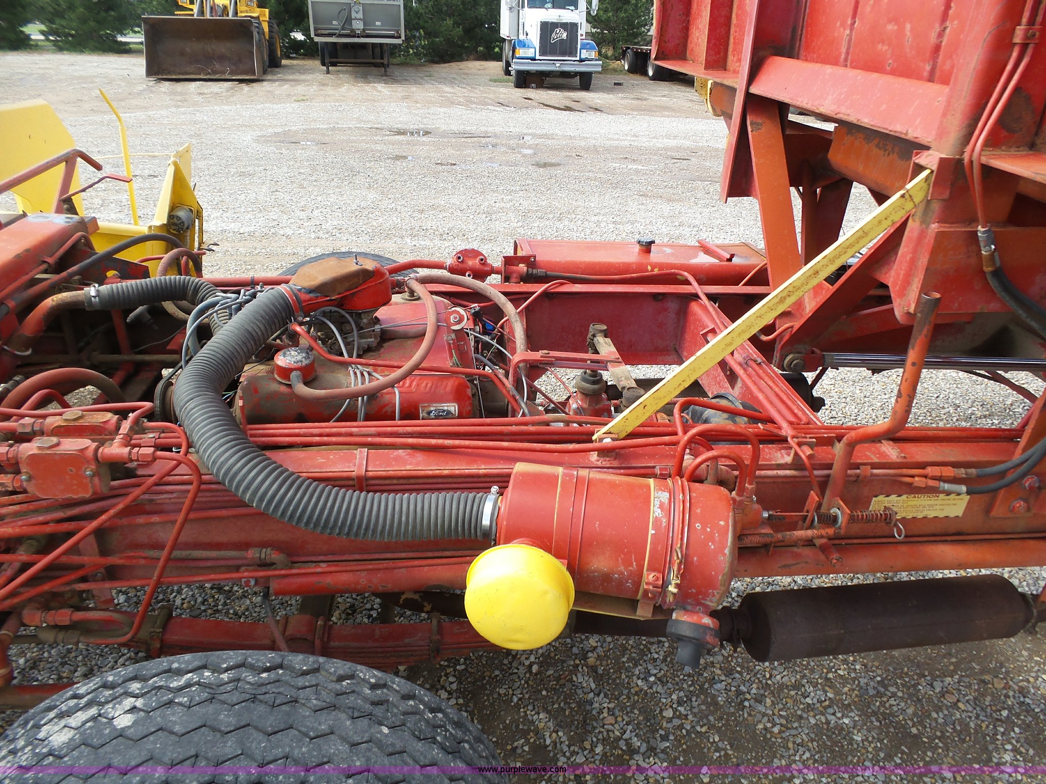 Purple Wave is selling a used Hay Handling in Kansas. This item is a New Holland 1049 Stackcruiser bale wagon with the following: Ford V8 gas engine, Four speed manual transmission, AM, No speakers, Front work lights, 14'L x 9'W bale platform, 36x16-17.5 front tires, 40x19-19.5 rear tires, Interior/exterior cosmetic damage, Weld repairs, Engine needs tune-up, Timbers on bed not included, Serial 2311