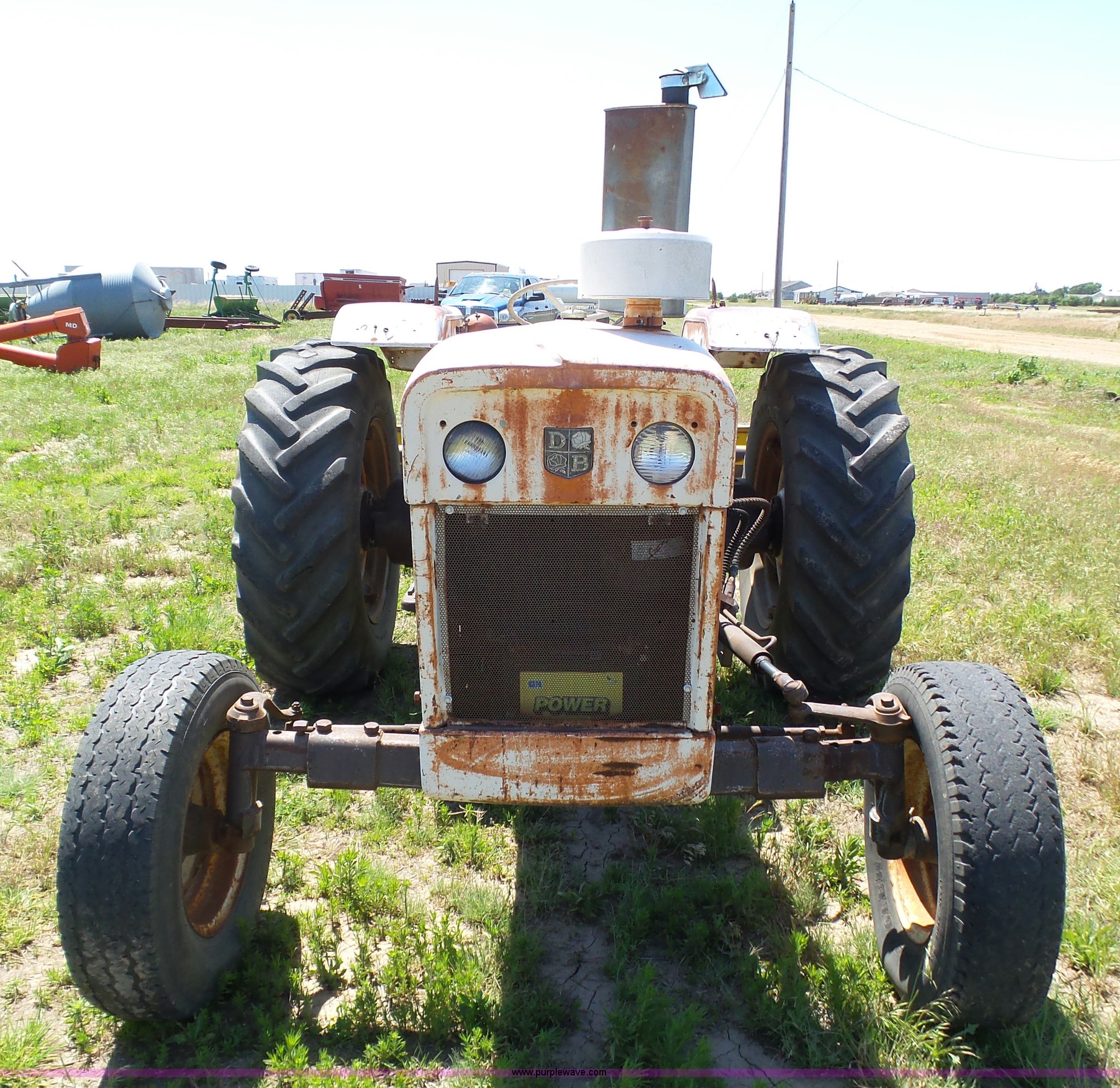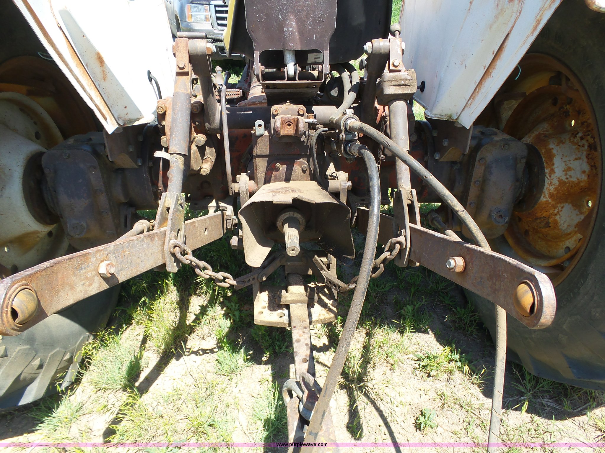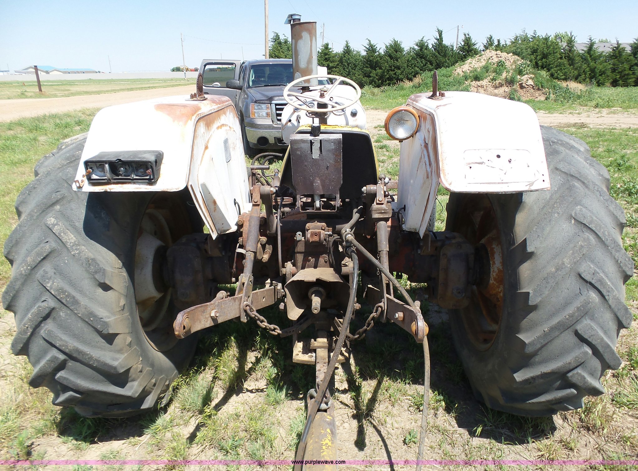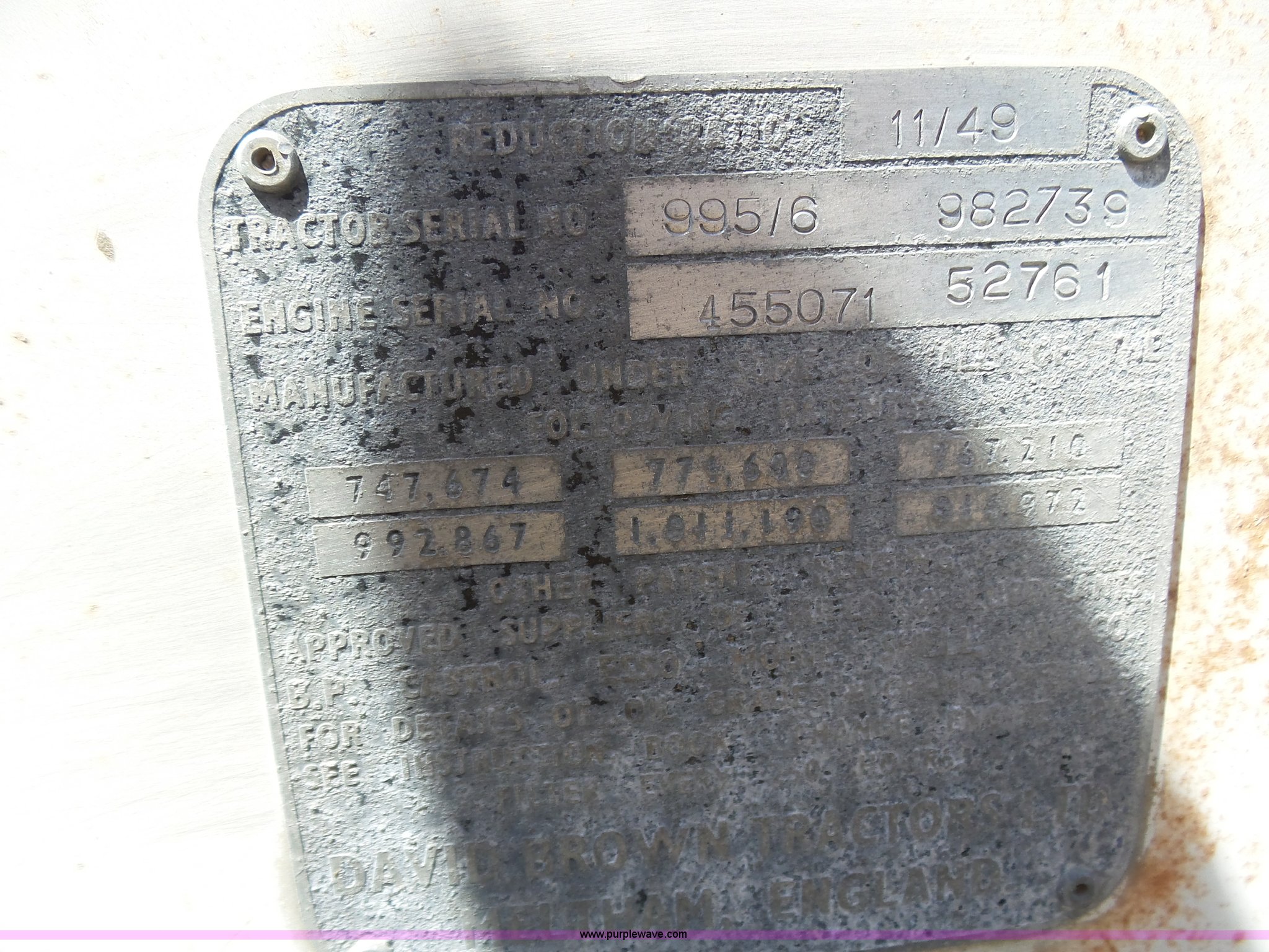 Purple Wave is selling a used Tractor in Kansas. This item is a David Brown 995 tractor with the following: 4,460 hours on meter, Hours may vary, still in use, Four cylinder diesel engine, Serial 45507152761, Manual transmission, Suspension seat, Three point, 1000 PTO, Rear hydraulic remote sets, 82" wheelbase, ST235/85R16 front tires, 16.9-1430 rear tires, Truck blade not included, Serial 99516982739