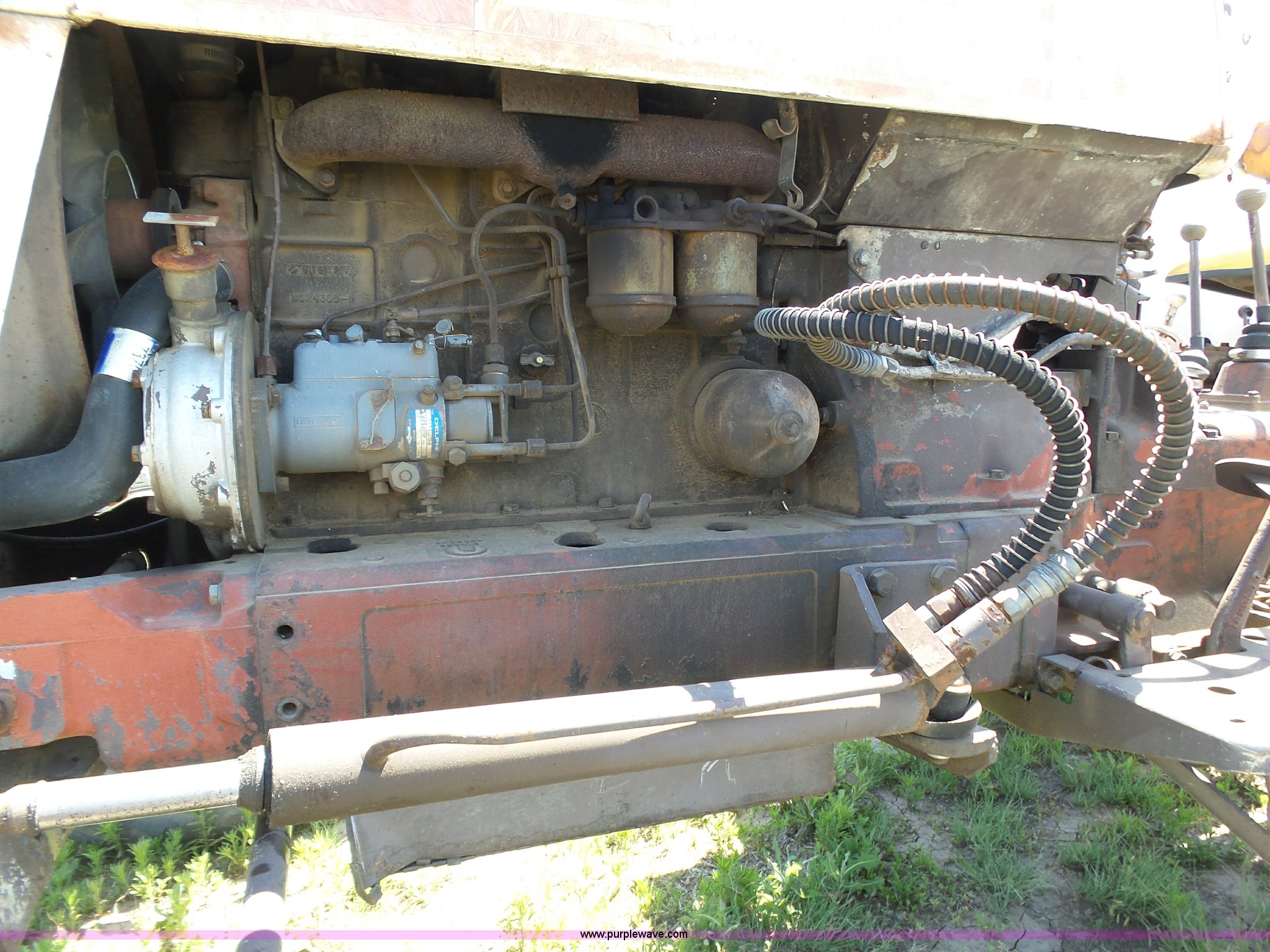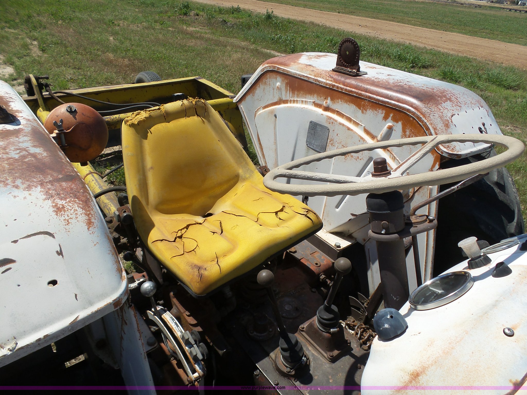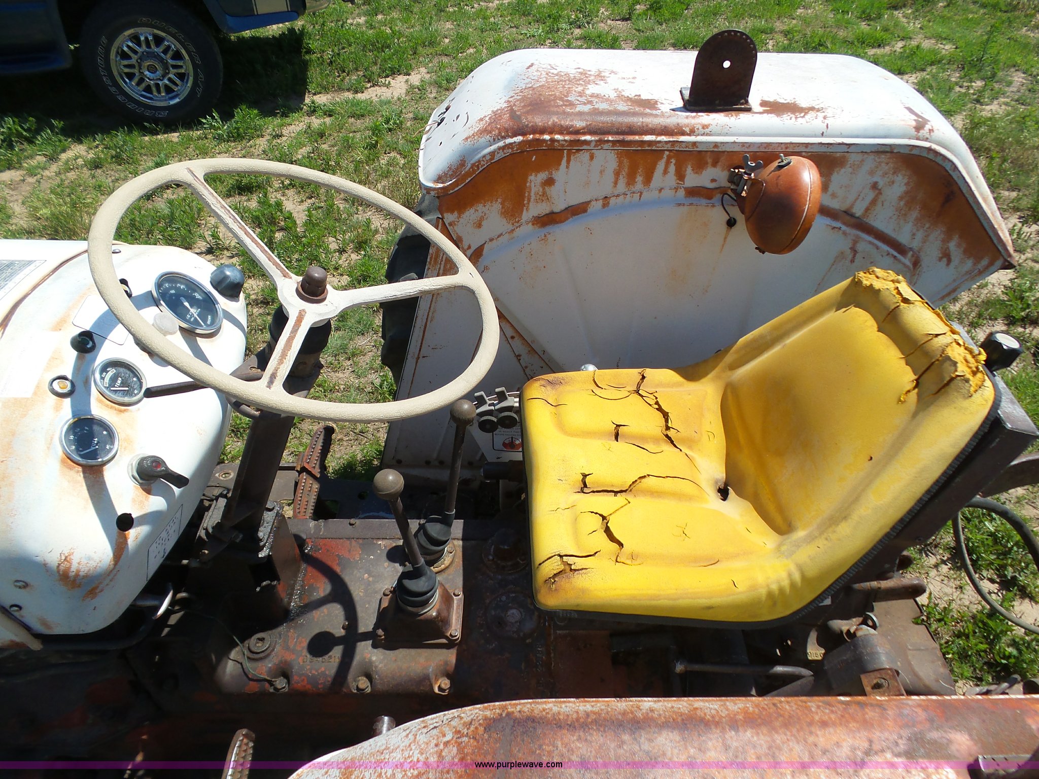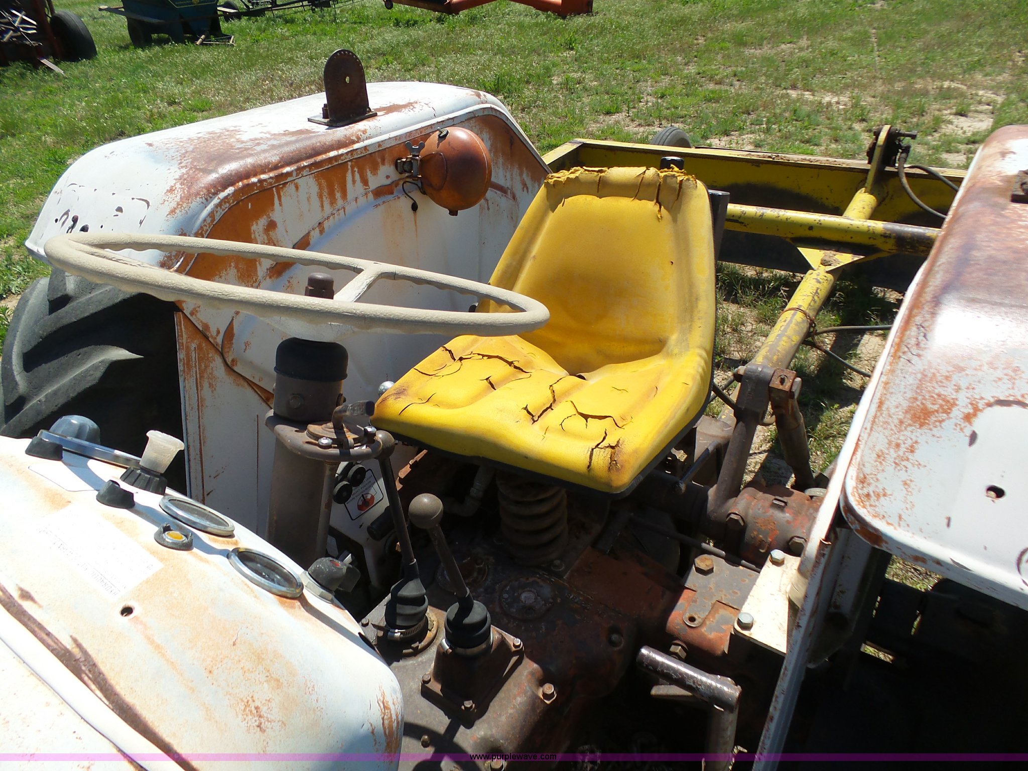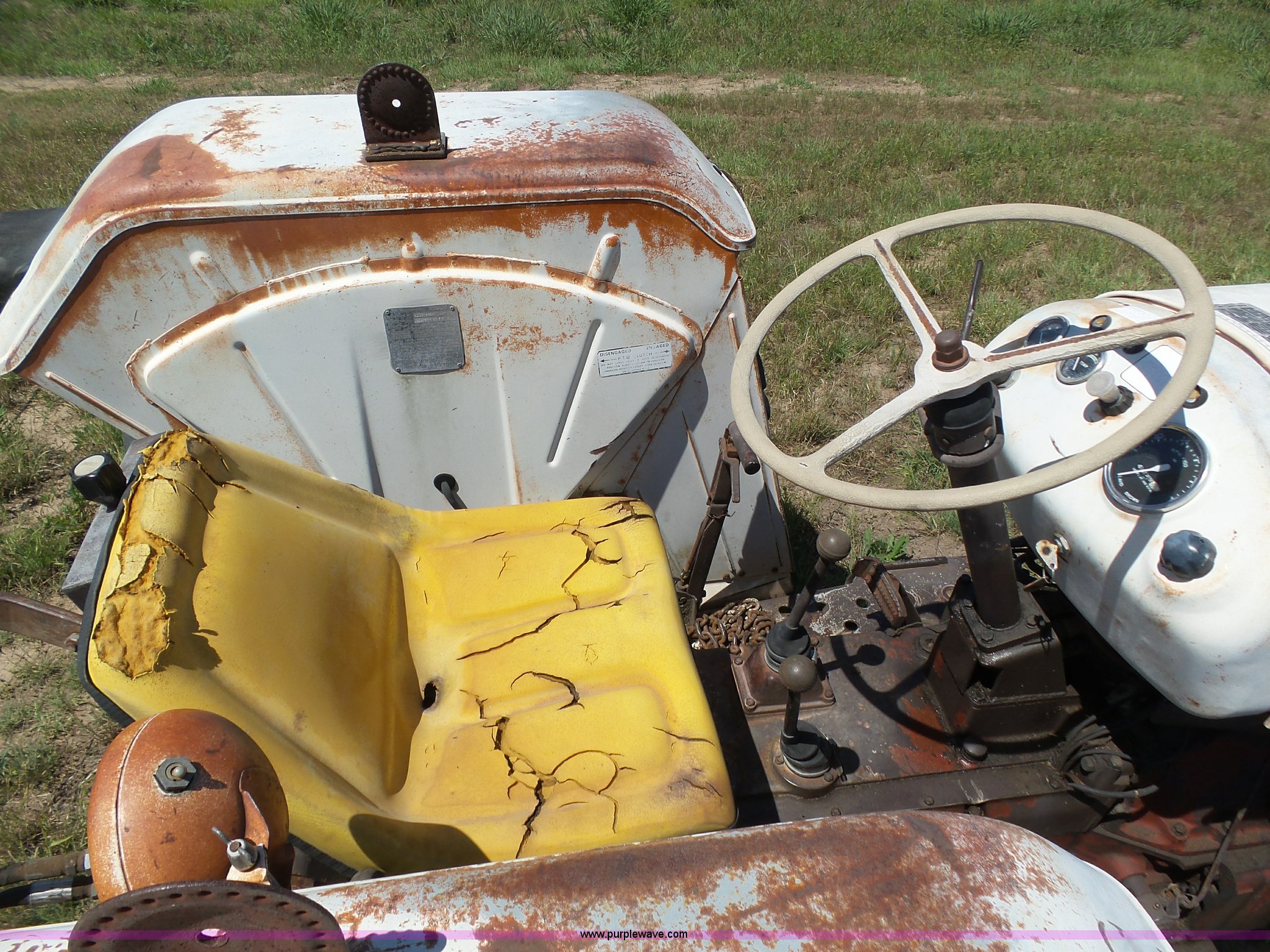 Purple Wave is selling a used Tractor in Kansas. This item is a David Brown 995 tractor with the following: 4,460 hours on meter, Hours may vary, still in use, Four cylinder diesel engine, Serial 45507152761, Manual transmission, Suspension seat, Three point, 1000 PTO, Rear hydraulic remote sets, 82" wheelbase, ST235/85R16 front tires, 16.9-1430 rear tires, Truck blade not included, Serial 99516982739