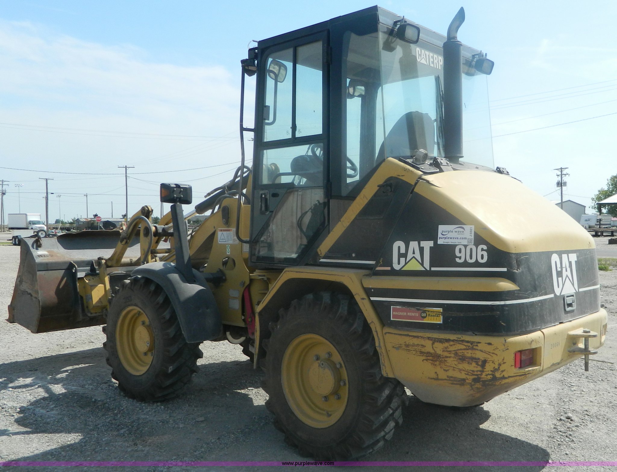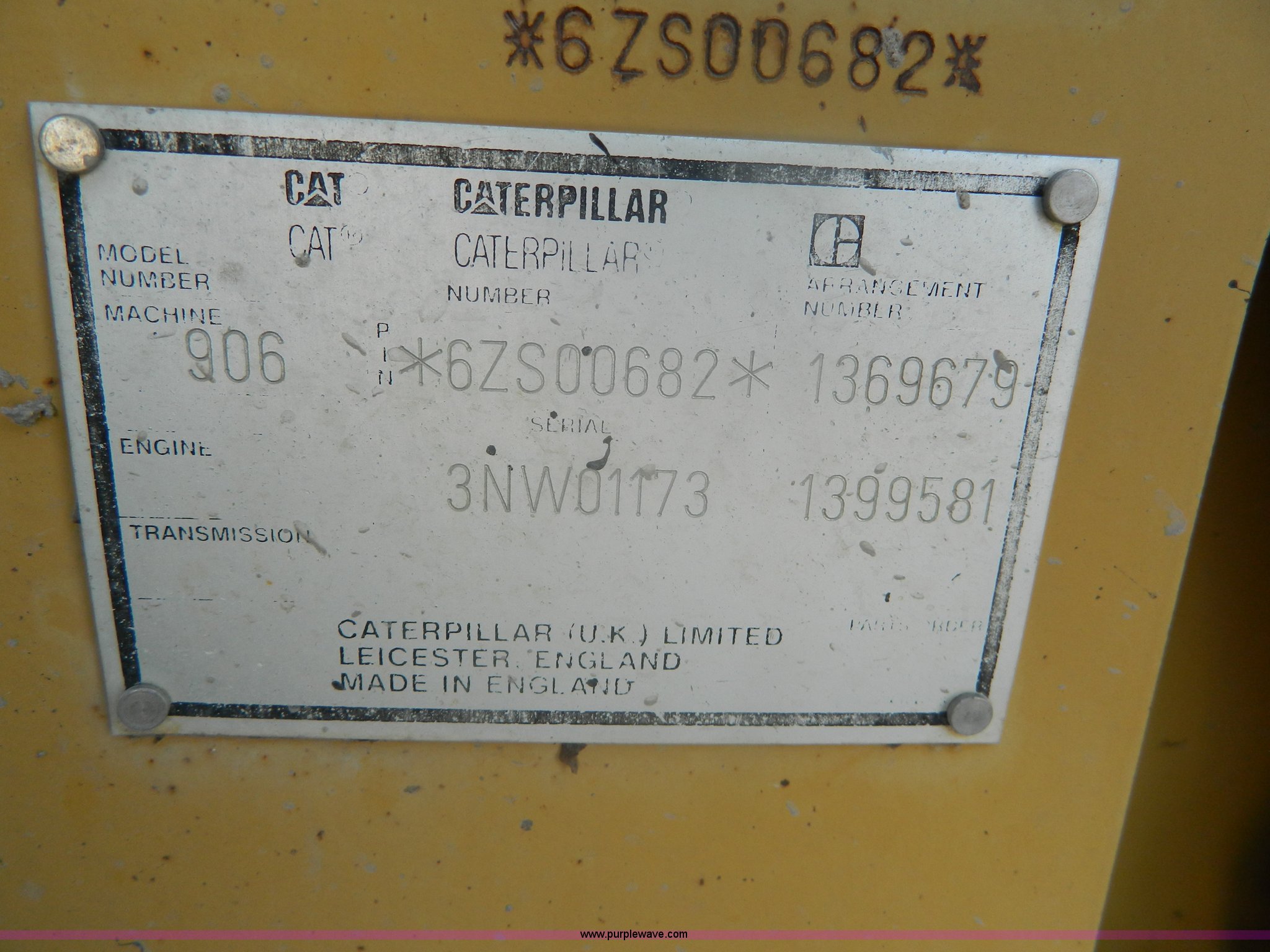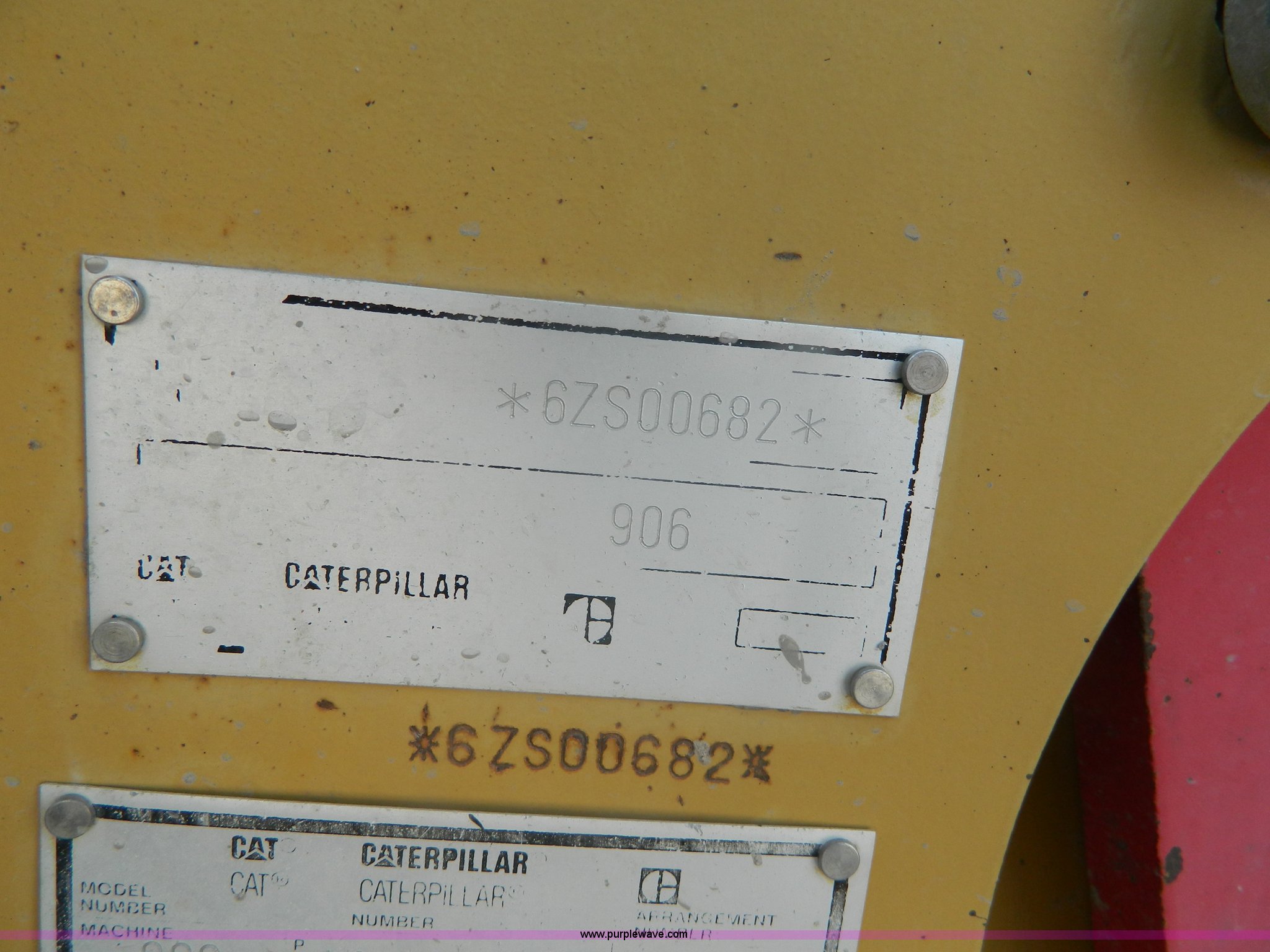 Purple Wave is selling a used Wheel Loader in Kansas. This item is a 1999 Caterpillar 906 wheel loader with the following: 9,715 hours on meter, Perkins 2071/2600 2.9L four cylinder diesel engine, Serial 163-02483NW01173, Two speed hydrostatic transmission, Enclosed cab, Heat, Suspension seat, Joystick bucket controls, Front work lights, Backup alarm, 72"W general purpose bucket, Bolt-on cutting edge, Self-leveling, Hydraulic quick coupler, Front auxiliary hydraulics, Skid steer attachment plate, Beacon lights, Pin hitch, 12.5-20 tires, 10,912 lbs. base operating weight, Cab glass cracked, Tires replaced June 2016, Service records available back to 1999, Serial 6ZS00682