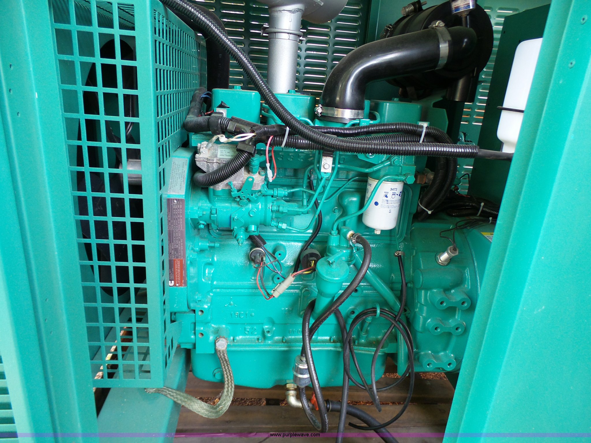 Purple Wave is selling a used Generator Set in Illinois. This item is a Onan DGBB-496054L generator with the following: 678 hours on meter, Cummins 4B3.9-G2 3.9L four cylinder turbo diesel engine, Serial 46116851, Control panel, Electric start, 43.8 kVA, 35 kW, Three phase, Load-bank tested, 12 wire re-connectable to other phases, Serial F010248157