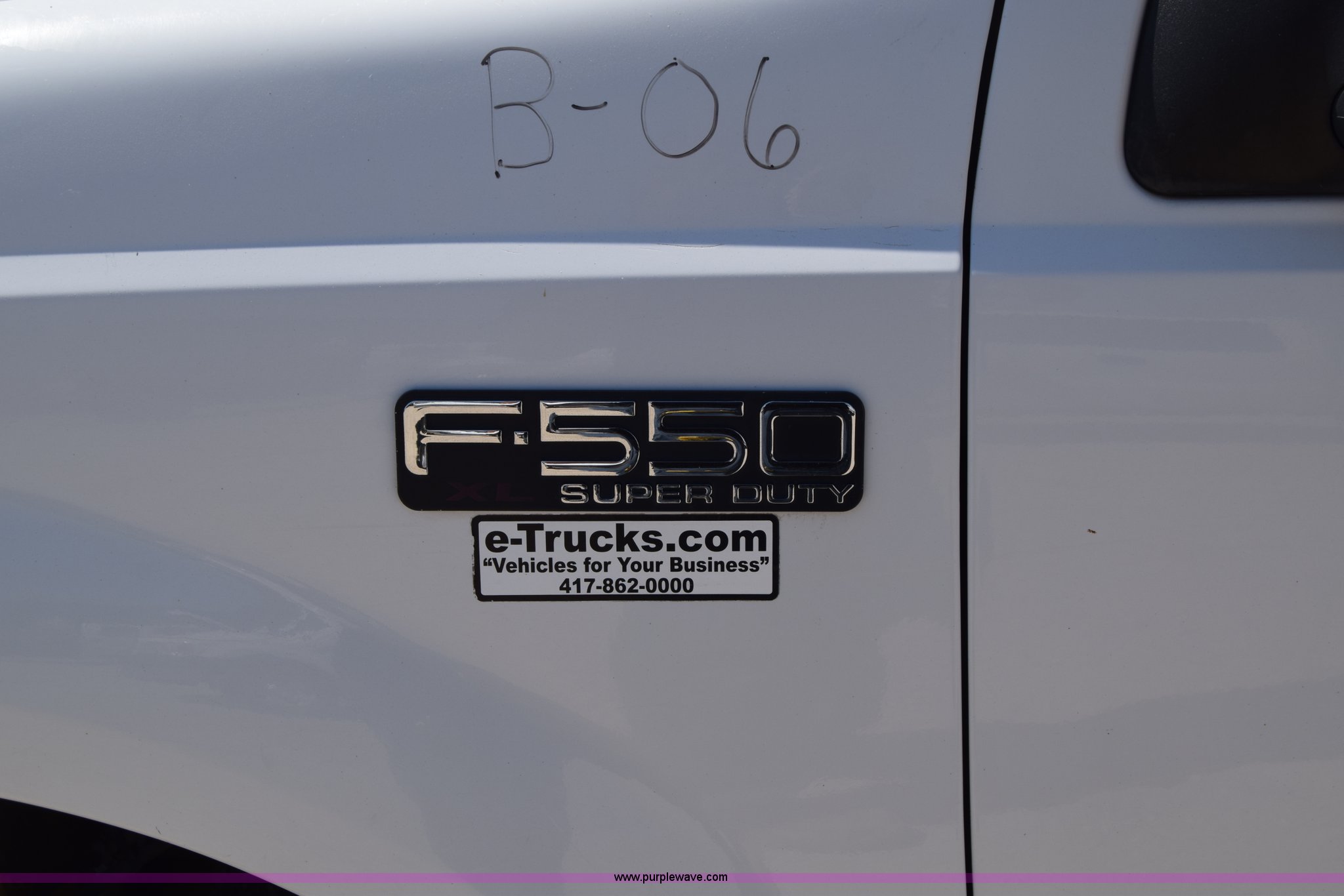 Purple Wave is selling a used Bucket Truck in Kansas. This item is a 2004 Ford F550 bucket truck with the following: 184,961 miles on odometer, 6.0L V8 OHV 32V diesel engine, Automatic transmission, Single axle, AC and heat, Cruise, AM/FM, Pure-Sine inverter, Front tow hooks, PTO, 12'L service bed, Shelving, Altec AT37-G boom, 300 lbs max lift capacity, 37.5' max lift height, Ground and platform controls, Insulated telescopic boom, Serial 0904DE500B, Receiver hitch, Spring suspension, Hydraulic brakes, 225/70R19.5 tires, Weak battery, Unit# B-06