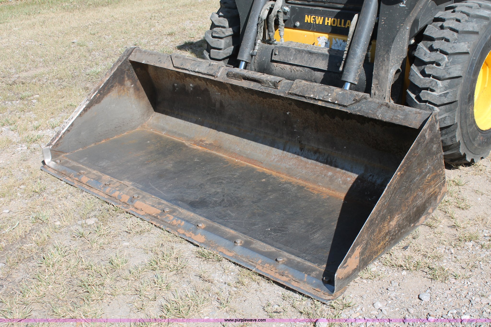Purple Wave is selling a used Skid Steer Loader in Oklahoma. This item is a 2012 New Holland L220 skid steer with the following: 1,220 hours on meter, ISM N844LTA 2.2L four cyinder turbo diesel engine, 64 net HP, Two speed hydrostatic transmission, Open station/canopy, Hand and foot controls, Air suspension seat, Front and rear work lights, Backup alarm, 78"W bucket, Bolt-on cutting edge, High Flow auxiliary hydraulics, 12 x 16.5NHS tires, 6,400 lbs. base operating weight, Serial NCM455109