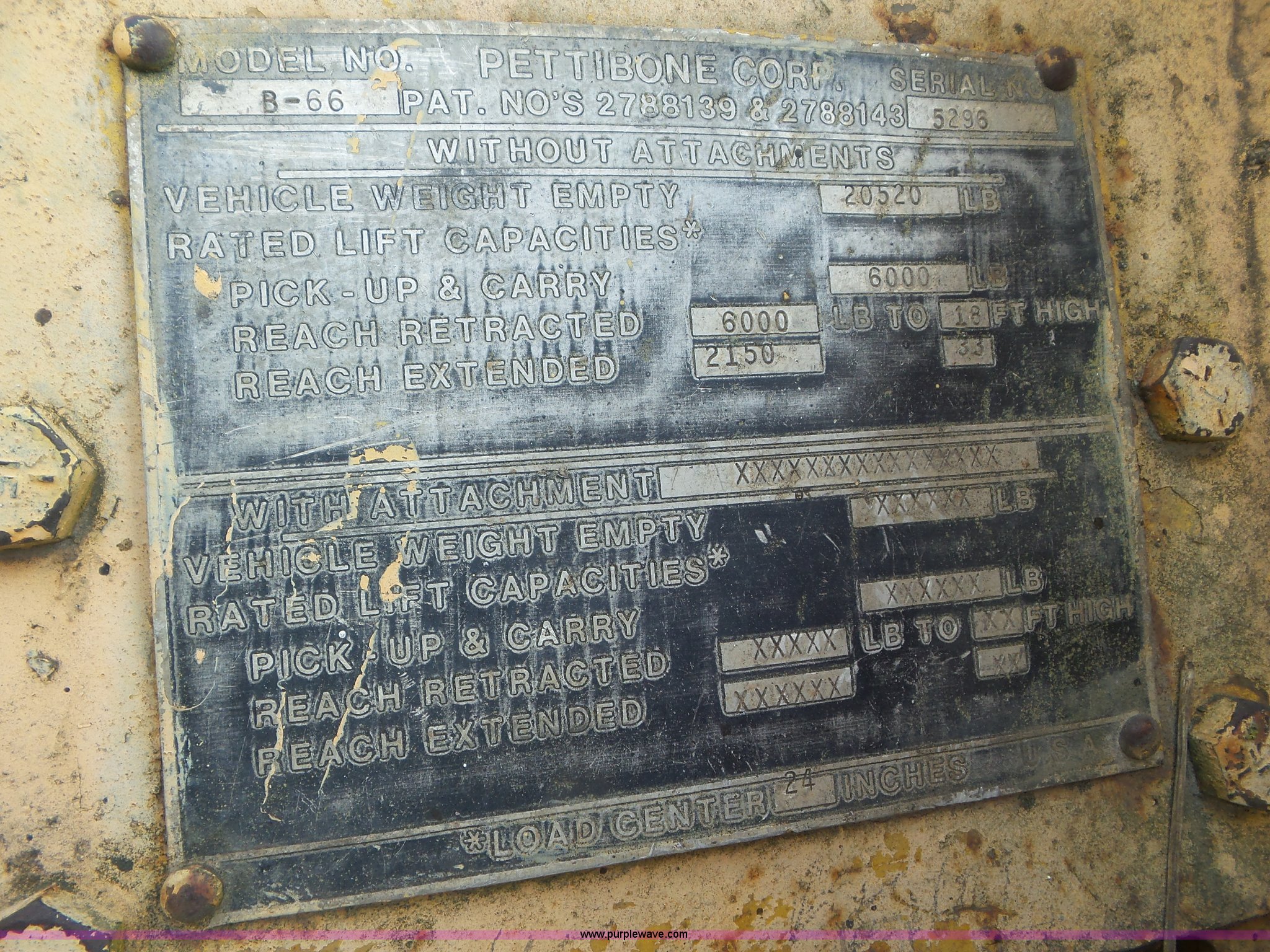 1981 Pettibone B66 telehandler has sold in Maryville, Missouri for $8910. Item L5251 sold on July 14th, 2016.
