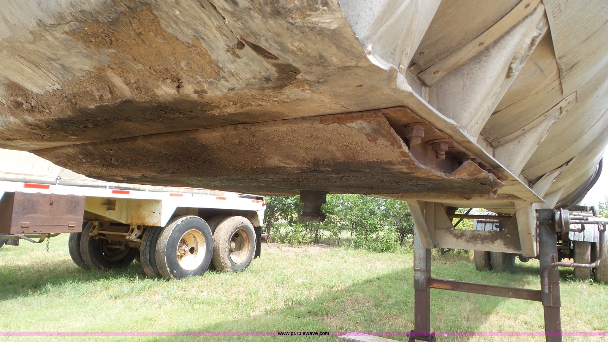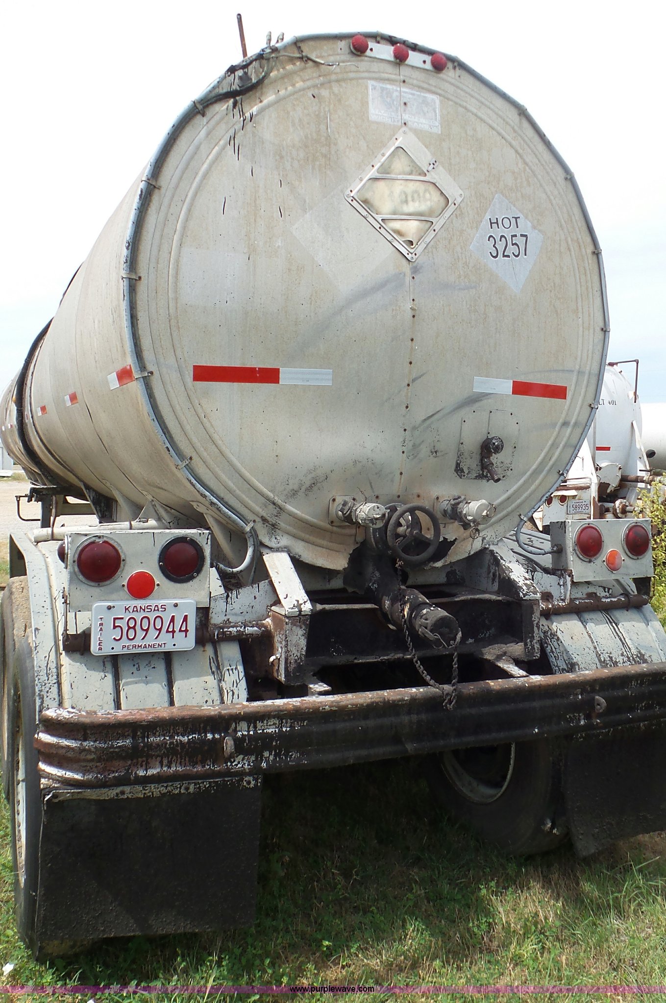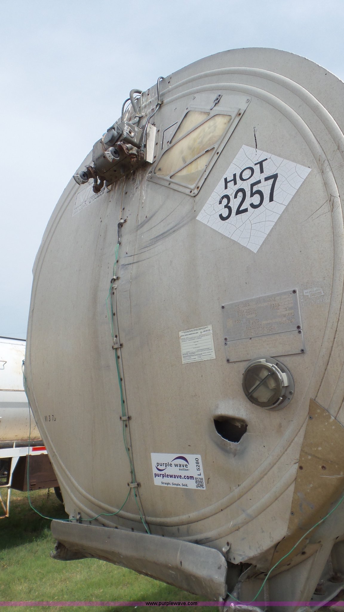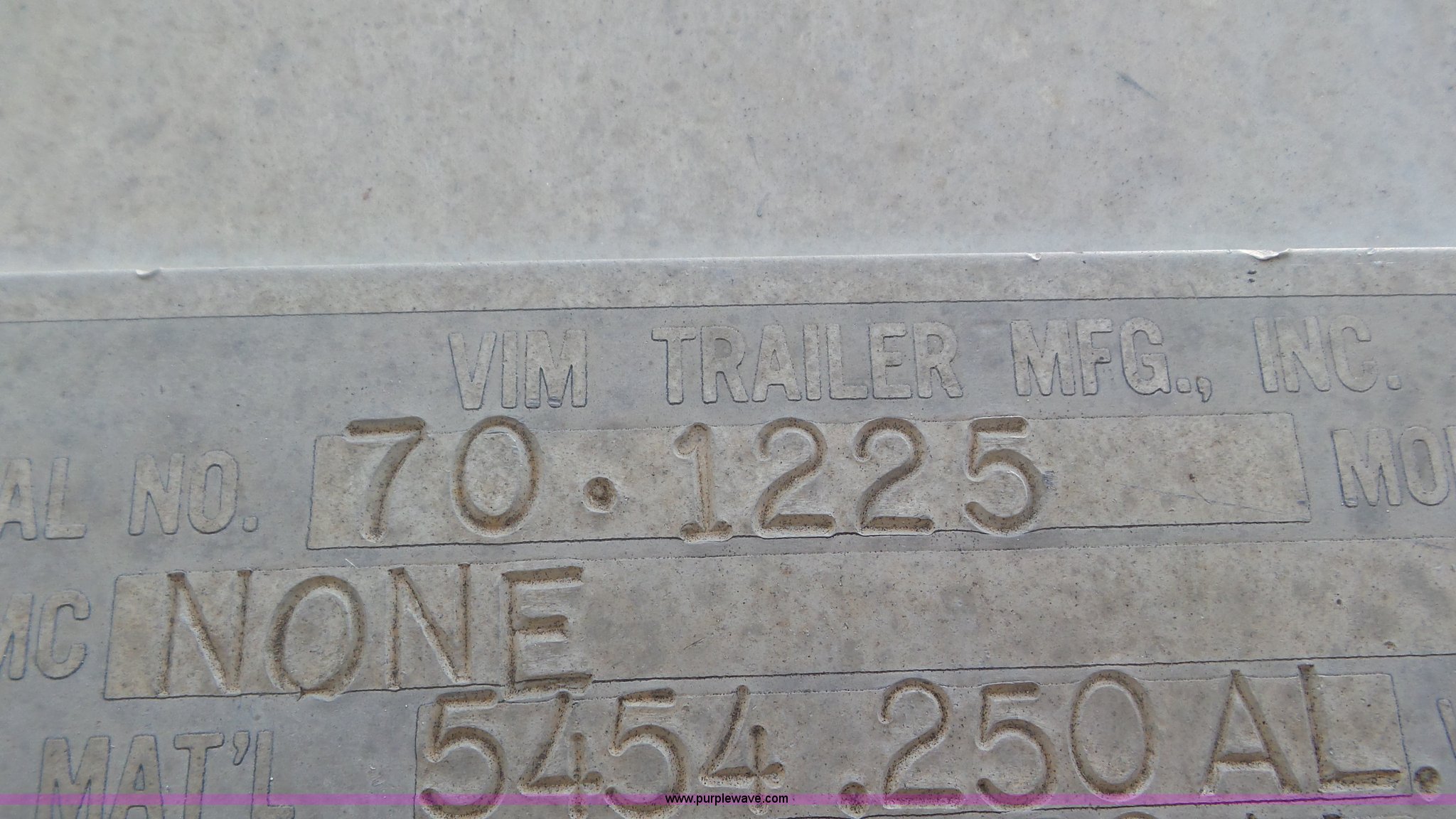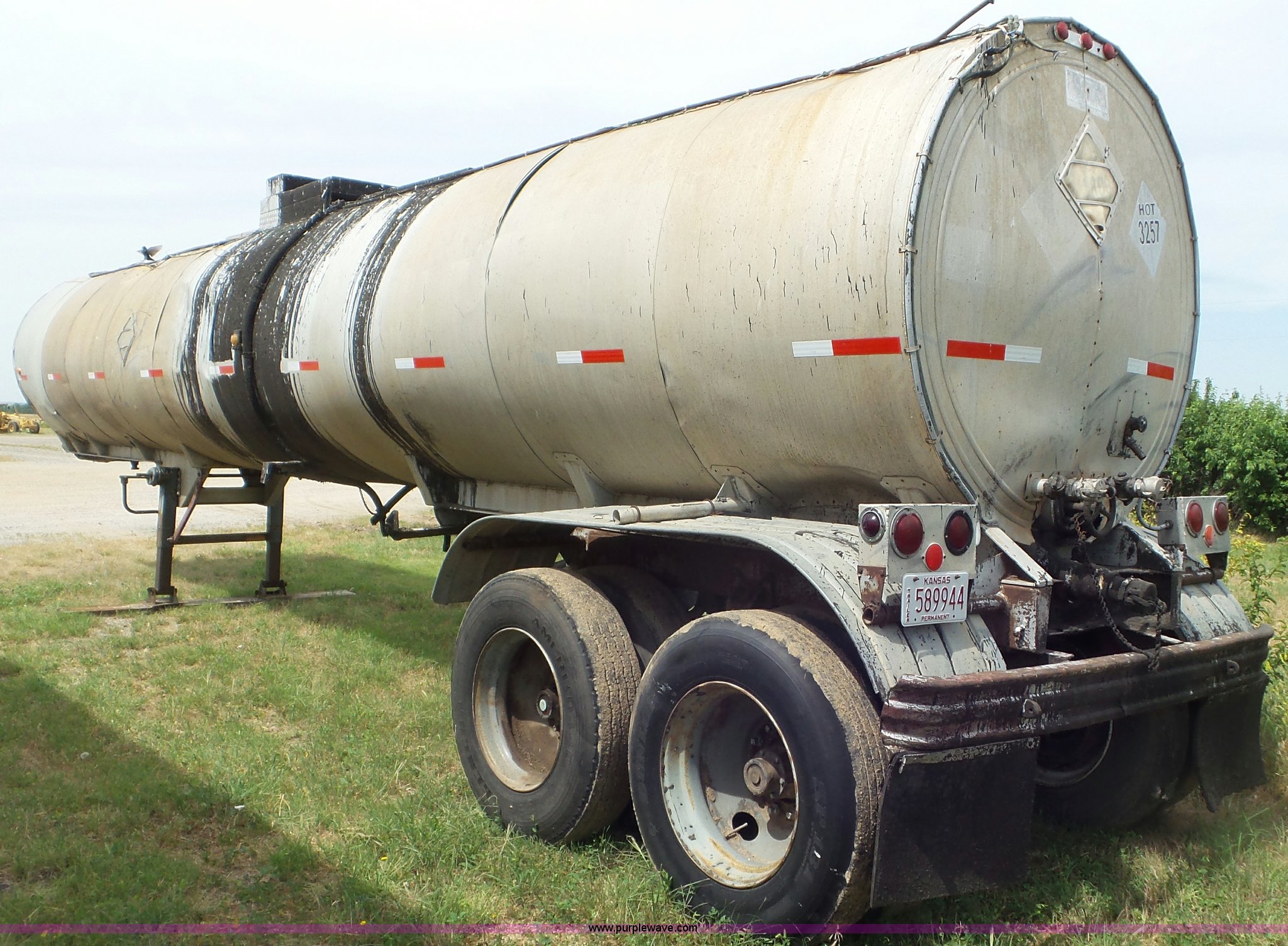 Purple Wave is selling a used Tank Trailer in Kansas. This item is a 1971 VIM asphalt trailer with the following: 38'L x 8'W, Stainless steel tank, 6,500 gallon capacity, Single manway, Metal lining, Dual leg two speed landing gear, Fifth wheel plate, Tandem axle, Spring suspension, Air brakes, Steel wheels, 11R24.5 tires