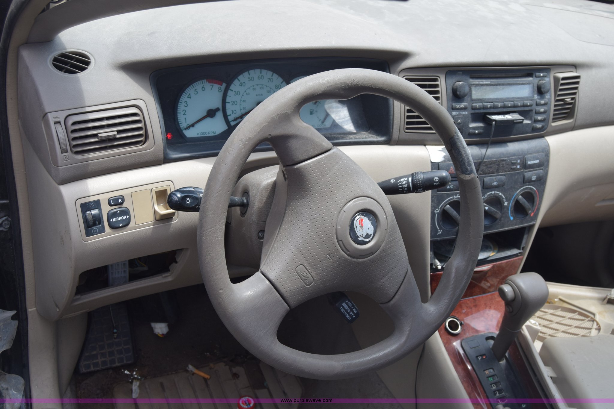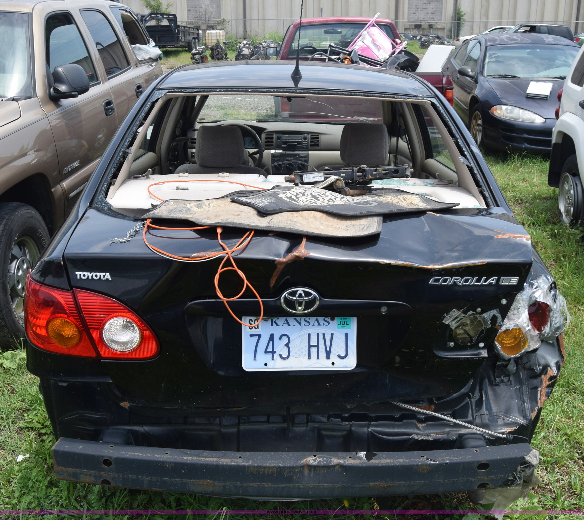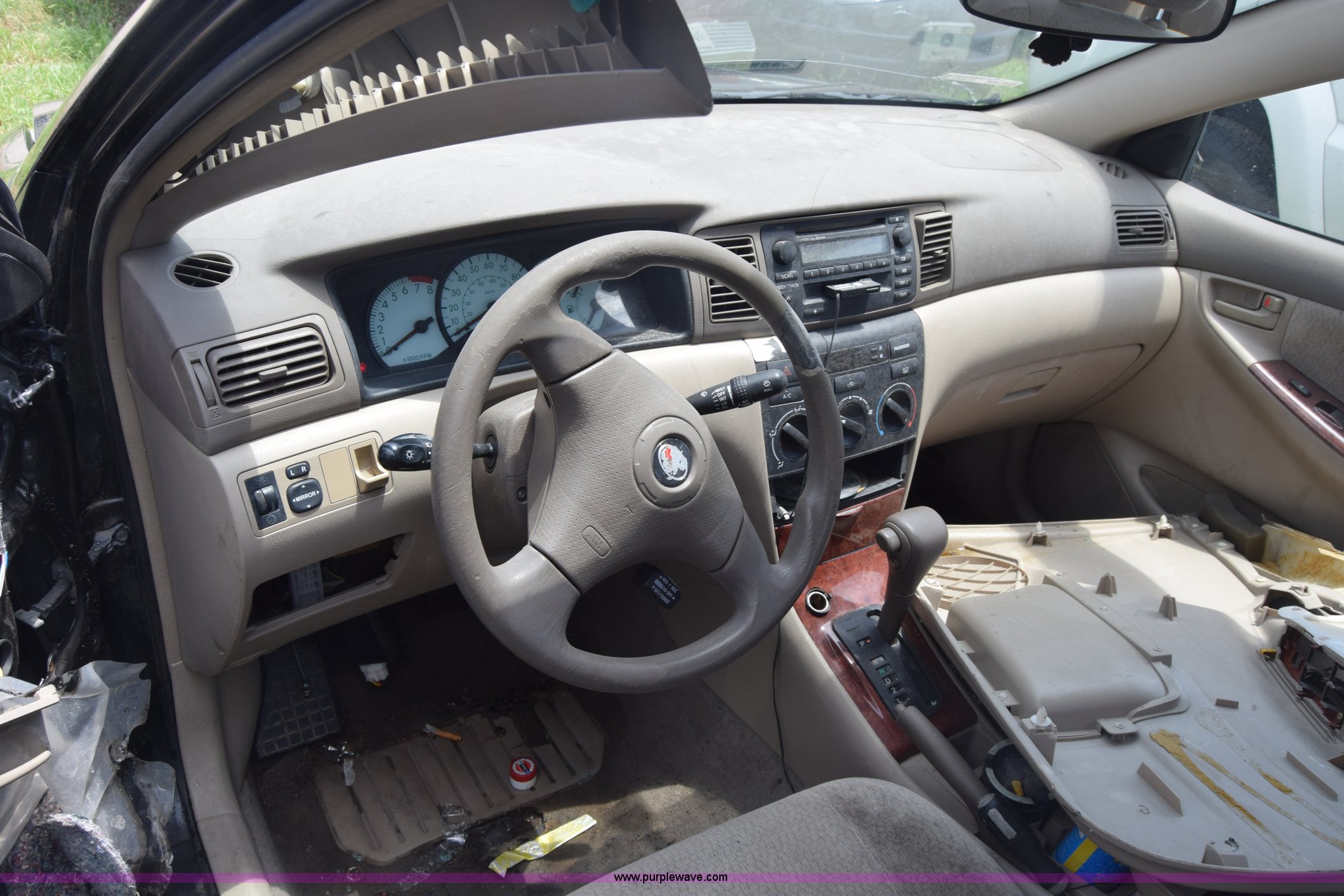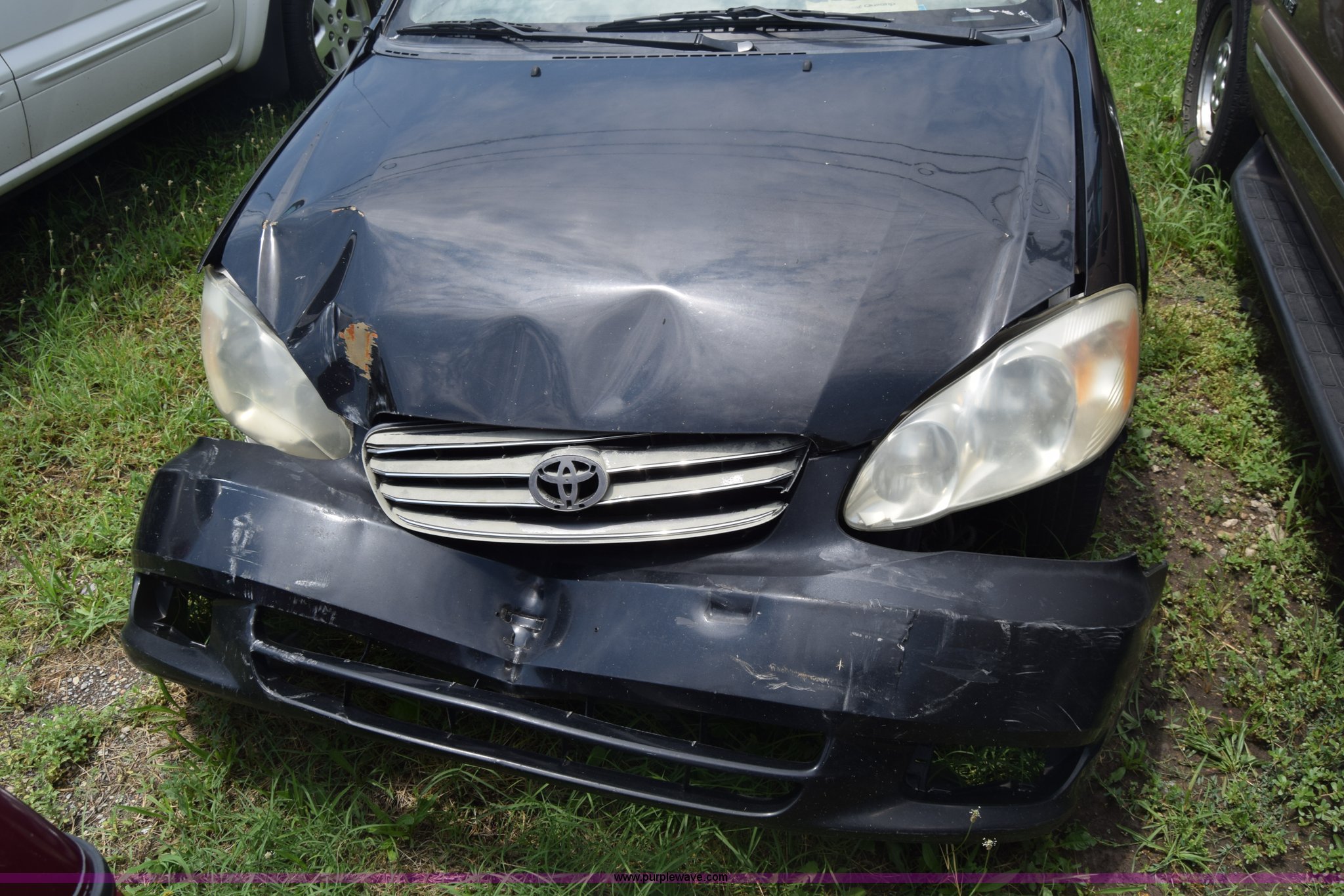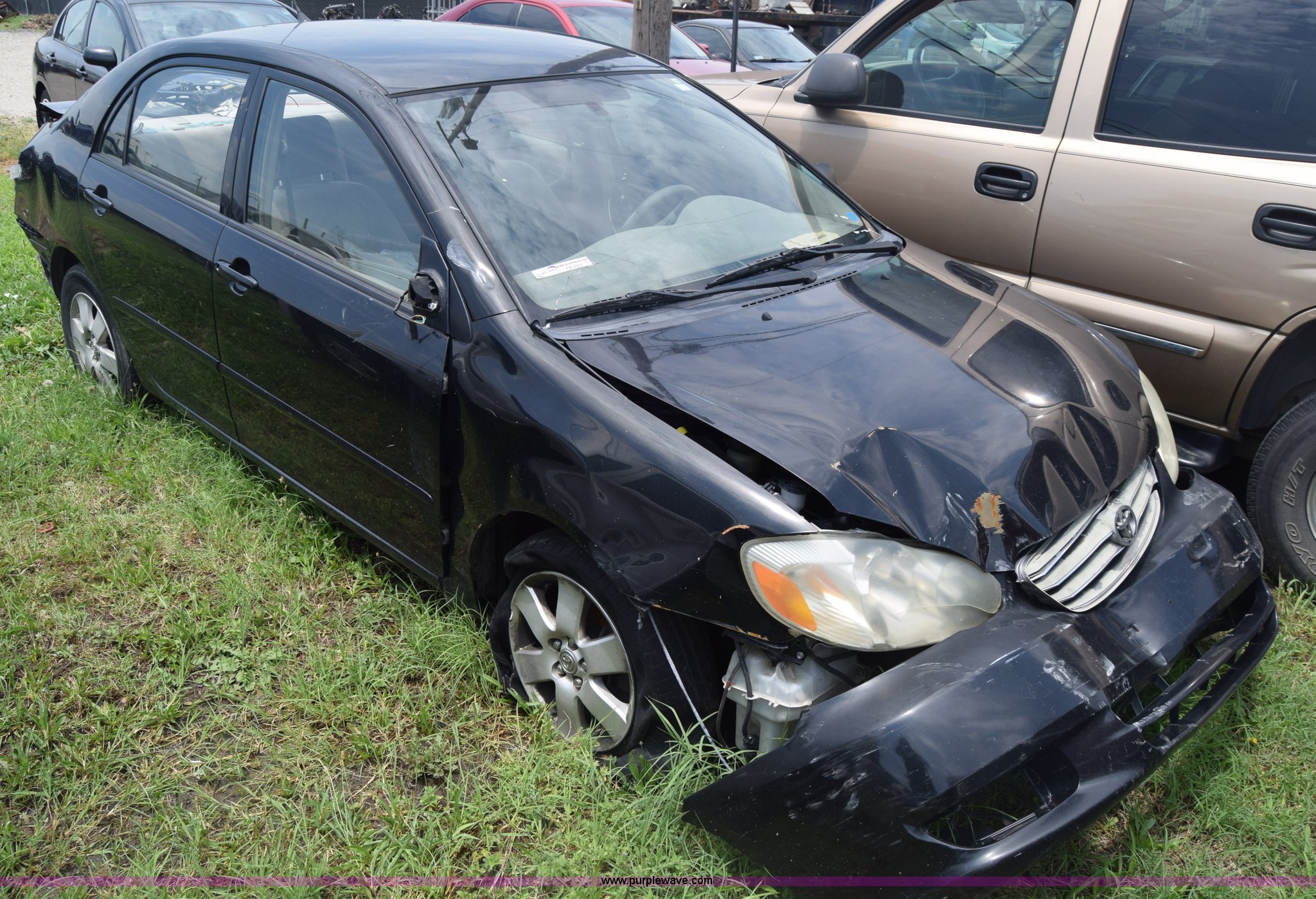 Purple Wave is selling a used Passenger Vehicle in Kansas. This item is a 2003 Toyota Corolla with the following: Unknown miles on odometer, 1.8L L4 DOHC 16V gas engine, Automatic transmission, AC and heat, AM/FM/CD/cassette, Power windows, locks, and mirrors, Cloth interior, 195/65R15 tires, Front end damage, Body damage, Hood will not open, Case# 16C25666
