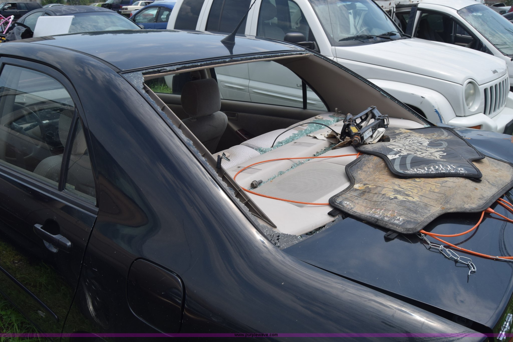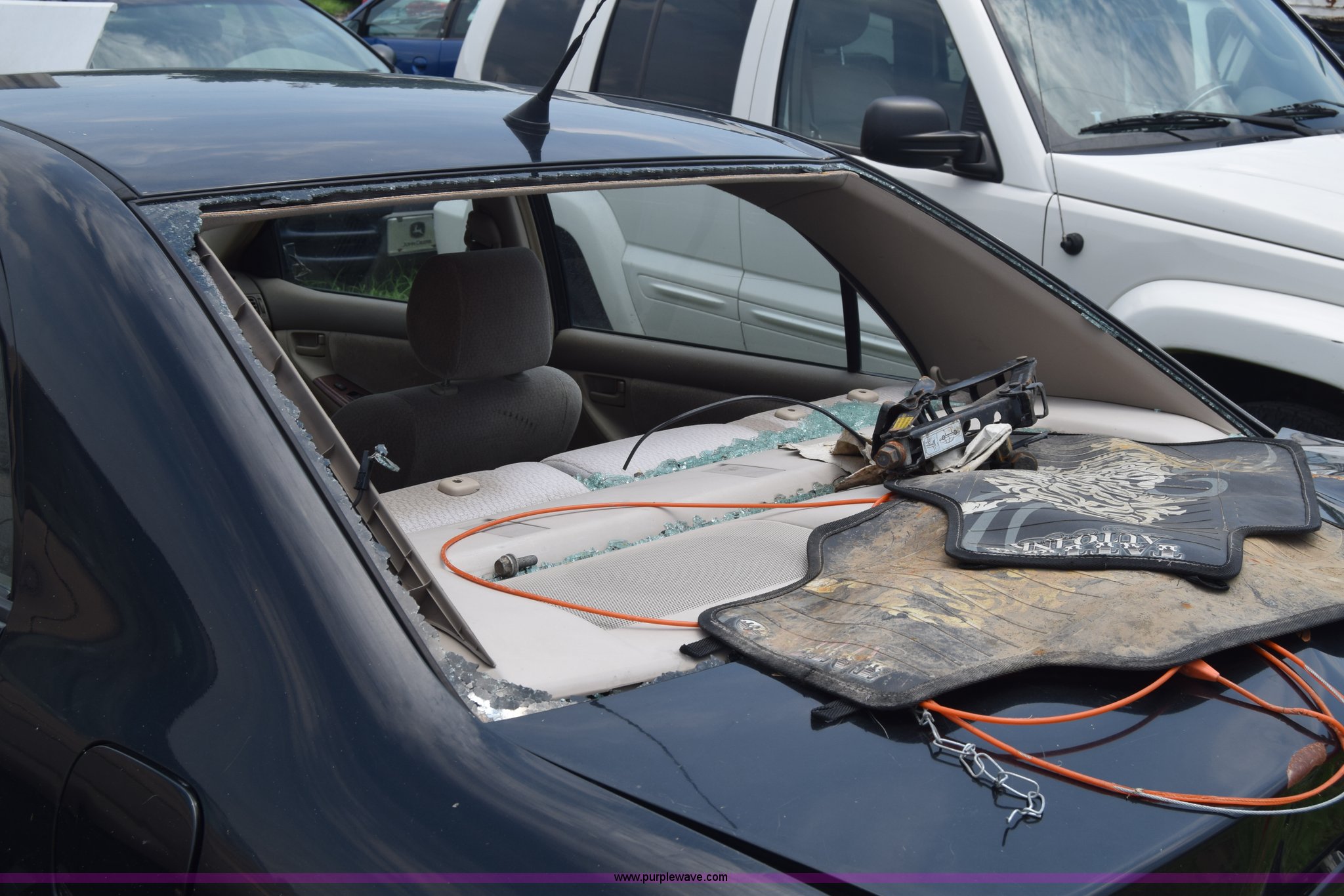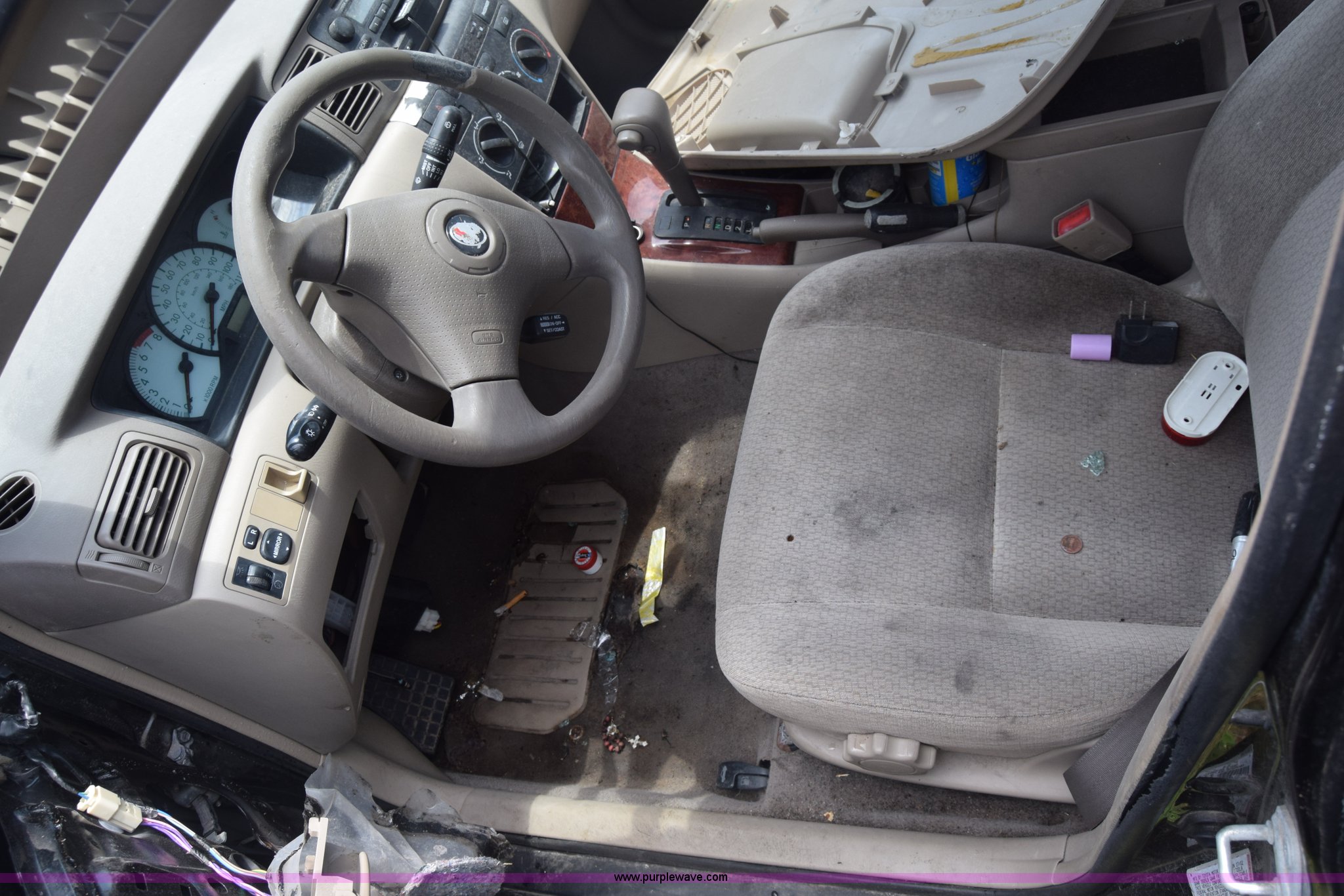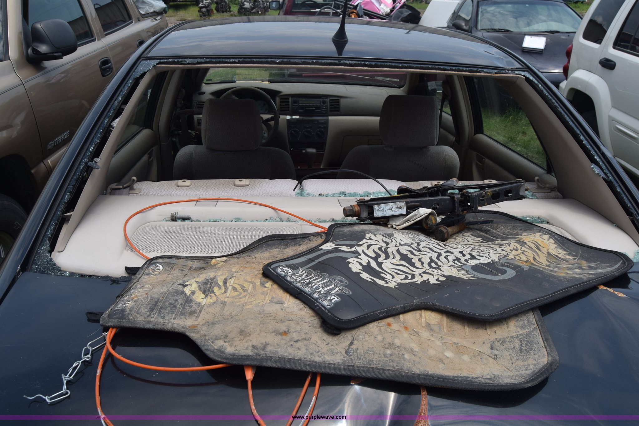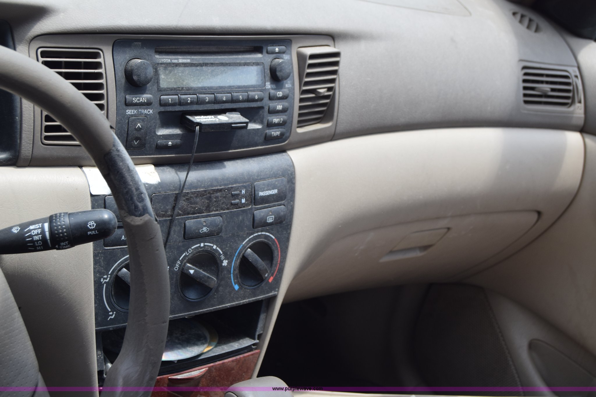 Purple Wave is selling a used Passenger Vehicle in Kansas. This item is a 2003 Toyota Corolla with the following: Unknown miles on odometer, 1.8L L4 DOHC 16V gas engine, Automatic transmission, AC and heat, AM/FM/CD/cassette, Power windows, locks, and mirrors, Cloth interior, 195/65R15 tires, Front end damage, Body damage, Hood will not open, Case# 16C25666