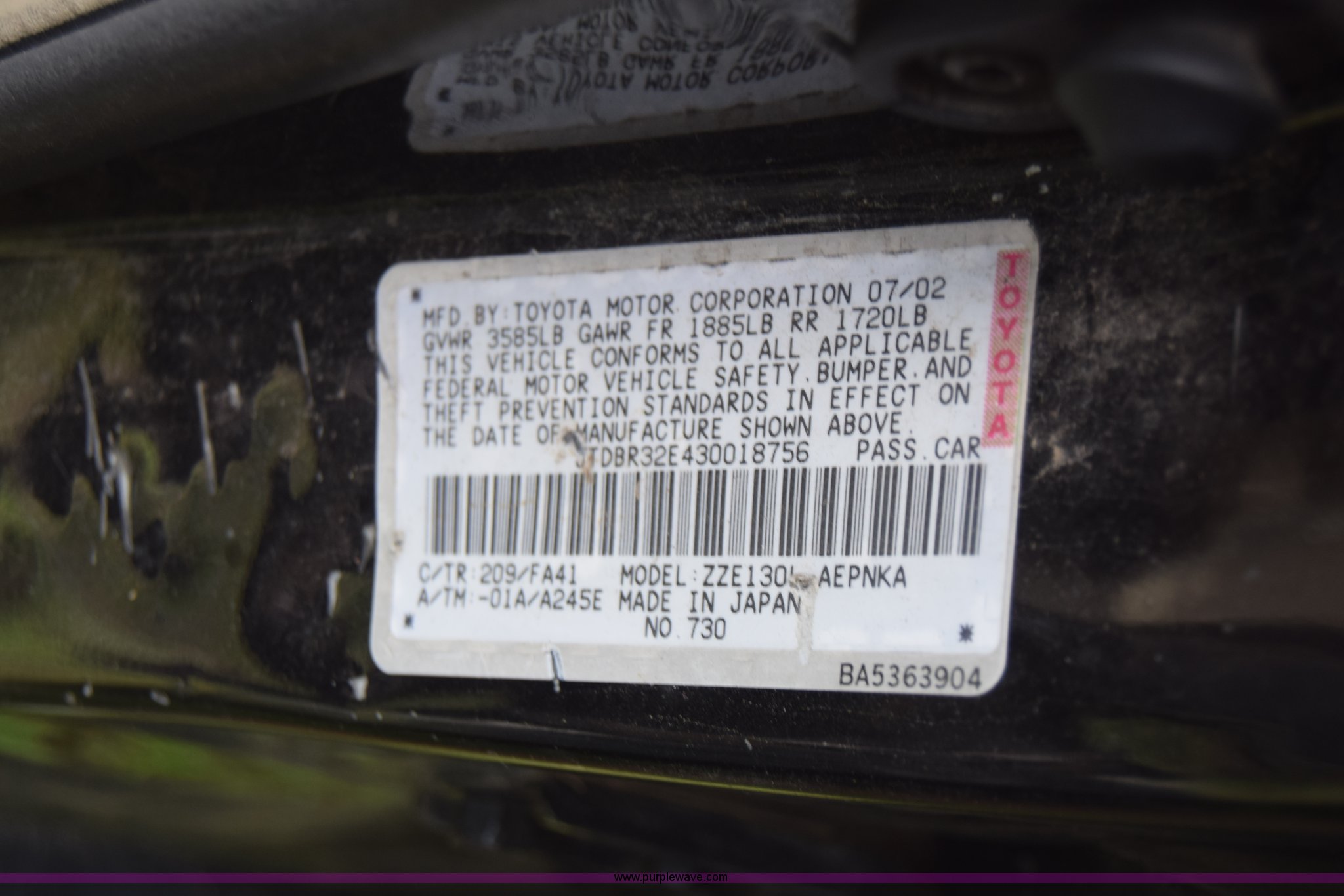 2003 Toyota Corolla has sold in Wichita, Kansas for $165. Item CB9304 sold on July 18th, 2016.