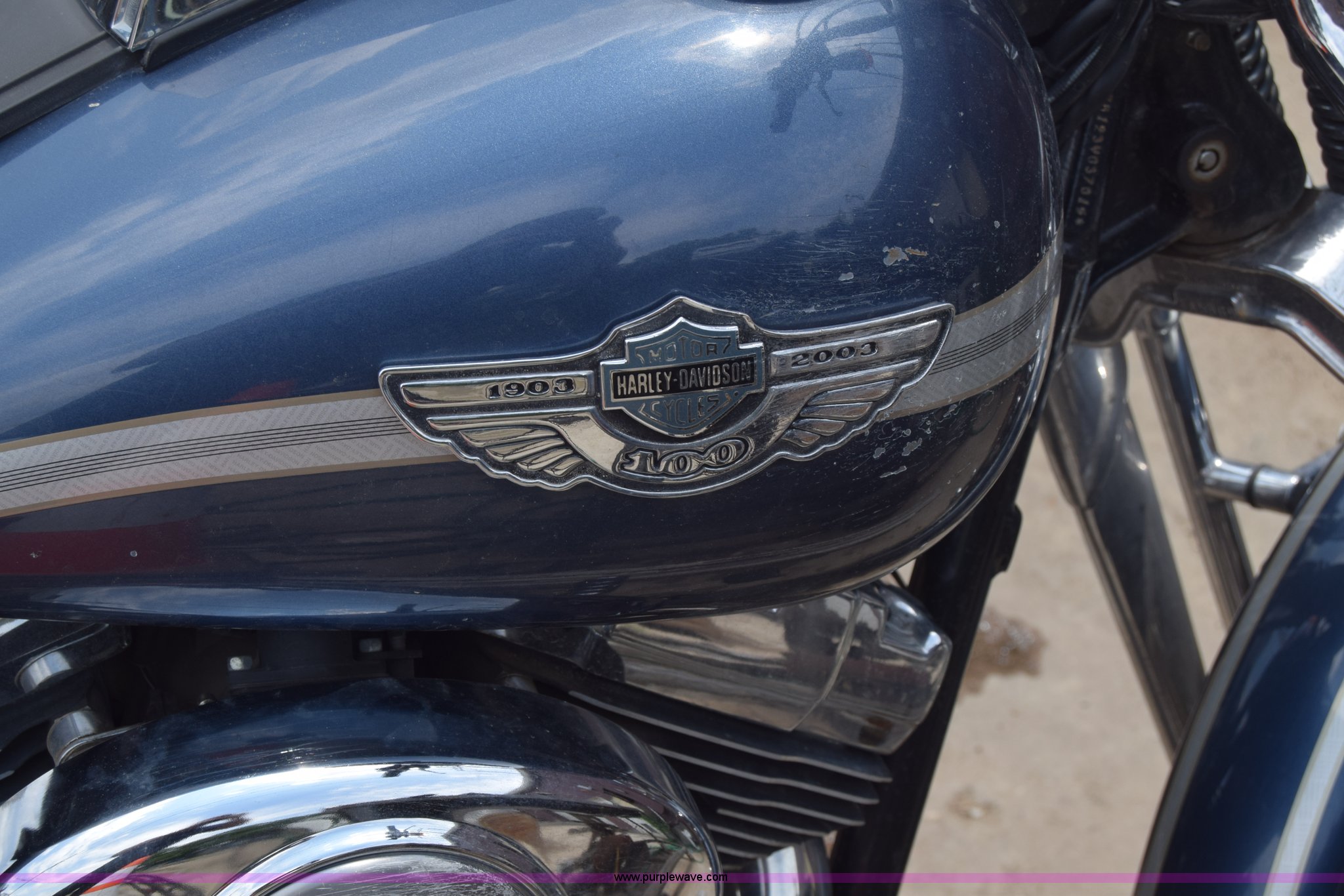 Purple Wave is selling a used Motorcycle in Kansas. This item is a 2003 Harley Davidson FXSTSI motorcycle with the following: Unknown miles on odometer, 1,450cc gas engine, Manual transmission, 150/80B16 tires, Case# 16C25051