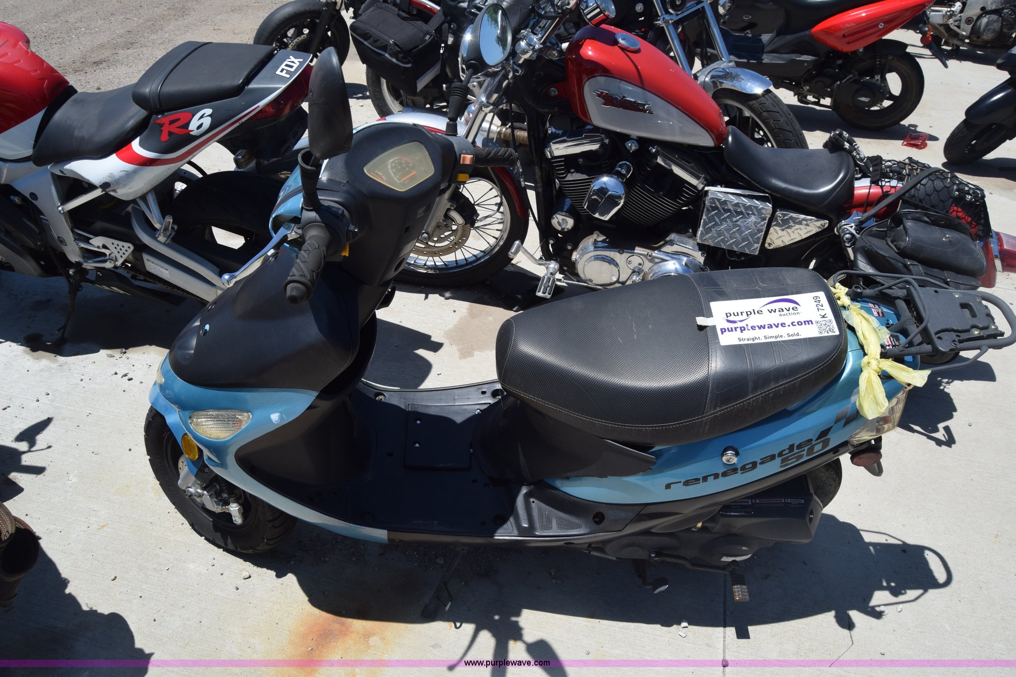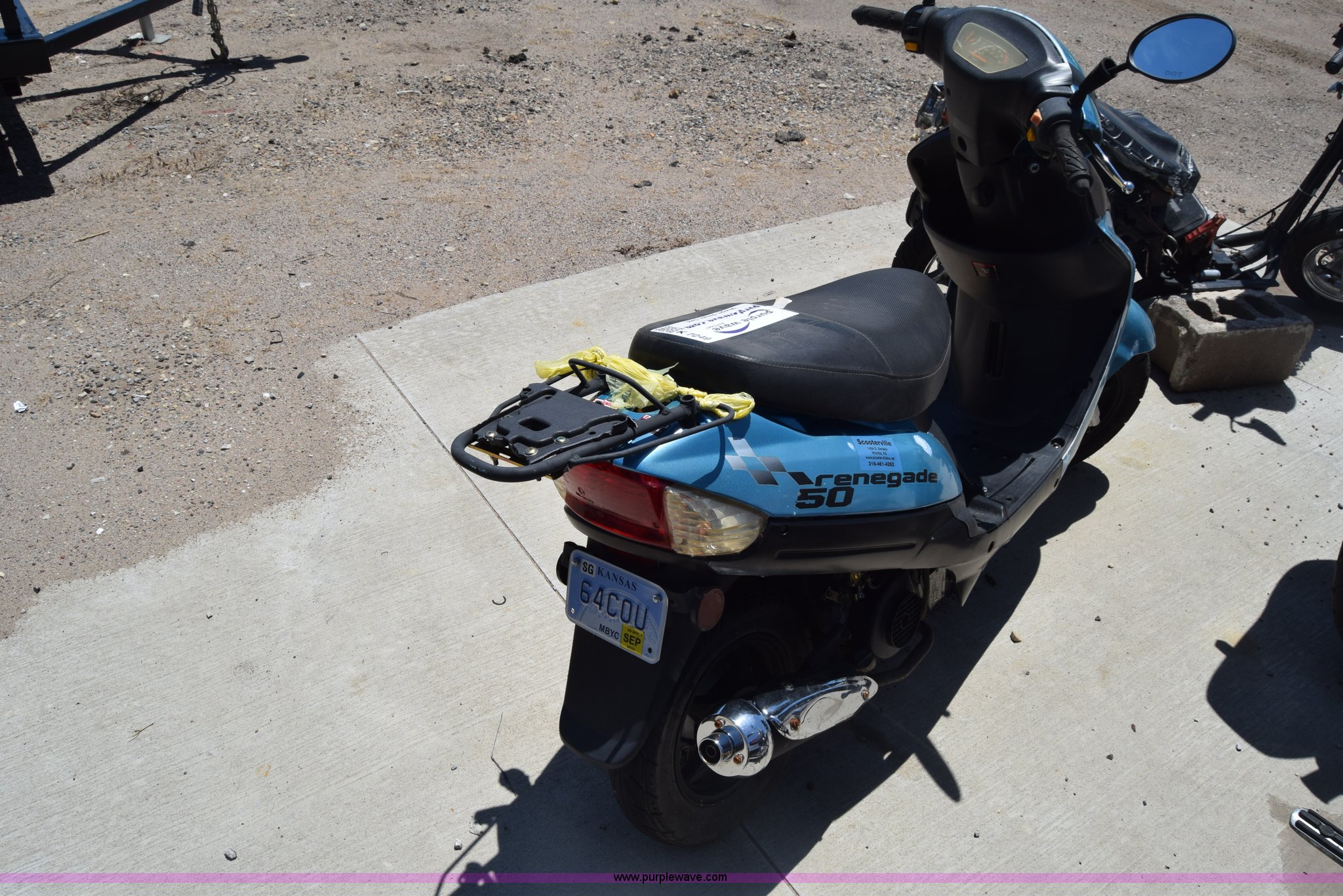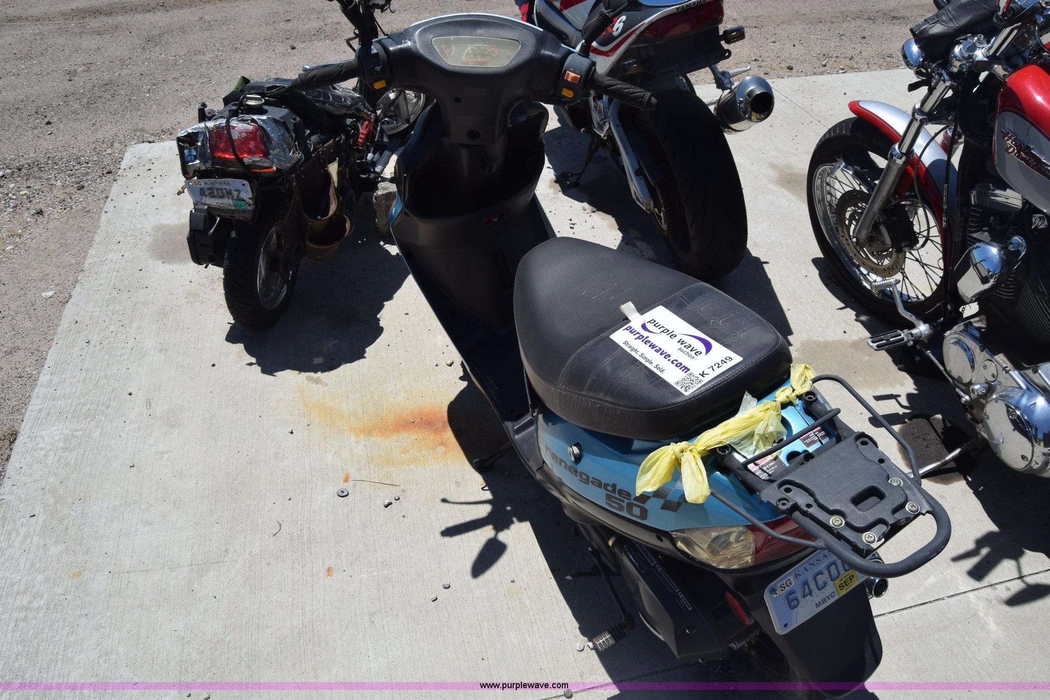 Purple Wave is selling a used Motorcycle in Kansas. This item is a 2012 Renegade 50 moped with the following: 2,752 miles on odometer, Gas engine, Automatic transmission, Vinyl seat, 3.50-10 tires, Case# 13C505272