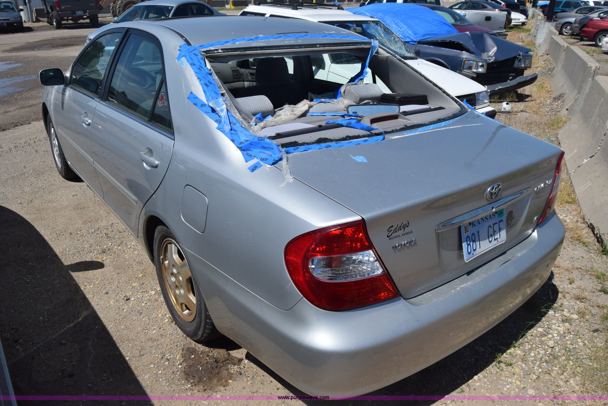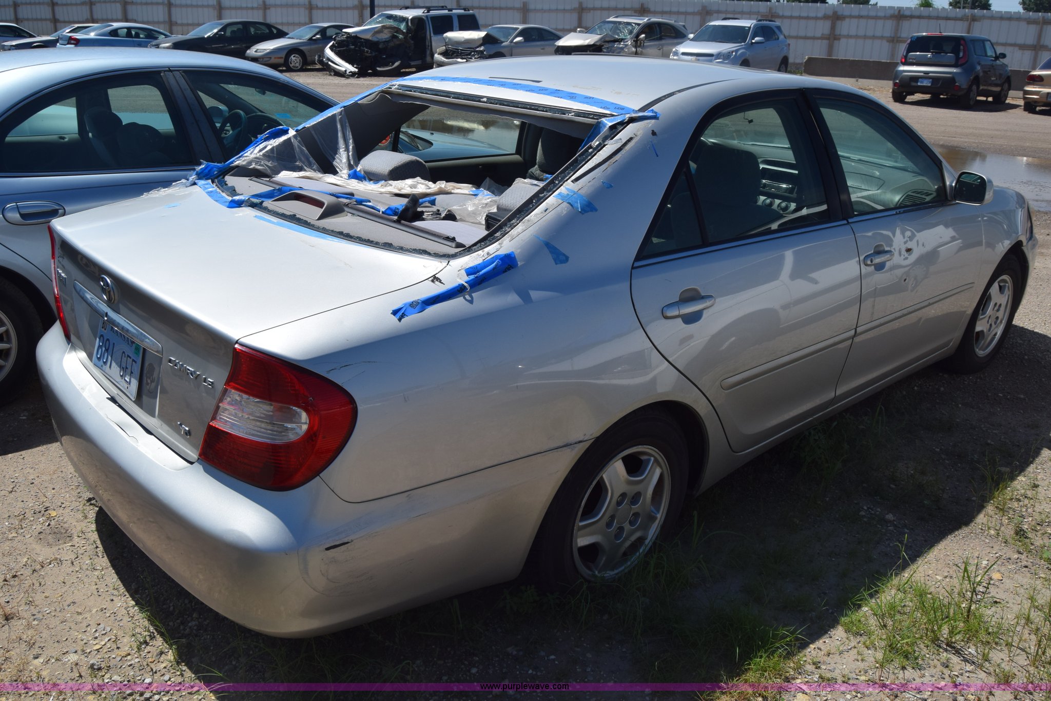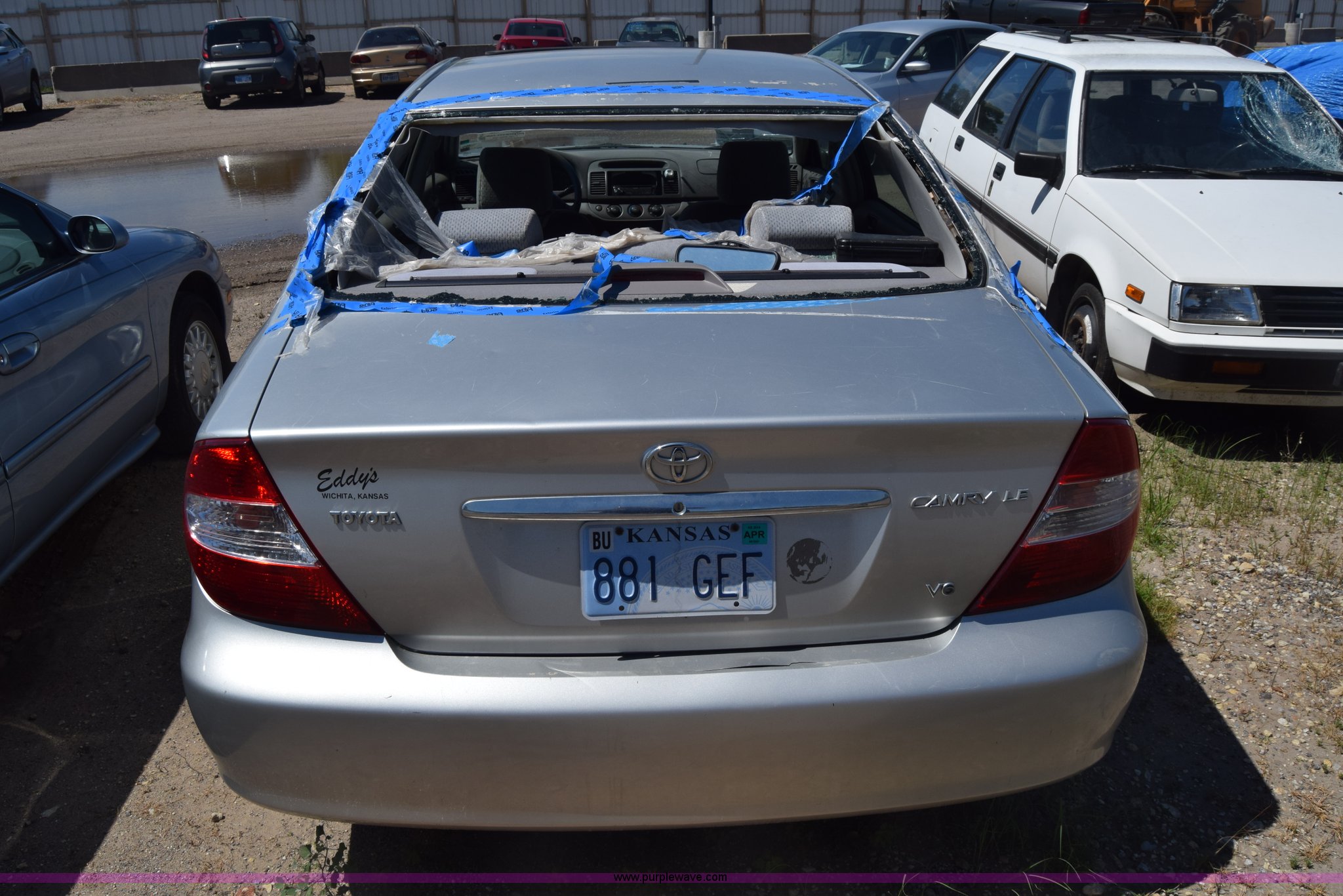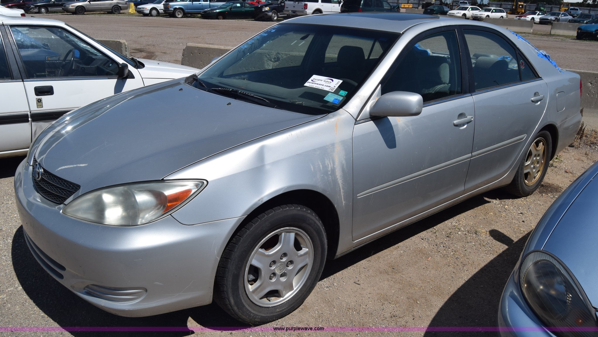 Purple Wave is selling a used Passenger Vehicle in Kansas. This item is a 2003 Toyota Camry with the following: Unknown miles on odometer, 3.0L V6 DOHC 24V gas engine, Automatic transmission, AC and heat, AM/FM/CD, Power windows, locks, and mirrors, Cloth interior, Sunroof, 205/65R15 tires, Hood will not open, Window broken, Case# 16C503714