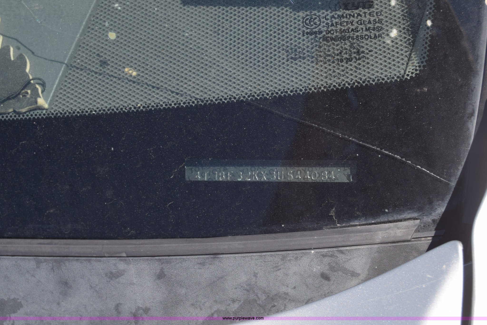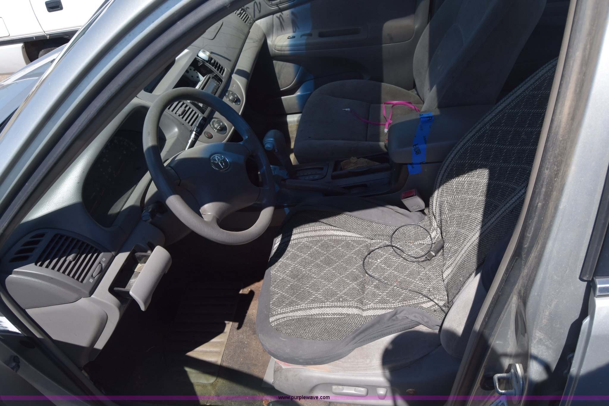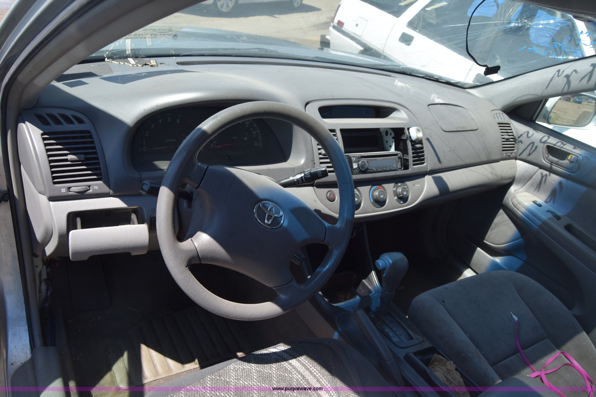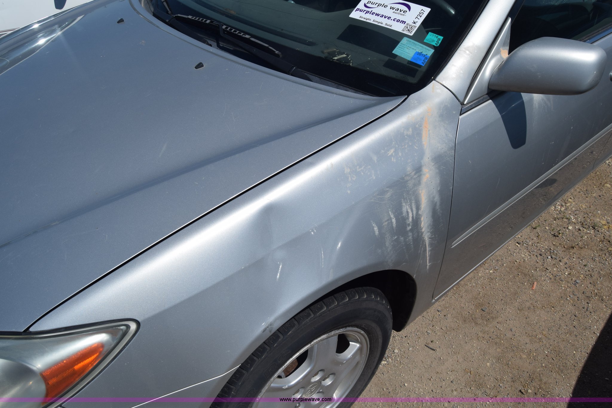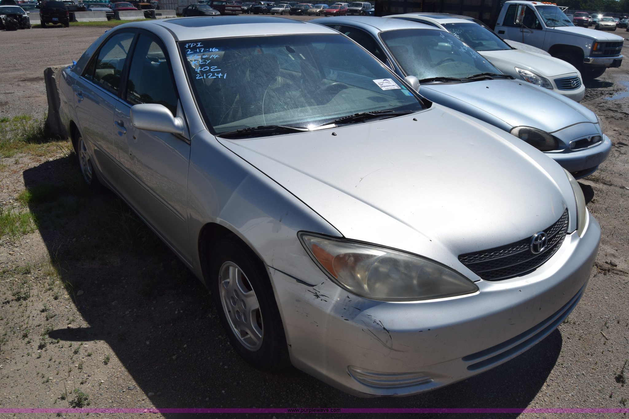 Purple Wave is selling a used Passenger Vehicle in Kansas. This item is a 2003 Toyota Camry with the following: Unknown miles on odometer, 3.0L V6 DOHC 24V gas engine, Automatic transmission, AC and heat, AM/FM/CD, Power windows, locks, and mirrors, Cloth interior, Sunroof, 205/65R15 tires, Hood will not open, Window broken, Case# 16C503714