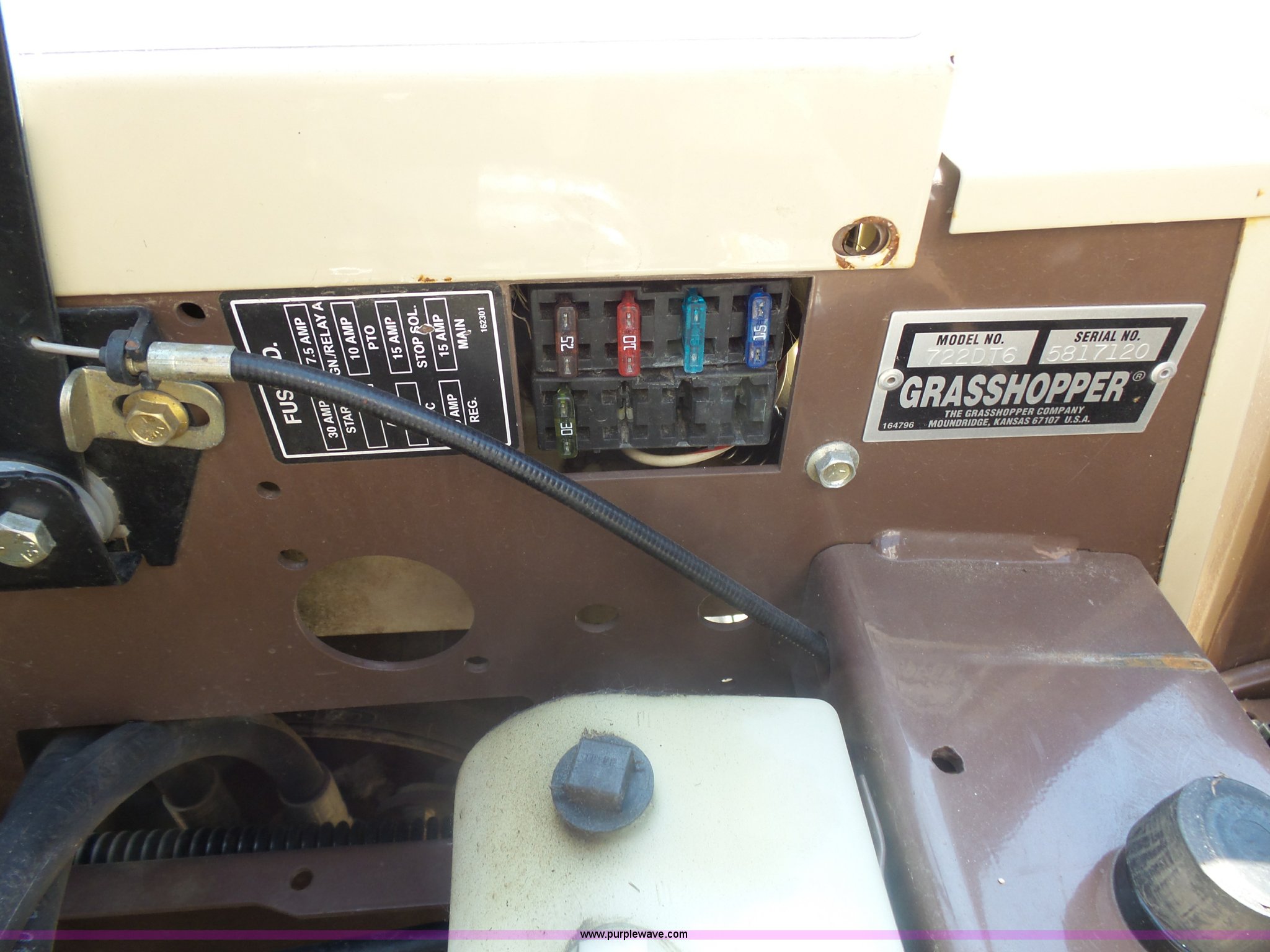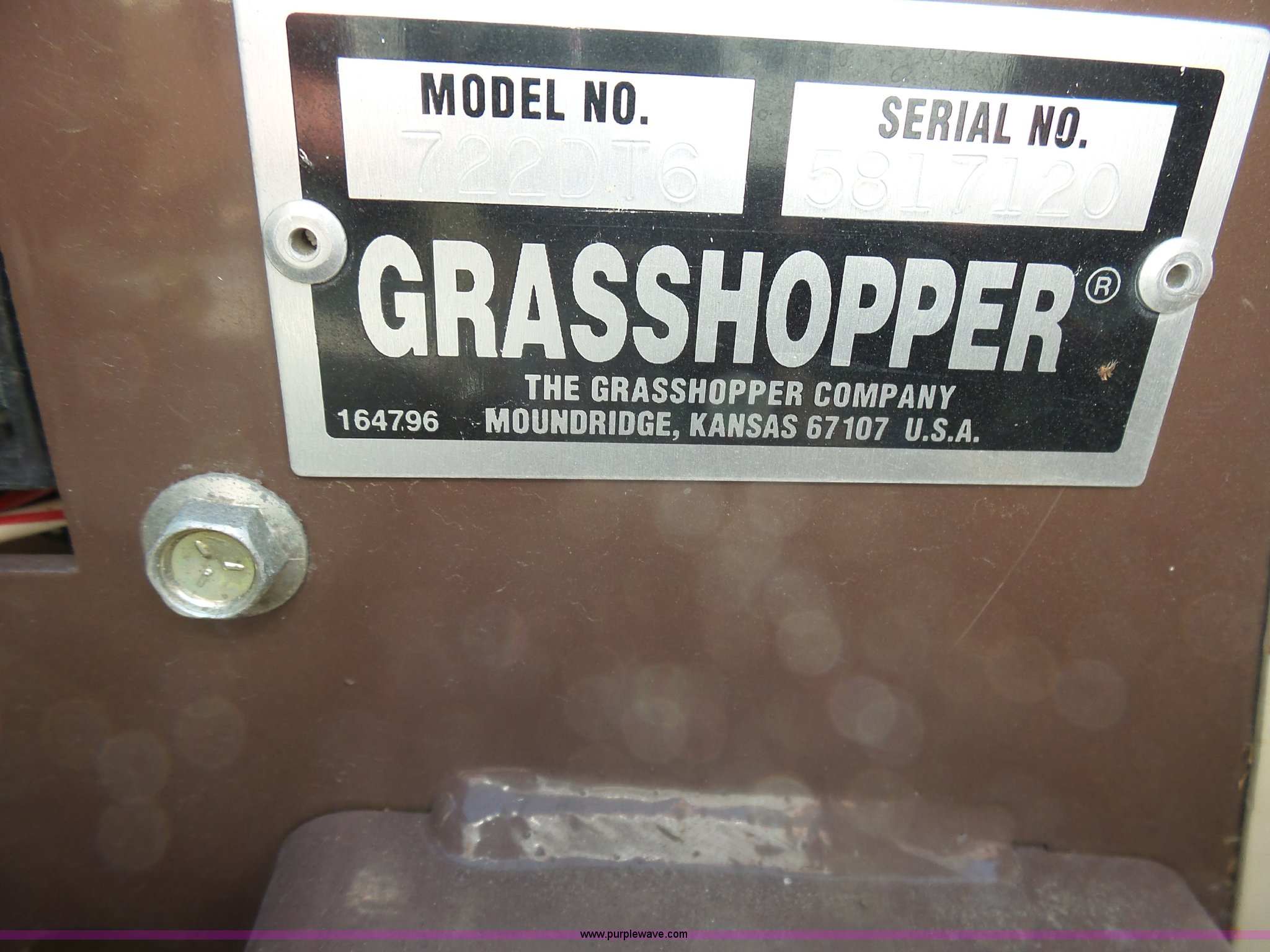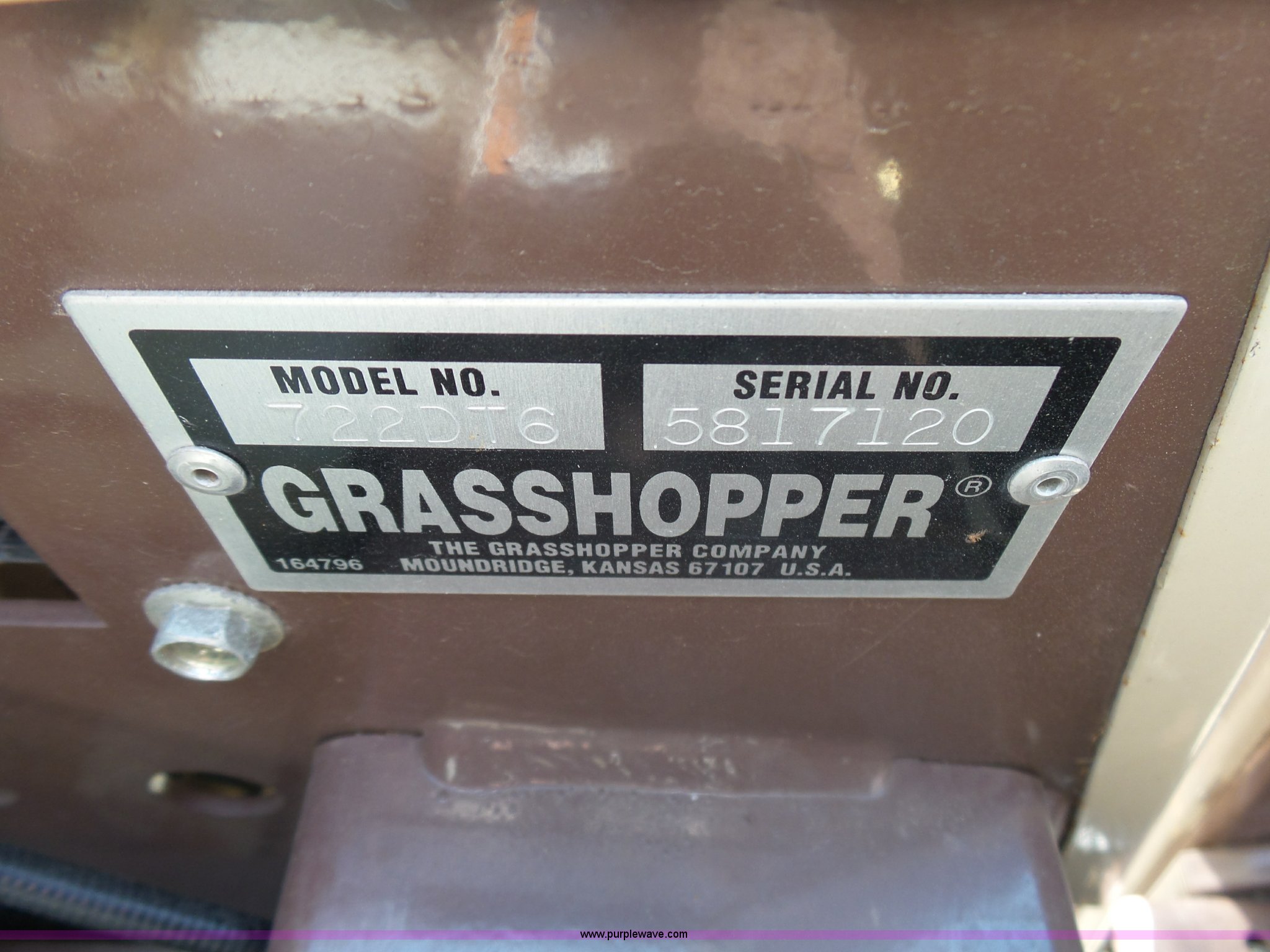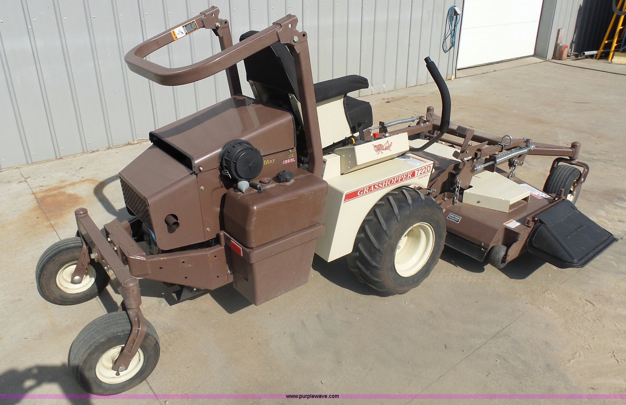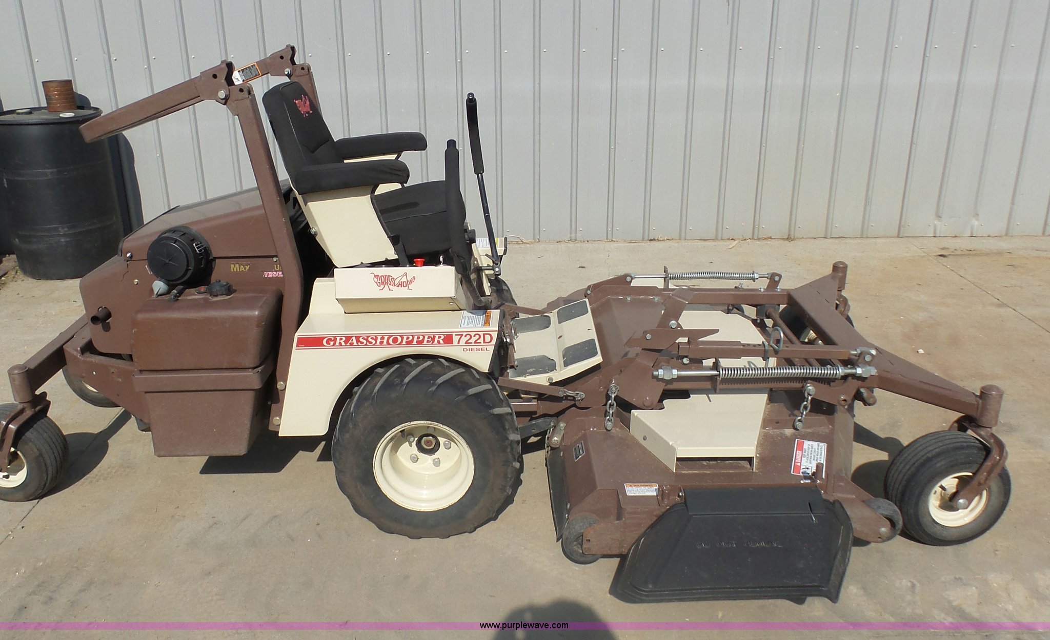 Purple Wave is selling a used Lawn Mower in Minnesota. This item is a 2010 Grasshopper 722D lawn mower with the following: 942 hours on meter, 72" cut, Kubota Max Torque diesel engine, 22 HP, Deck serial 5443217, Wide stance rear axle, 13x6.50-6 front tires, 22x11.00-10 rear tires, Serial 5817120, Unit# 159705