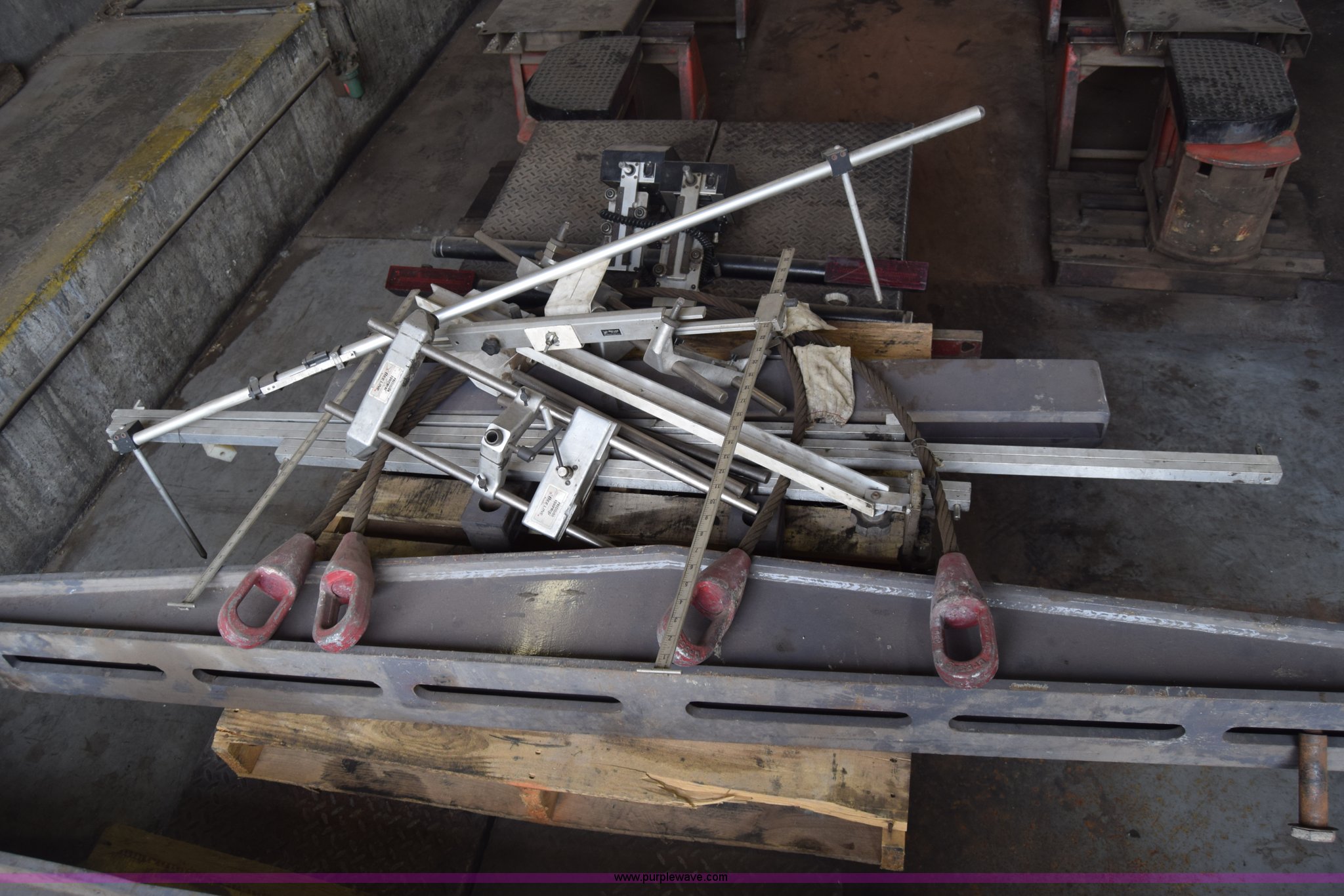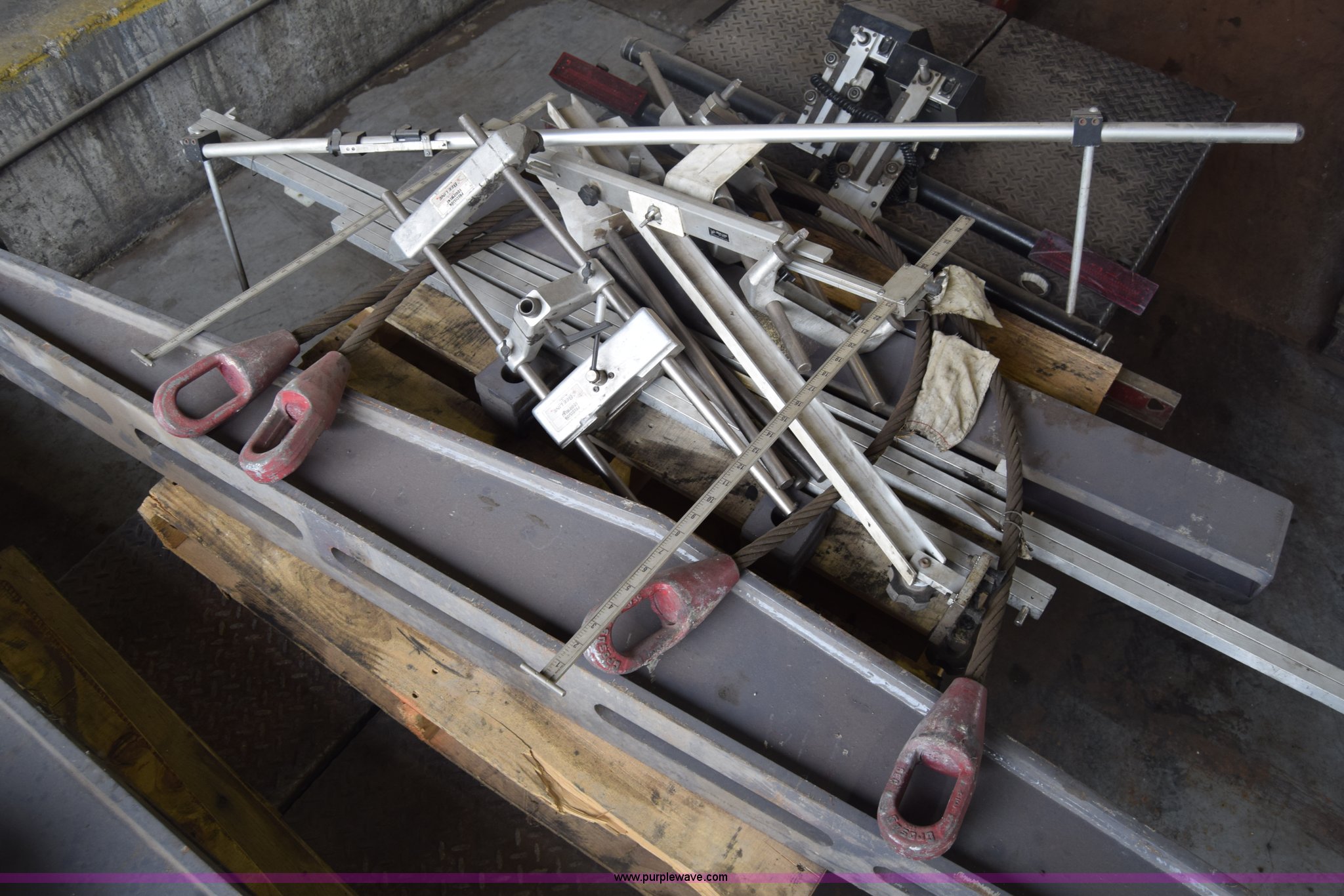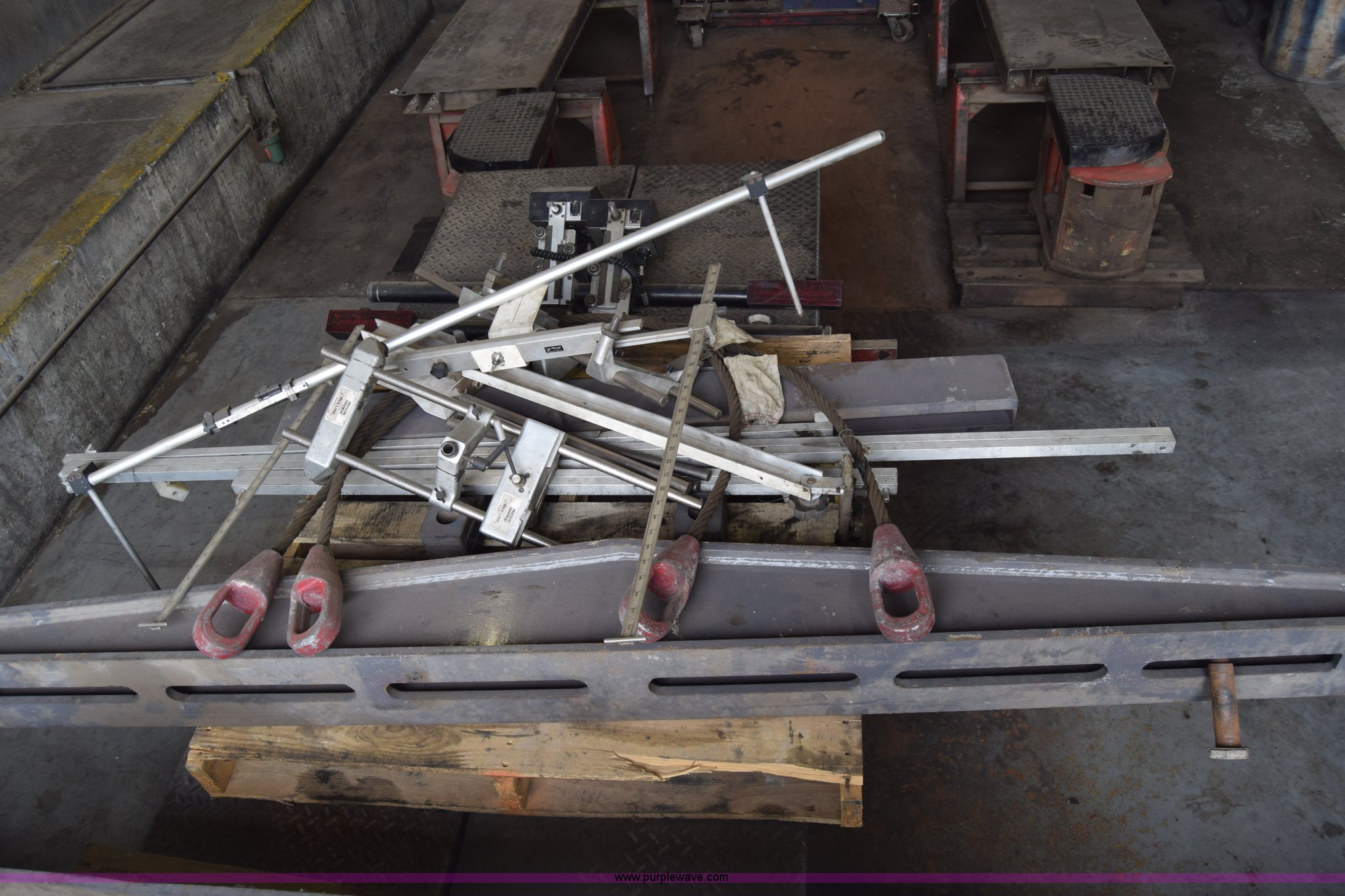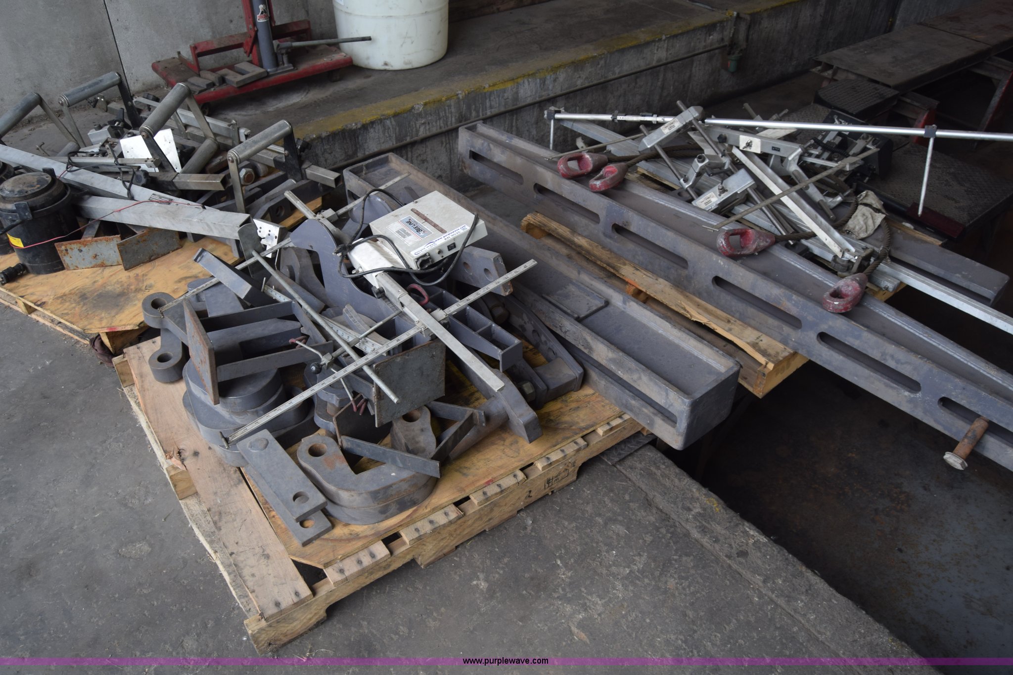 Purple Wave is selling a used Tools in Kansas. This item is a Bee-line calibration/alignment equipment with the following: Assorted parts/tools/equipment, Hydraulic jack