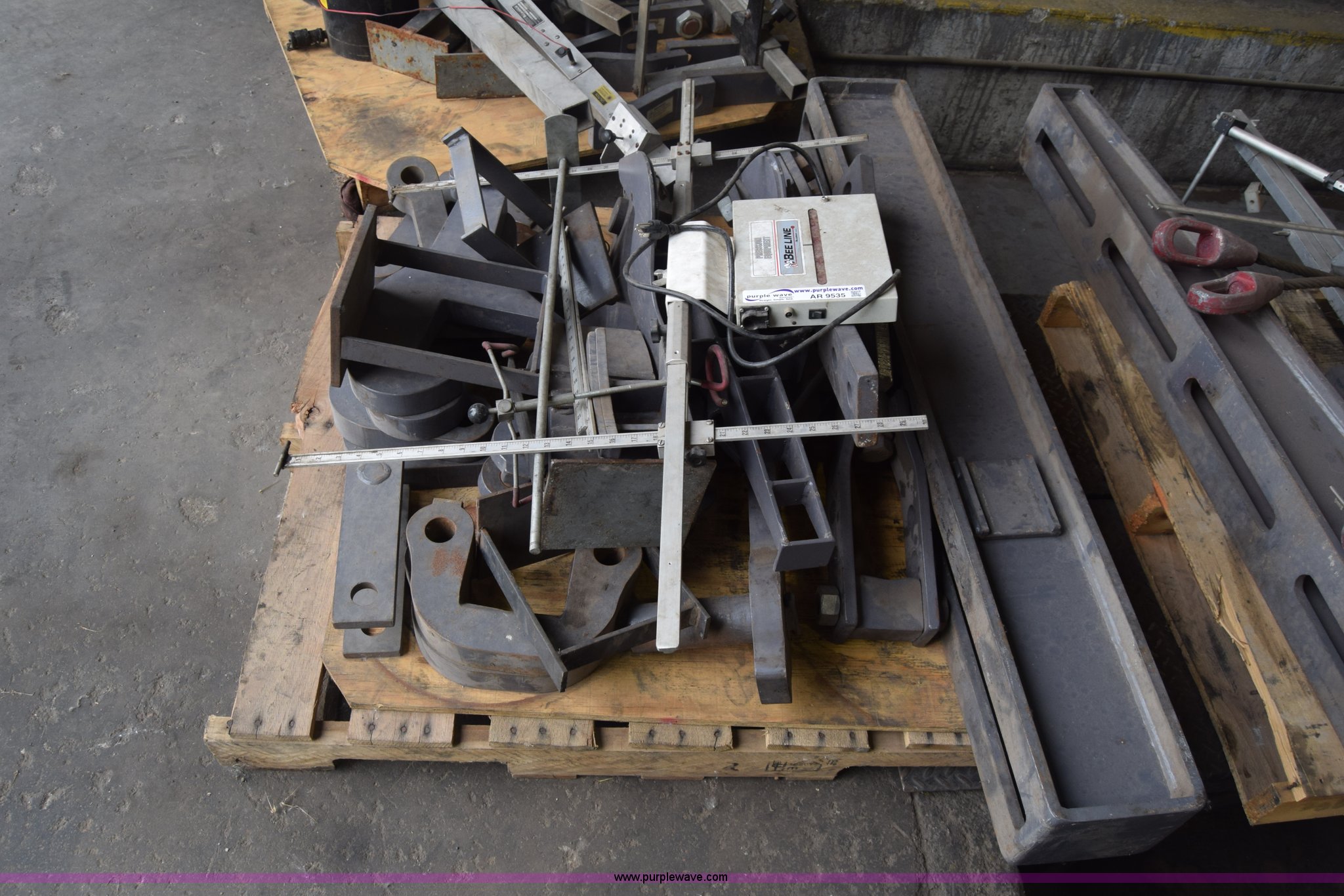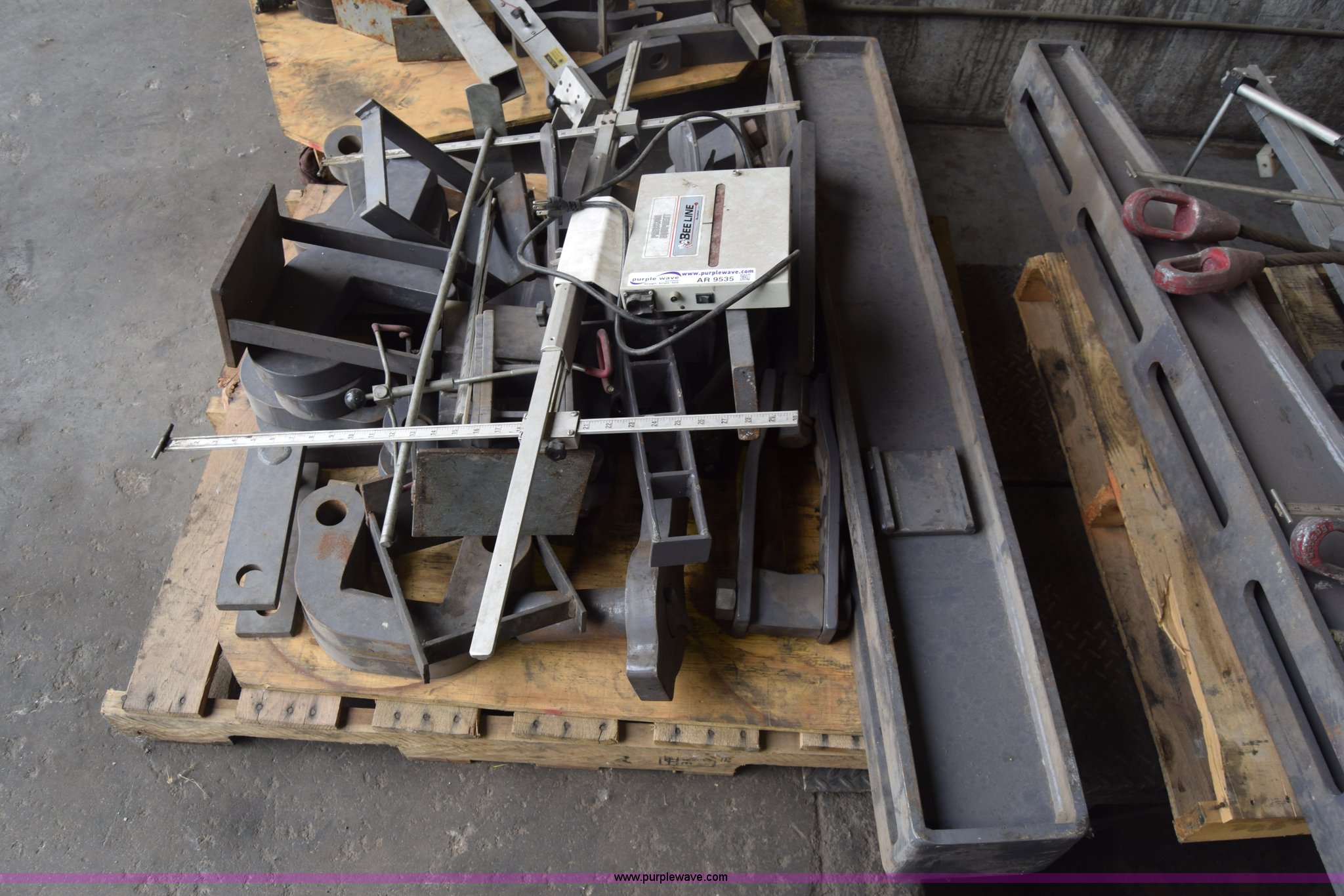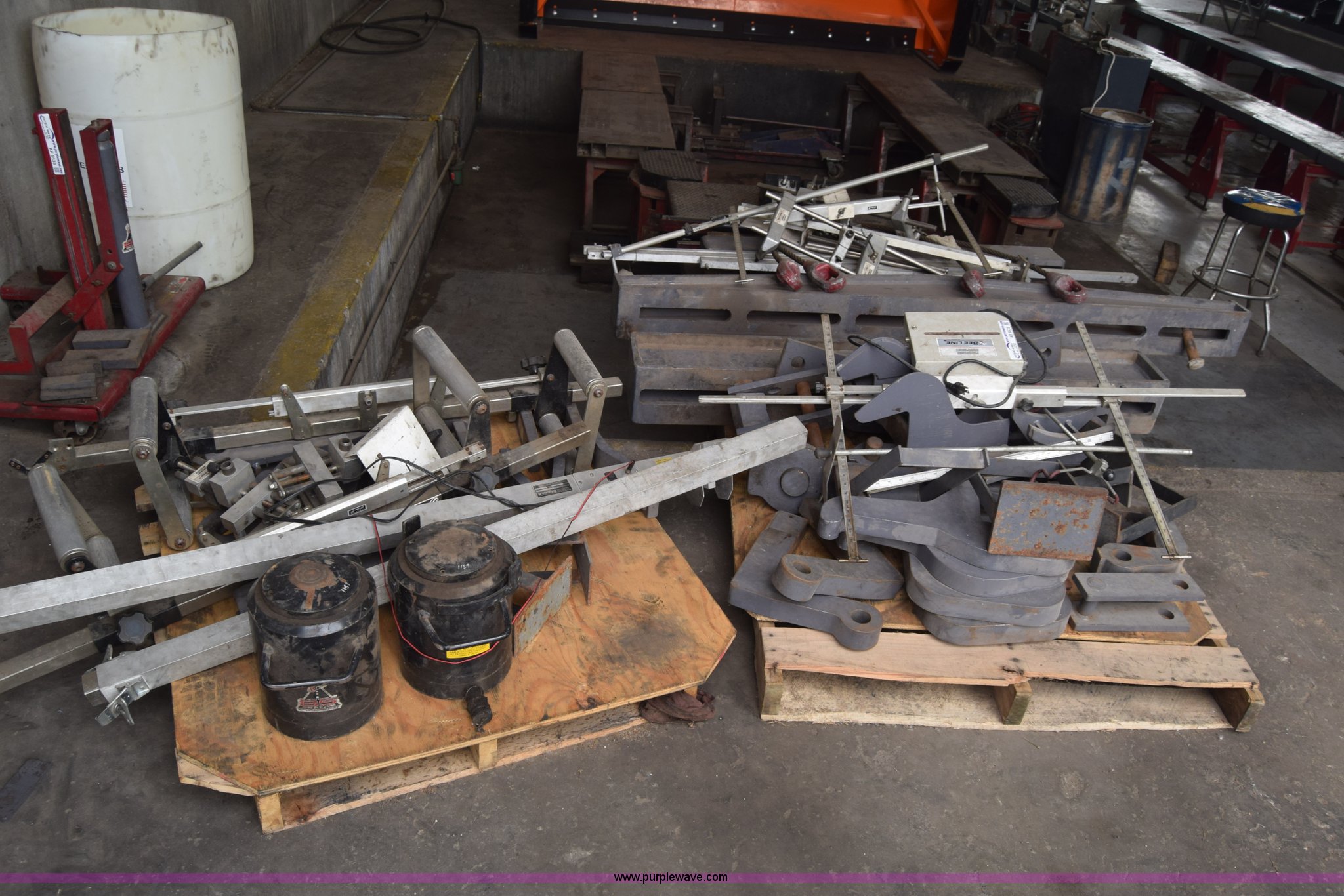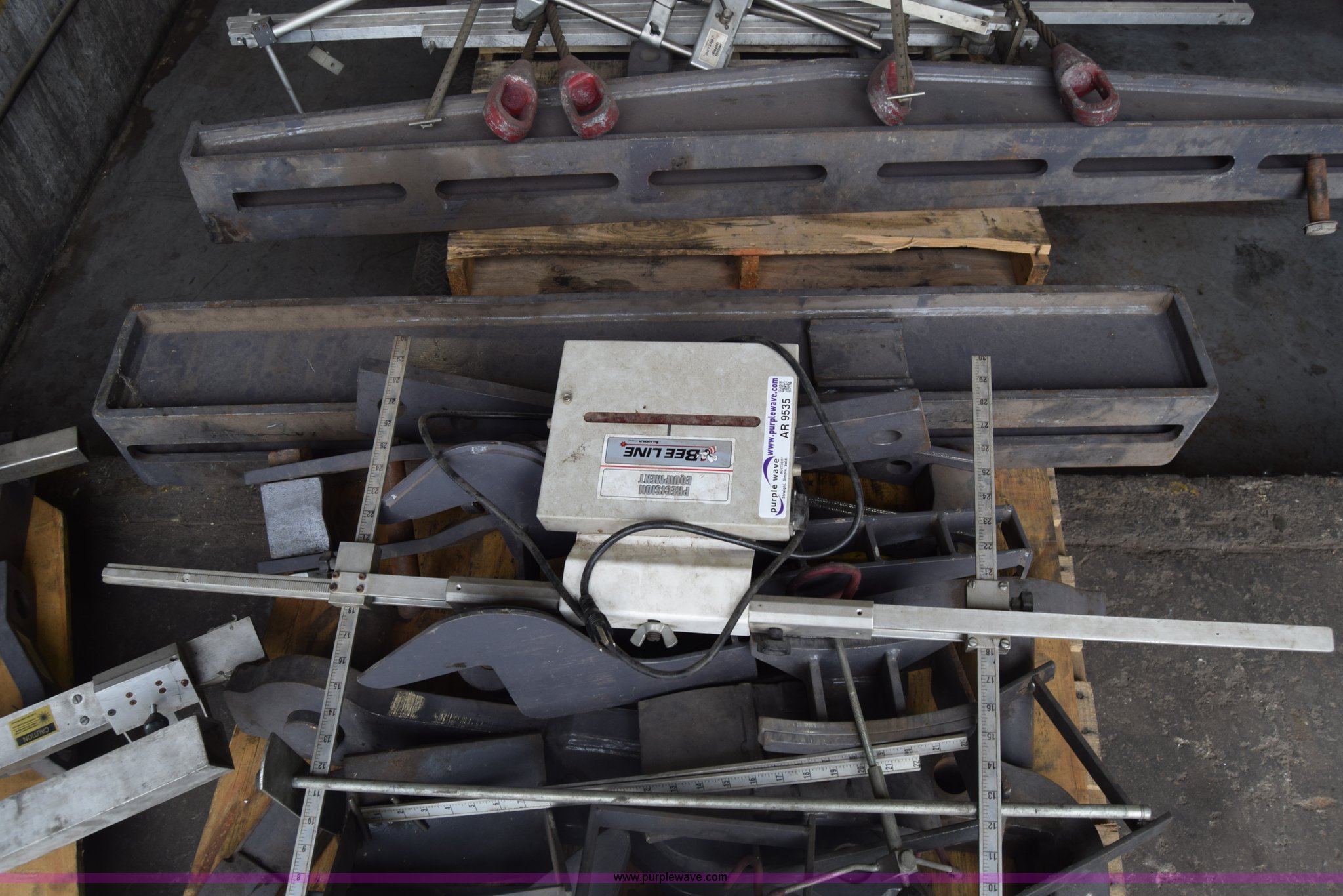 Purple Wave is selling a used Tools in Kansas. This item is a Bee-line calibration/alignment equipment with the following: Assorted parts/tools/equipment, Hydraulic jack