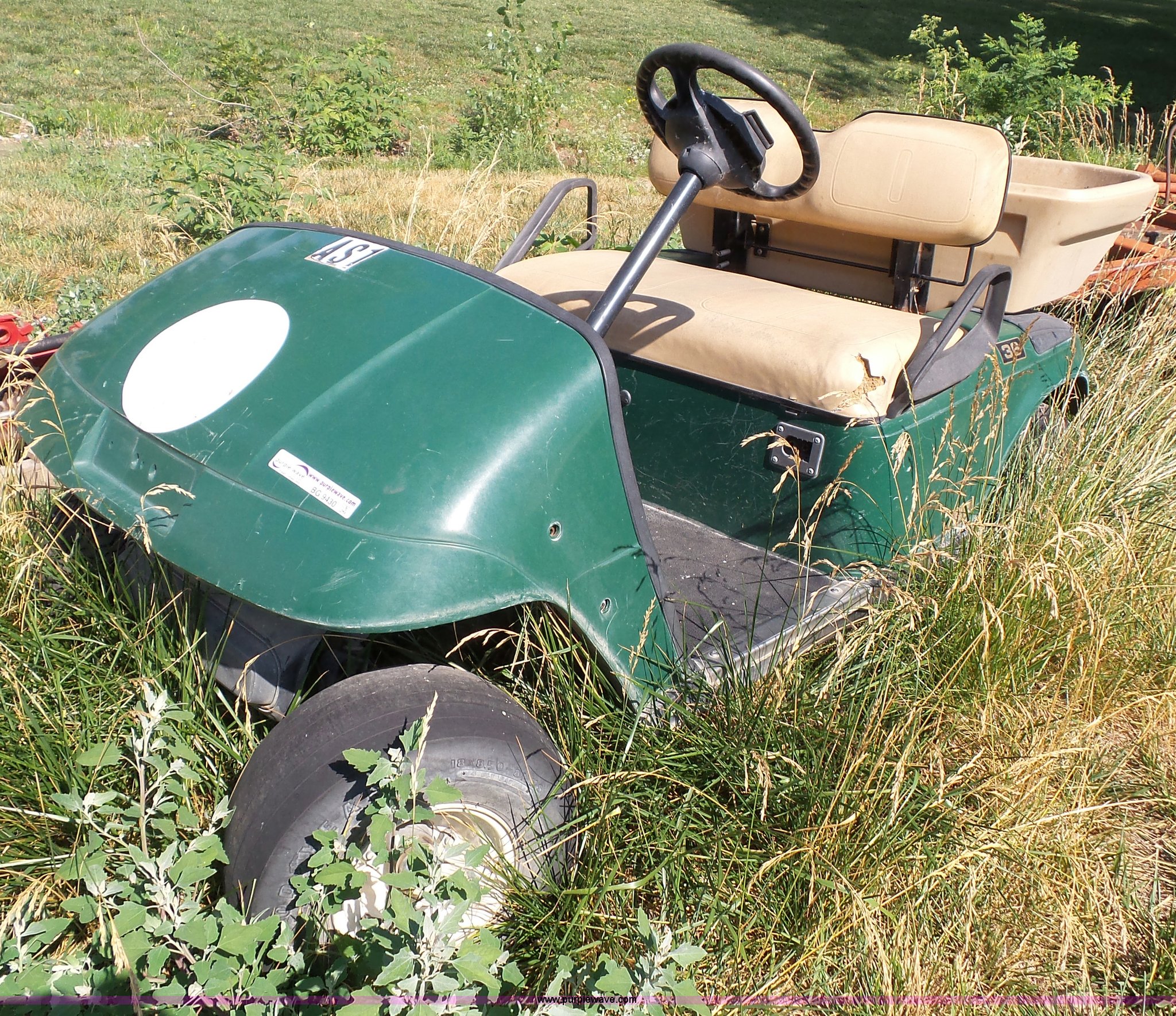 Purple Wave is selling a used Golf Cart in Kansas. This item is a EZ GO golf cart with the following: Electric operation, 46" x 24" x 10" poly dump bed, Charger, Front end damage, Non-operational unit, Parts only, Serial 1484469