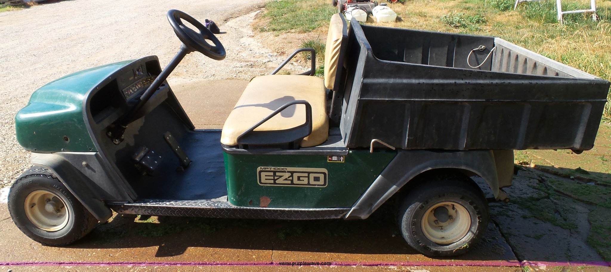 Purple Wave is selling a used Golf Cart in Kansas. This item is a EZ GO MPT1000 golf cart with the following: Advanced 48V motor, Poly manual dump bed, 4' x 3' x 14", Folding end gate, Front work lights, Draw bar, 18 x 8.50-8 tires, (2) chargers, 48V