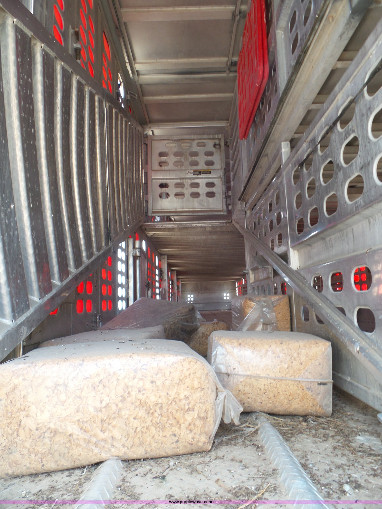 Purple Wave is selling a used Livestock Trailer in Oklahoma. This item is a 1997 Wilson Hog Deck PSAL303P livestock trailer with the following: 53' overall length, 102"W, Aluminum construction, Two decks, Rear roll-up gate, Dock bumper, Spray system, Dual leg two speed landing gear, Under-mounted toolbox, Fifth wheel plate, Tandem axle, Spring suspension, Air brakes, Steel wheels, 11R22.5 tires, GVWR 65,000 lbs, Unit# 3788