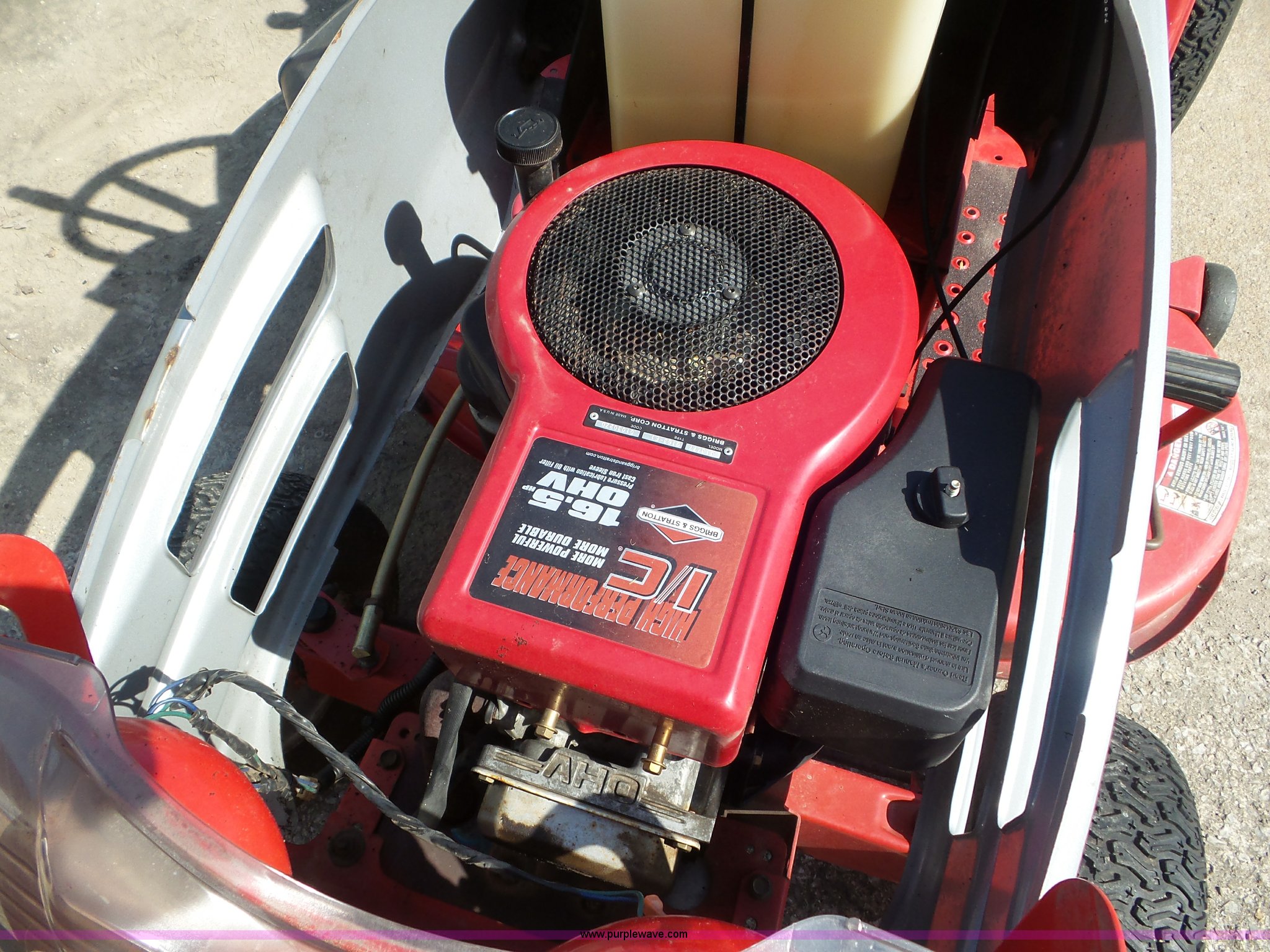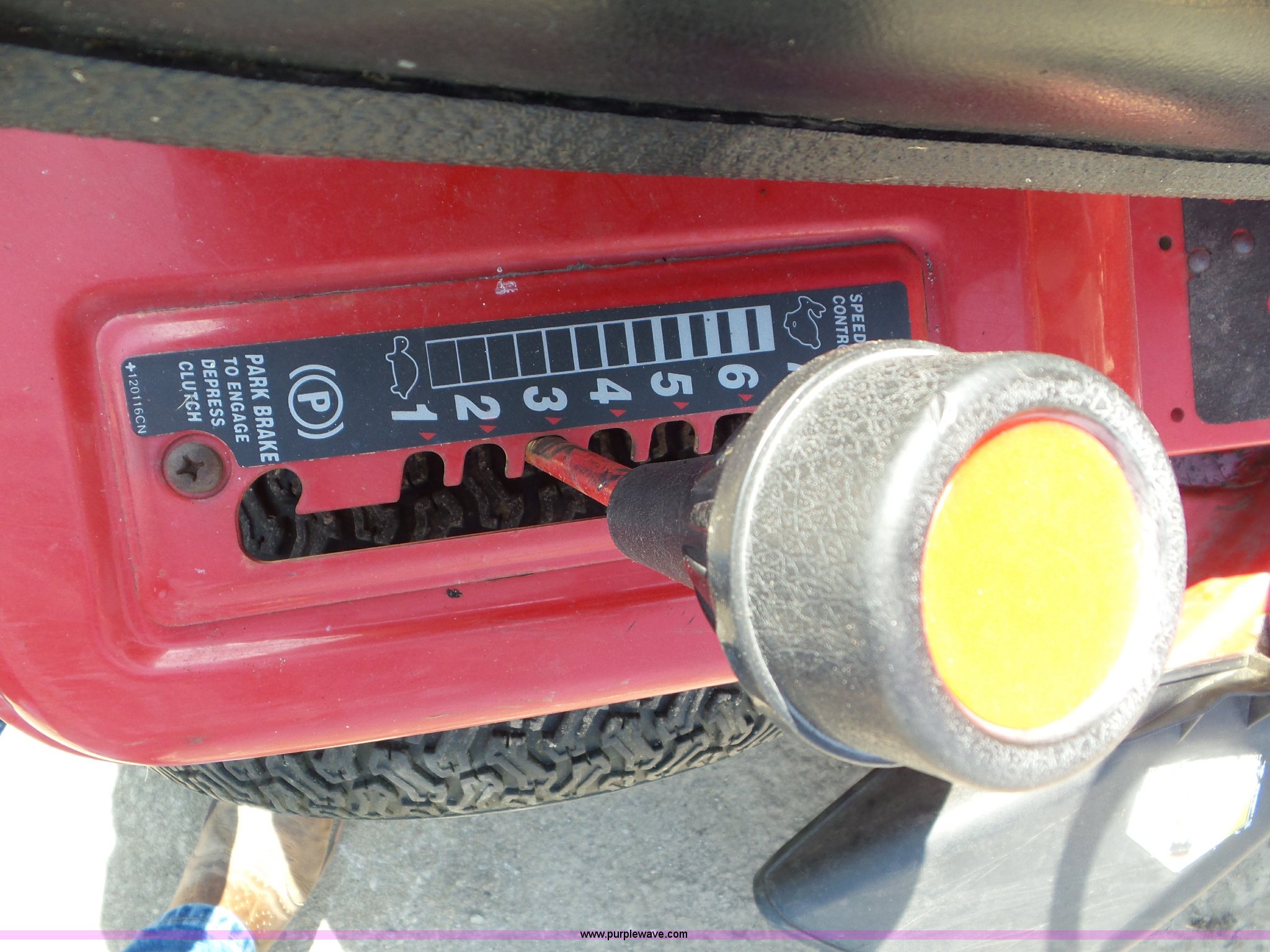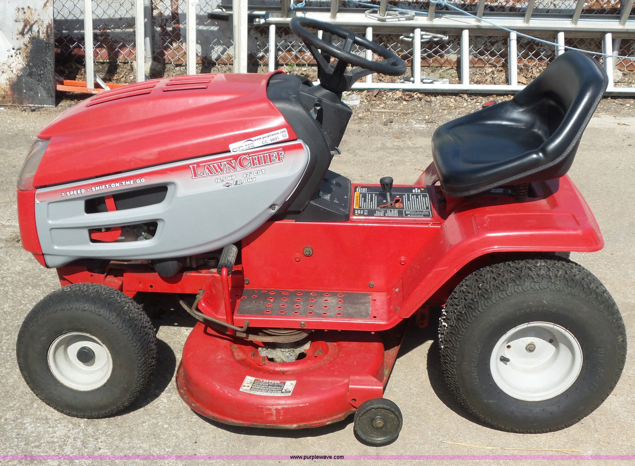 Purple Wave is selling a used Lawn Mower in Missouri. This item is a Lawn Chief lawn mower with the following: 42" cut, Briggs & Stratton 16.5 HP gas engine, Seven speed shift on the go transmission, Rear pin hitch, 15x6.00-6 front tires, 20x8.00-8 rear tires