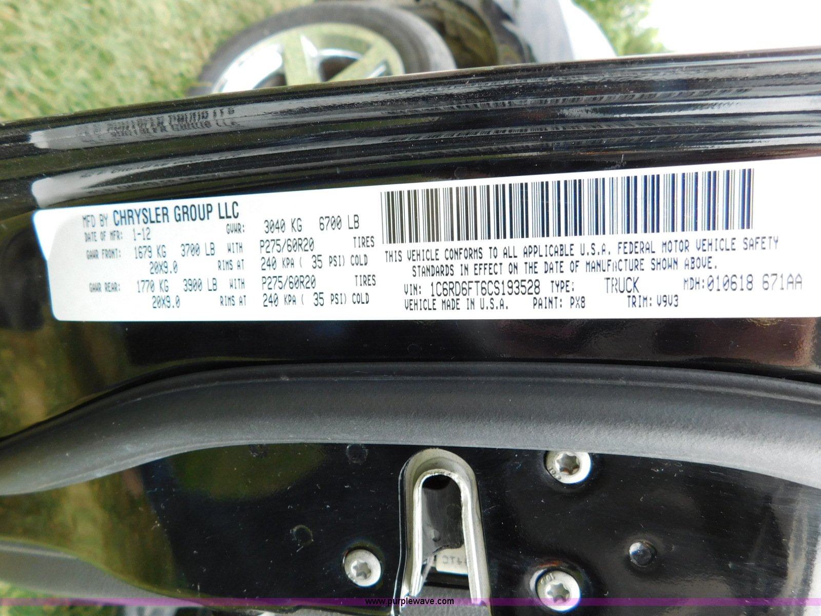 Purple Wave is selling a used 1/2 Ton Pickup or Van in Kansas. This item is a 2012 Dodge Ram 1500 Quad Cab pickup truck with the following: 52,476 miles on odometer, 5.7L V8 OHV 16V gas engine, Automatic transmission, AC and heat, Tilt, Cruise, AM/FM/CD, Power windows, locks, and mirrors, Cloth interior, Front tow hook, 275/60R20 tires