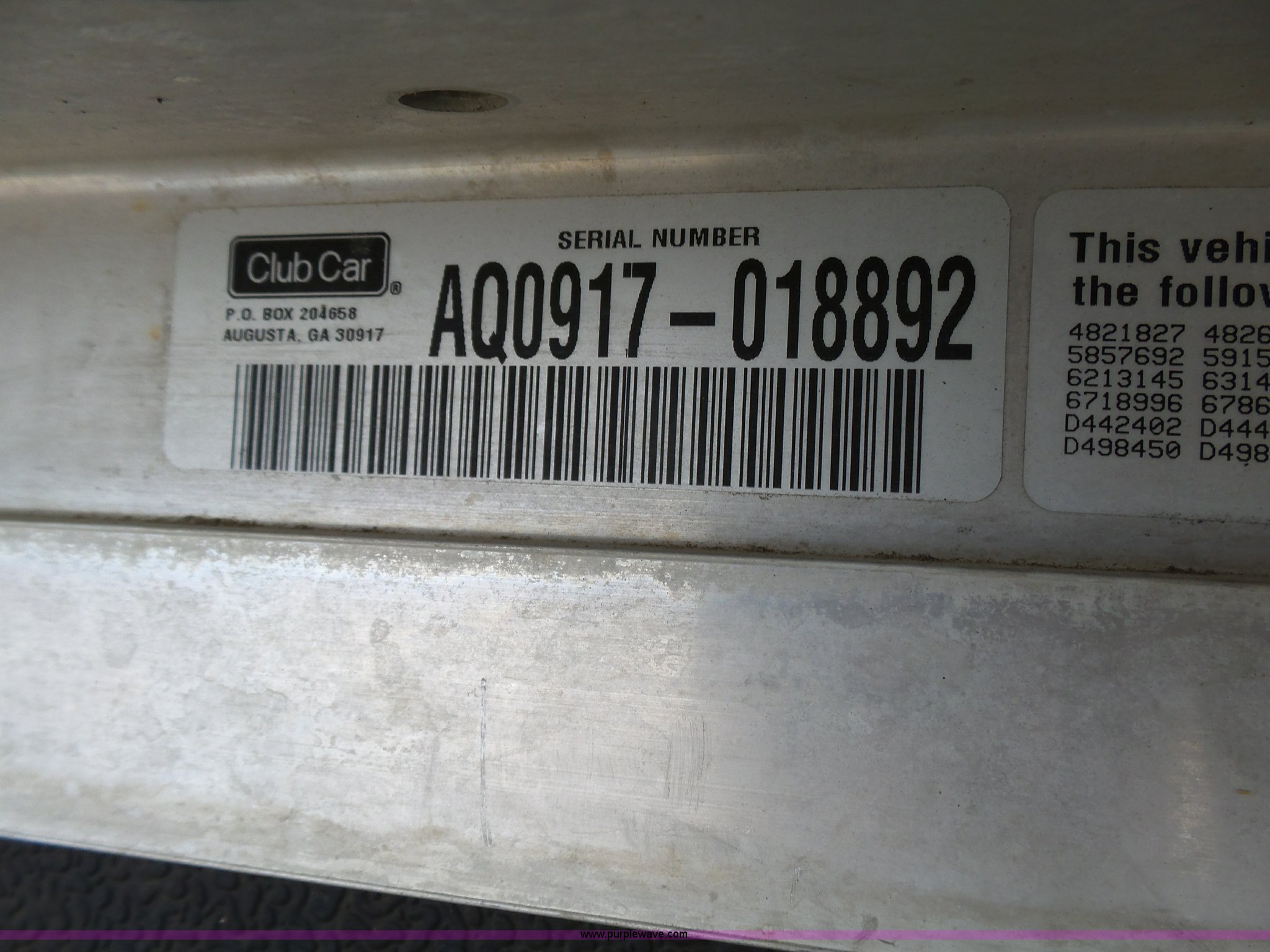 Purple Wave is selling a used Golf Cart in Kansas. This item is a 2009 Club Car DS golf cart with the following: 48V electric, (4) 2013 12V batteries, 18x8.50-8 tires, Serial AQ0917-018892