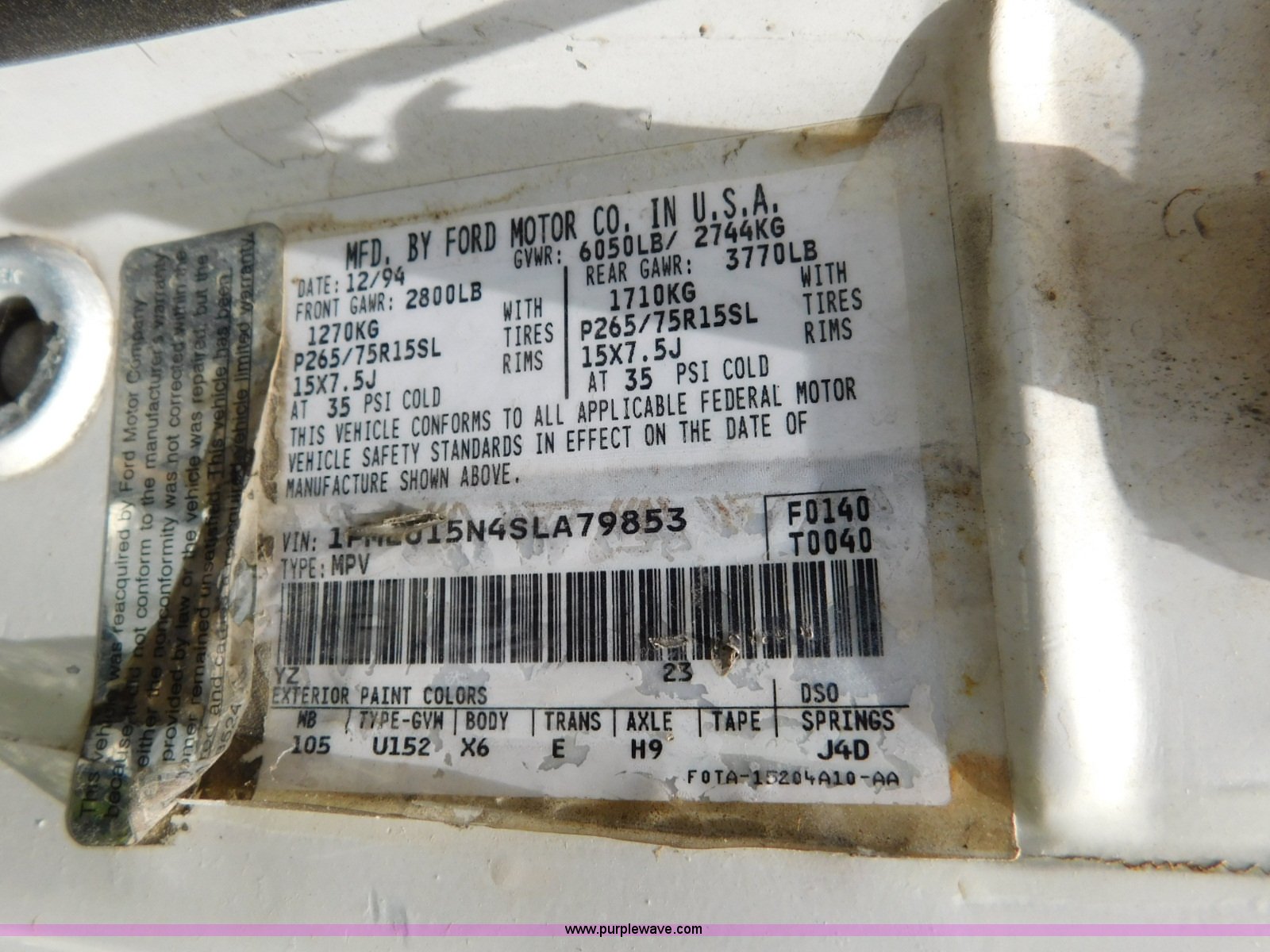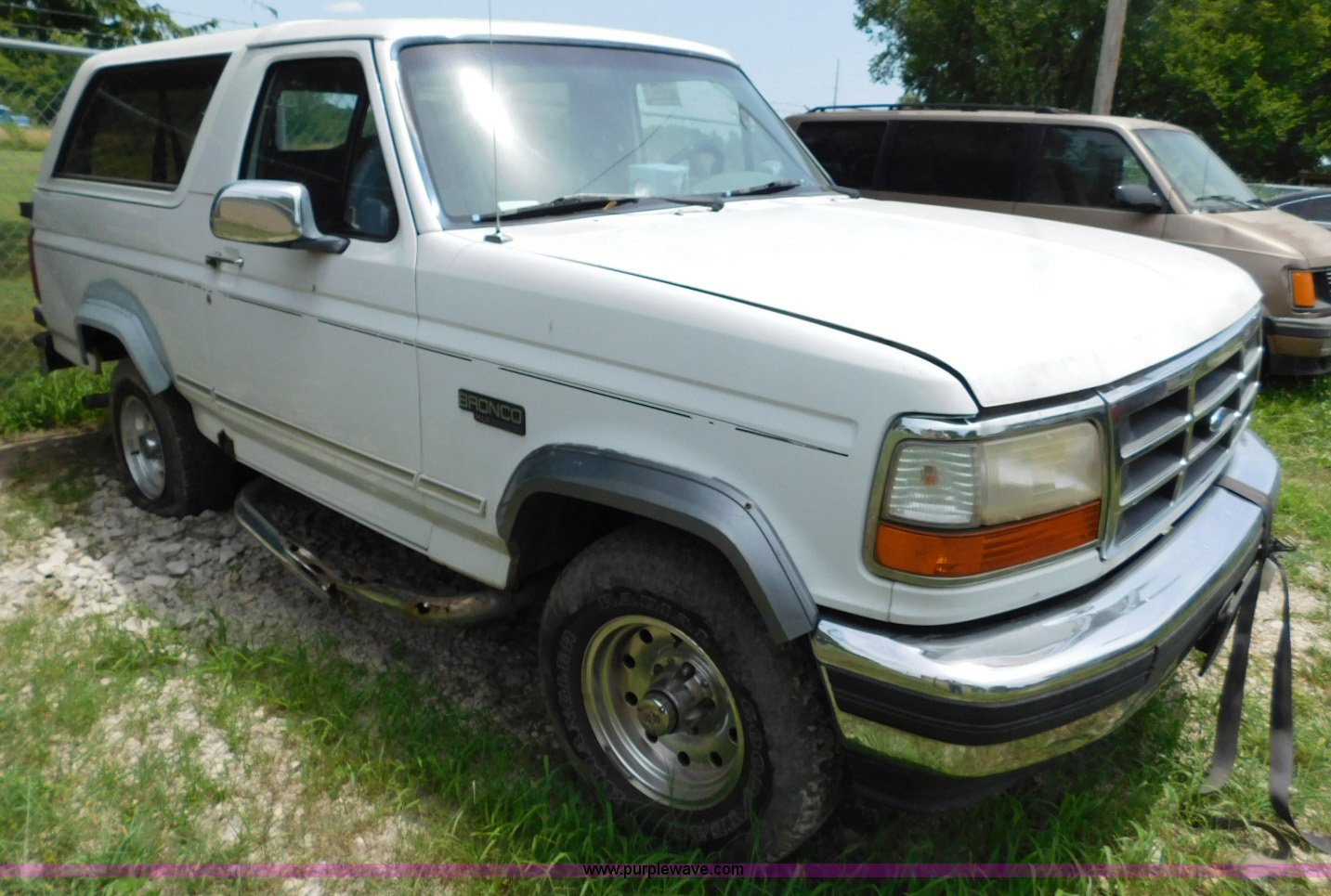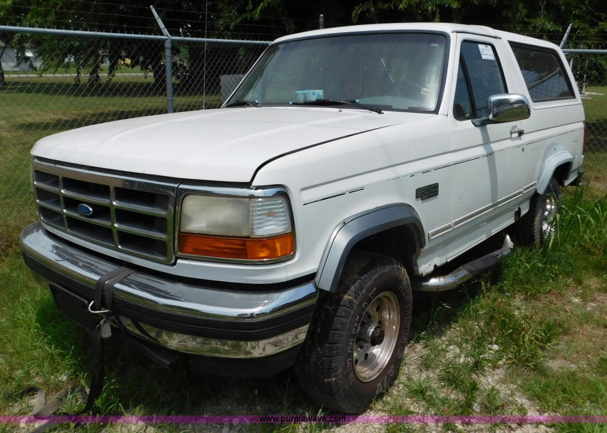 Purple Wave is selling a used Passenger Vehicle in Oklahoma. This item is a 1995 Ford Bronco SUV with the following: Unknown miles on odometer, 5.0L V8 OHV 16V gas engine, Automatic transmission, Four wheel drive, AC and heat, Tilt, Crusie, AM/FM/CD, Power windows, locks, mirrors, and seat, Vinyl interior, 235/75R15 tires