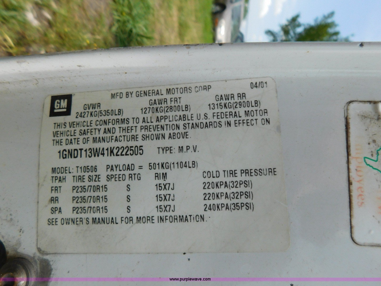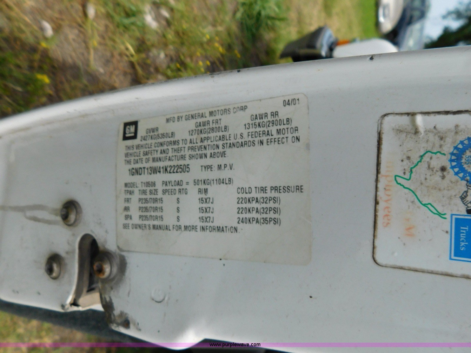 Purple Wave is selling a used Passenger Vehicle in Oklahoma. This item is a 2001 Chevrolet Blazer SUV with the following: 166,779 miles on odometer, 4.3L V6 OHV 12V gas engine, Automatic transmission, AC and heat, Tilt, Cruise, AM/FM/CD, Power windows, locks, and mirrors, Cloth interior, 235/75R15 tires