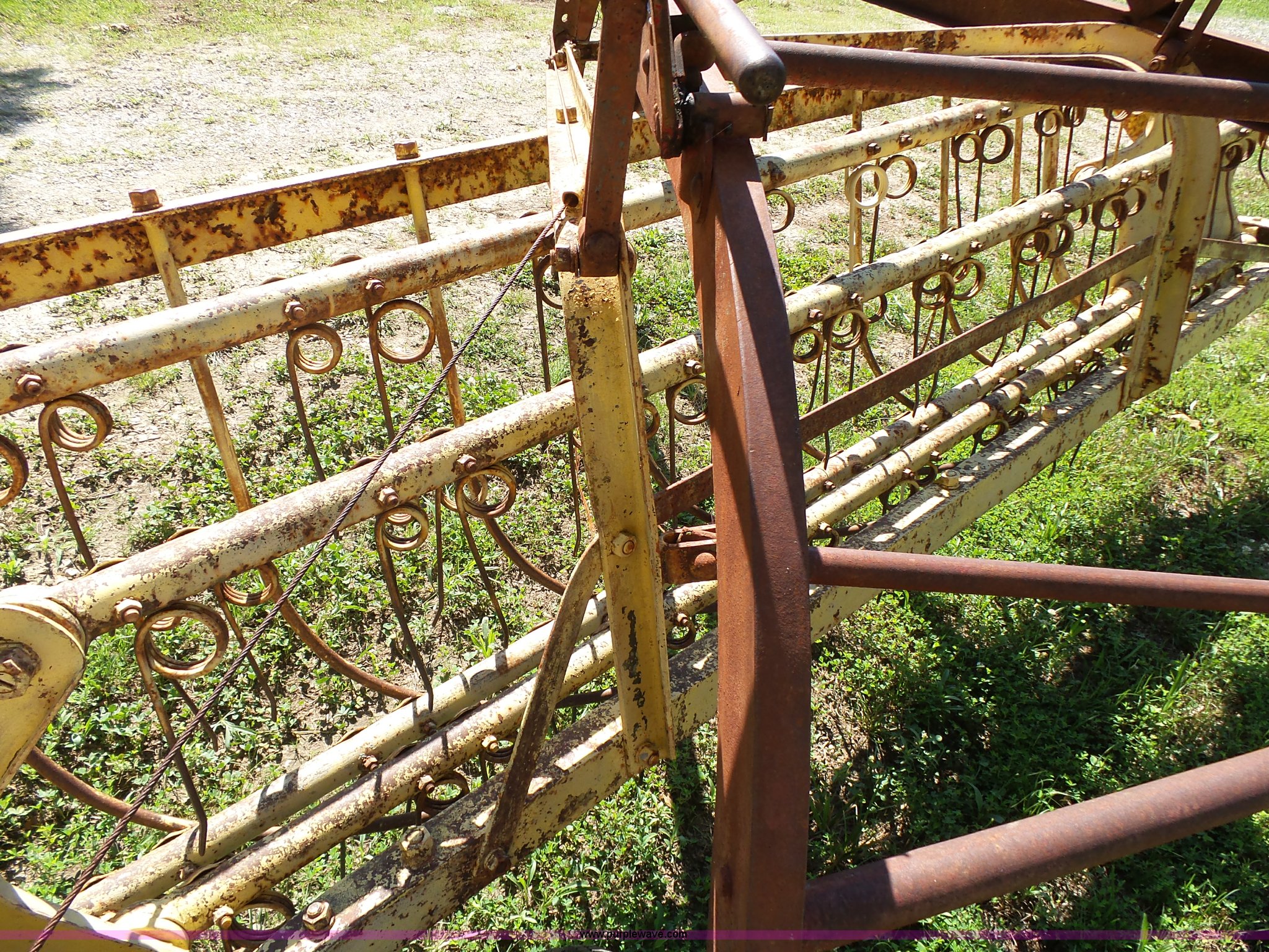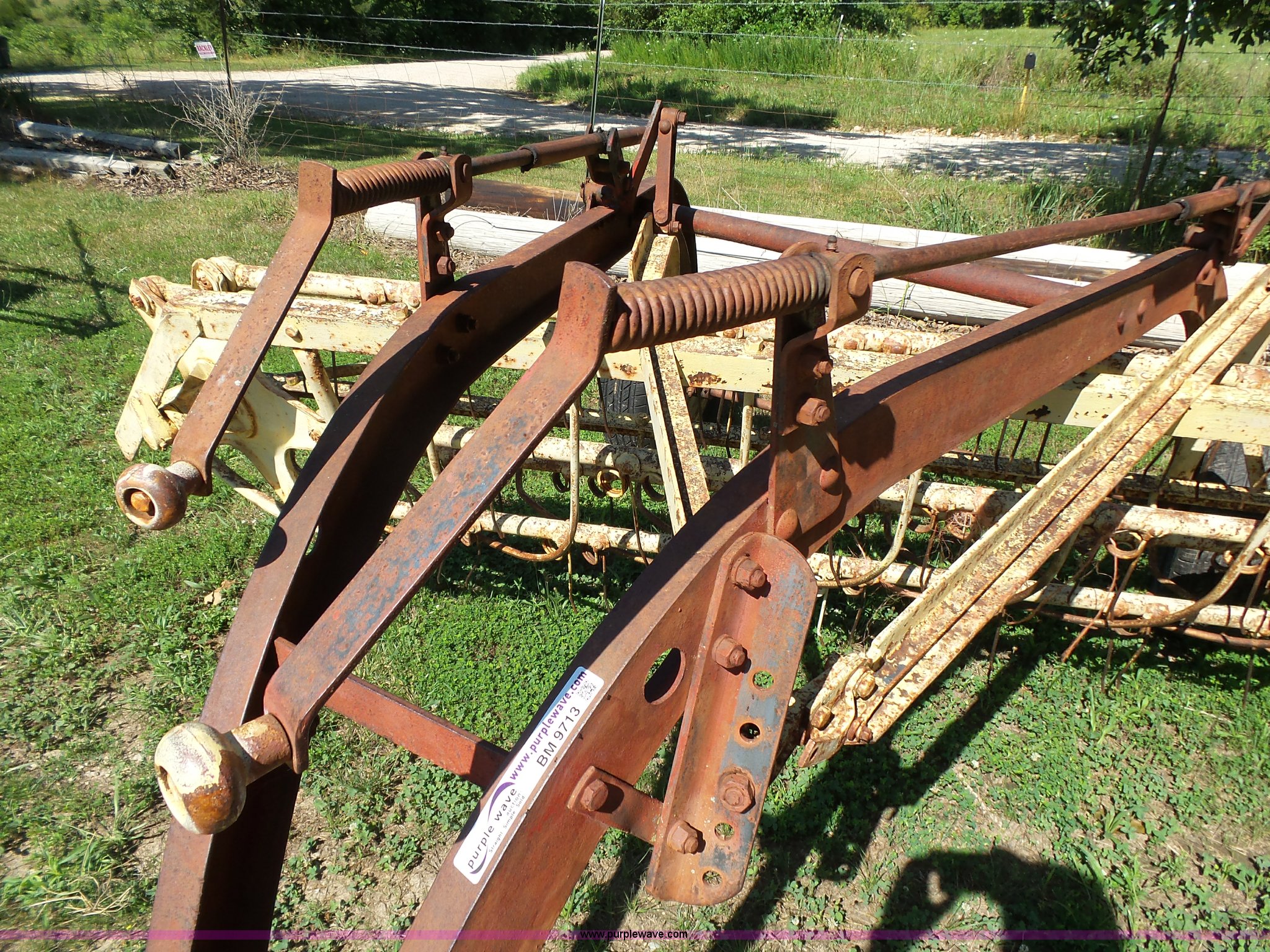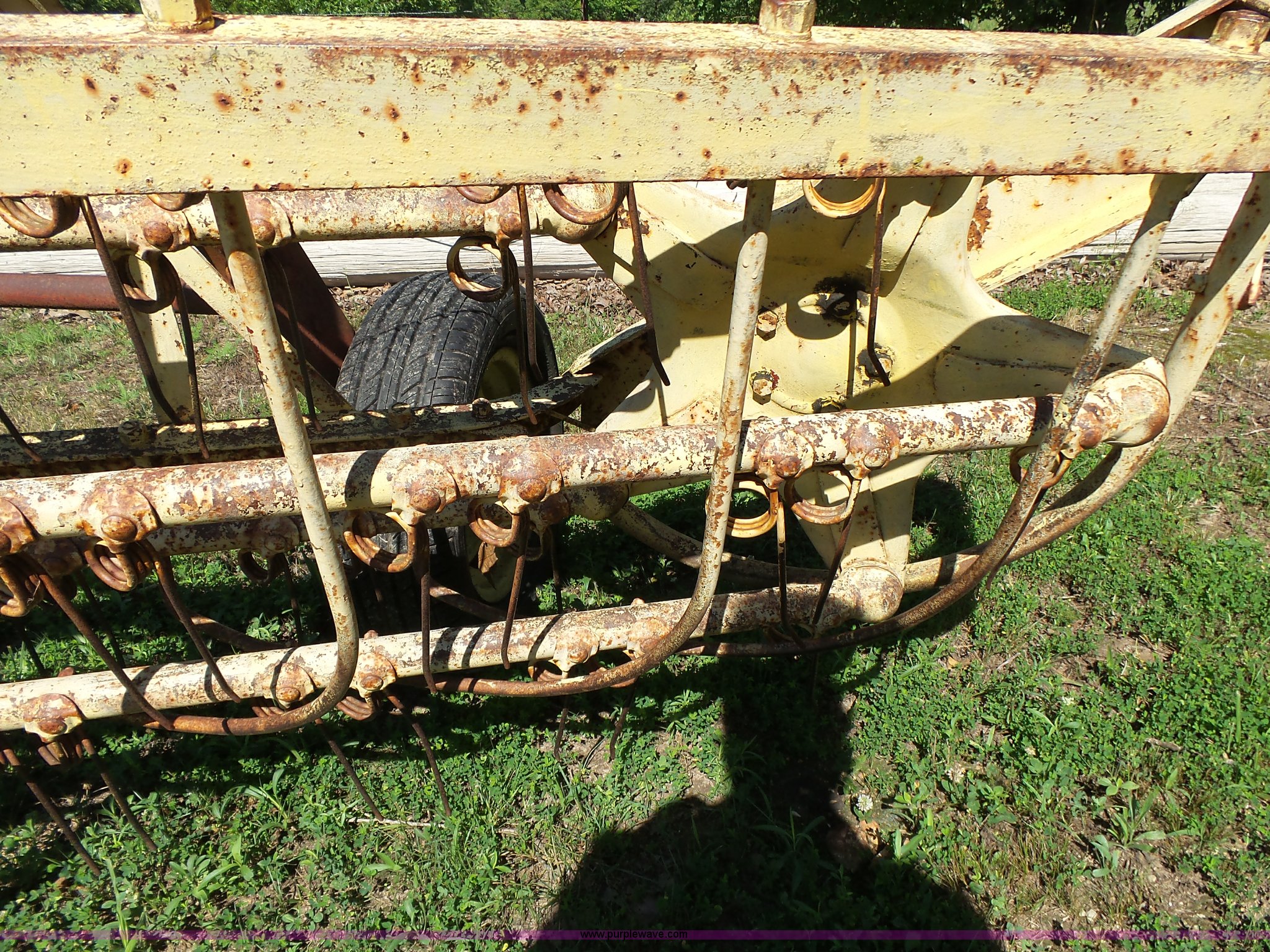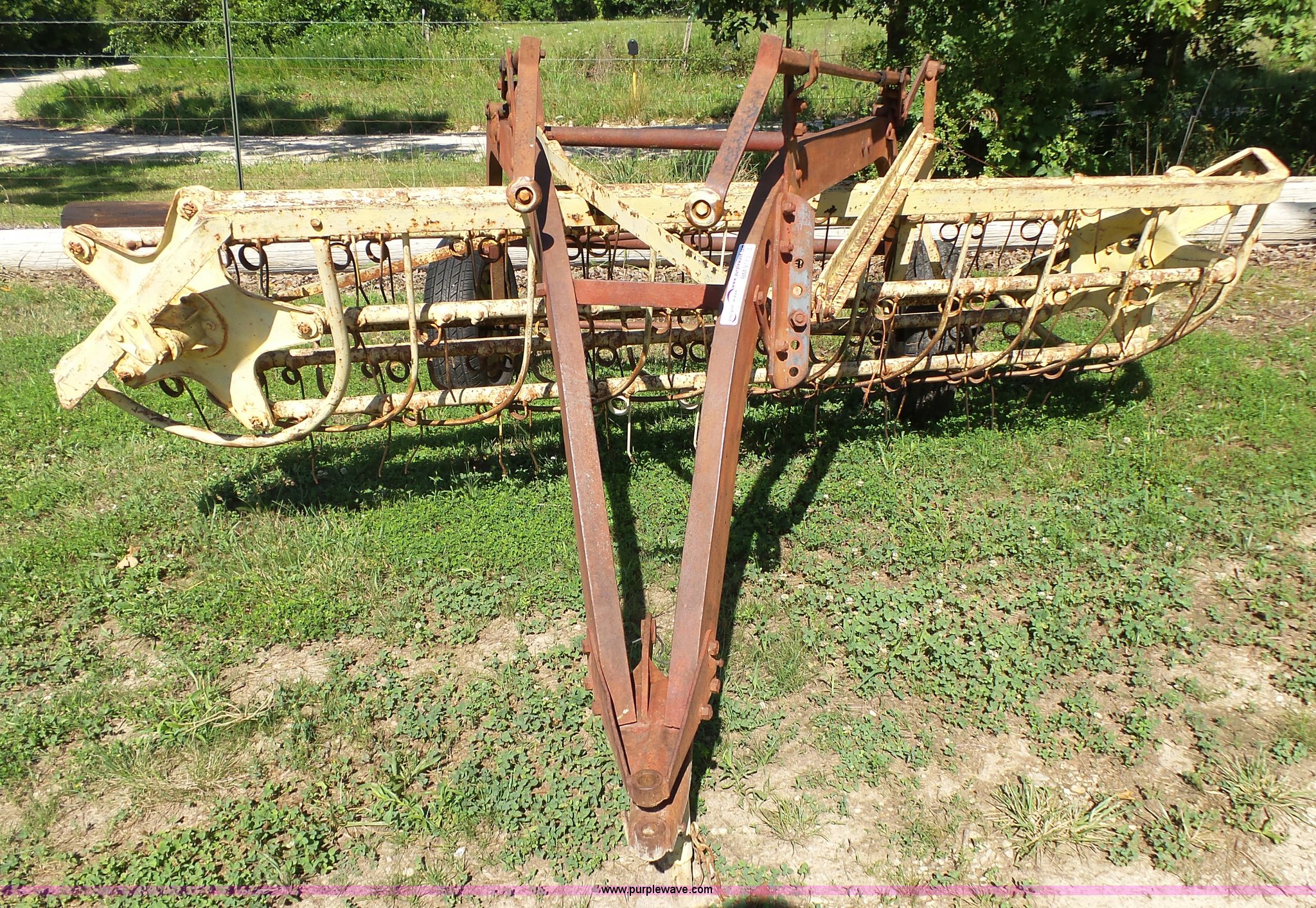 Purple Wave is selling a used Hay Rake in Missouri. This item is a New Holland 55 hay rake with the following: 9'W, Ground driven, Pin hitch, 205/65R15 tires, Serial 24996
