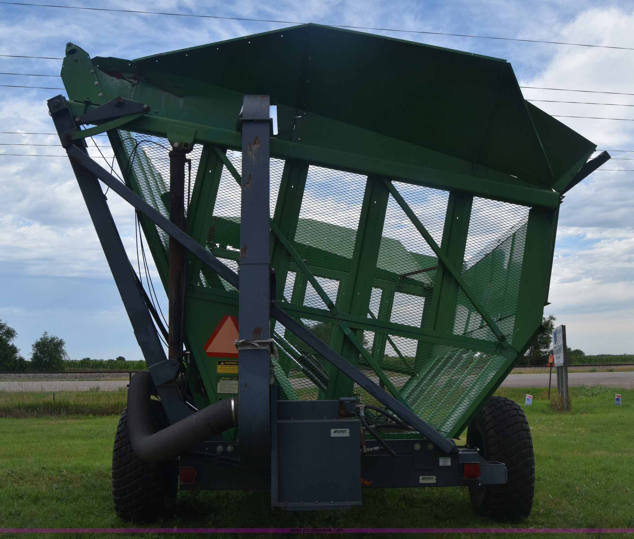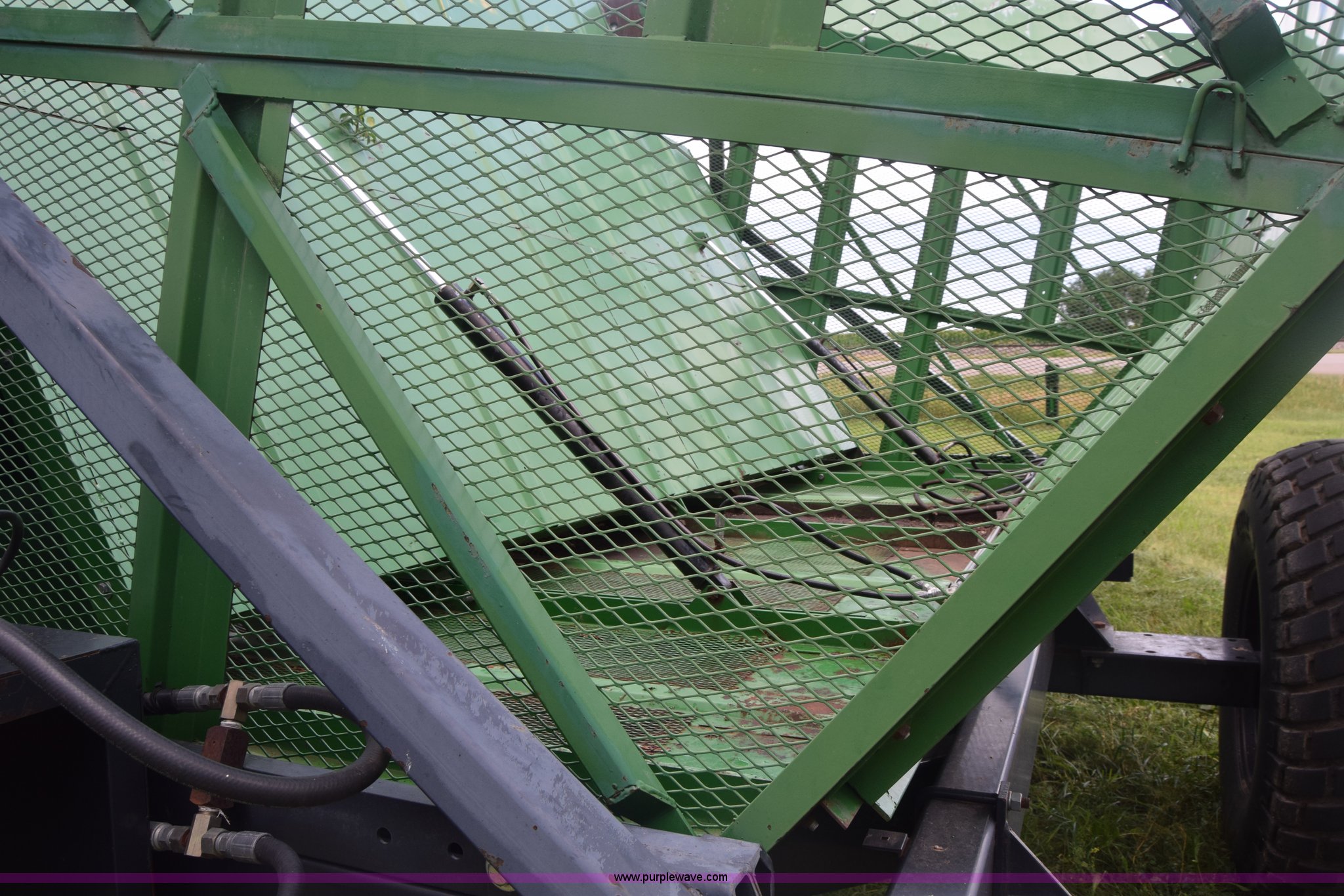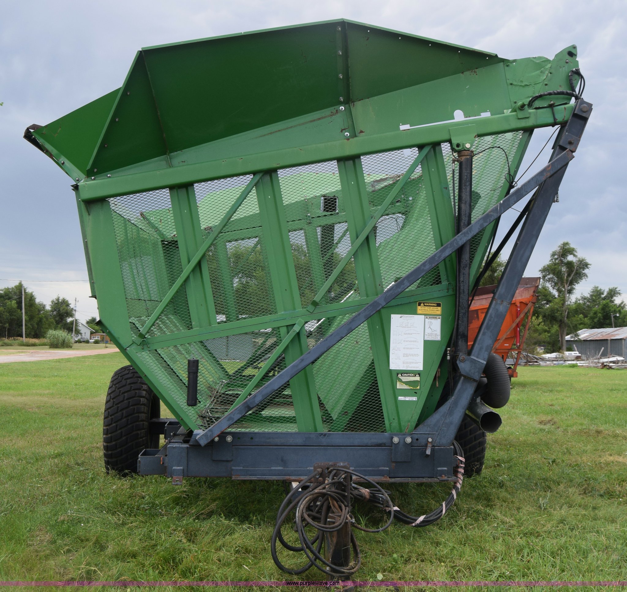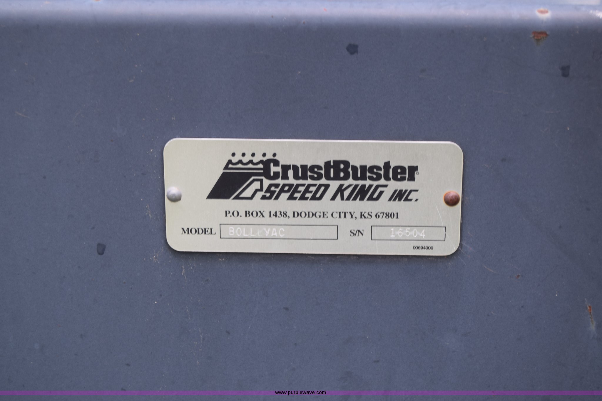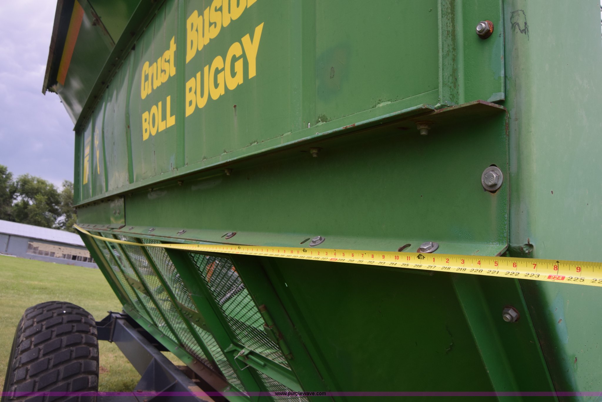 Purple Wave is selling a used Cotton Harvester Equip. in Kansas. This item is a CrustBuster boll buggy with the following: Approx. 18'L, CrustBuster boll vacuum system, 8" hose, Serial 16504, Lights, Hydraulic operation, Pin hitch, Single axle, 18.4-26 tires, Serial 16346