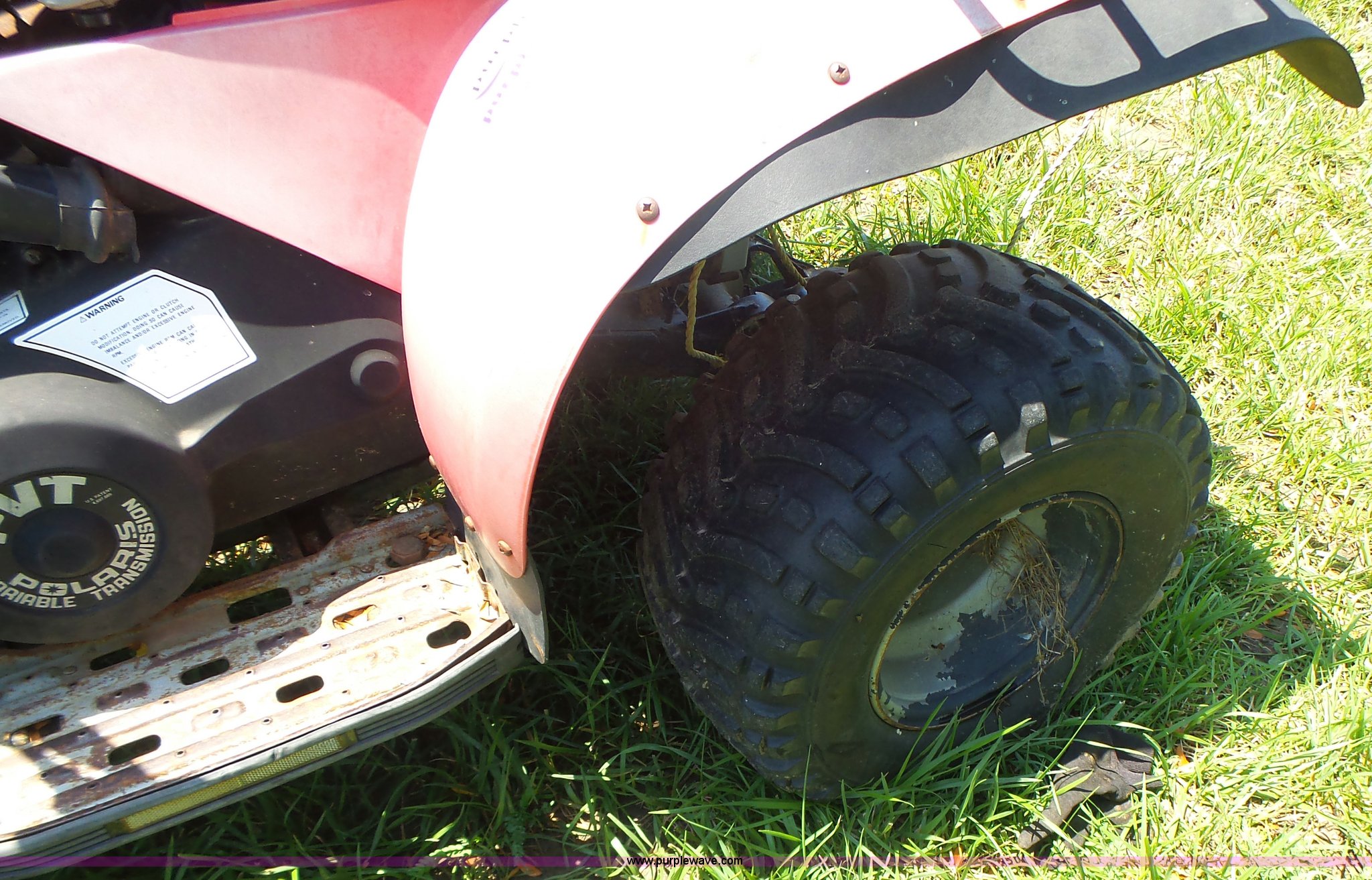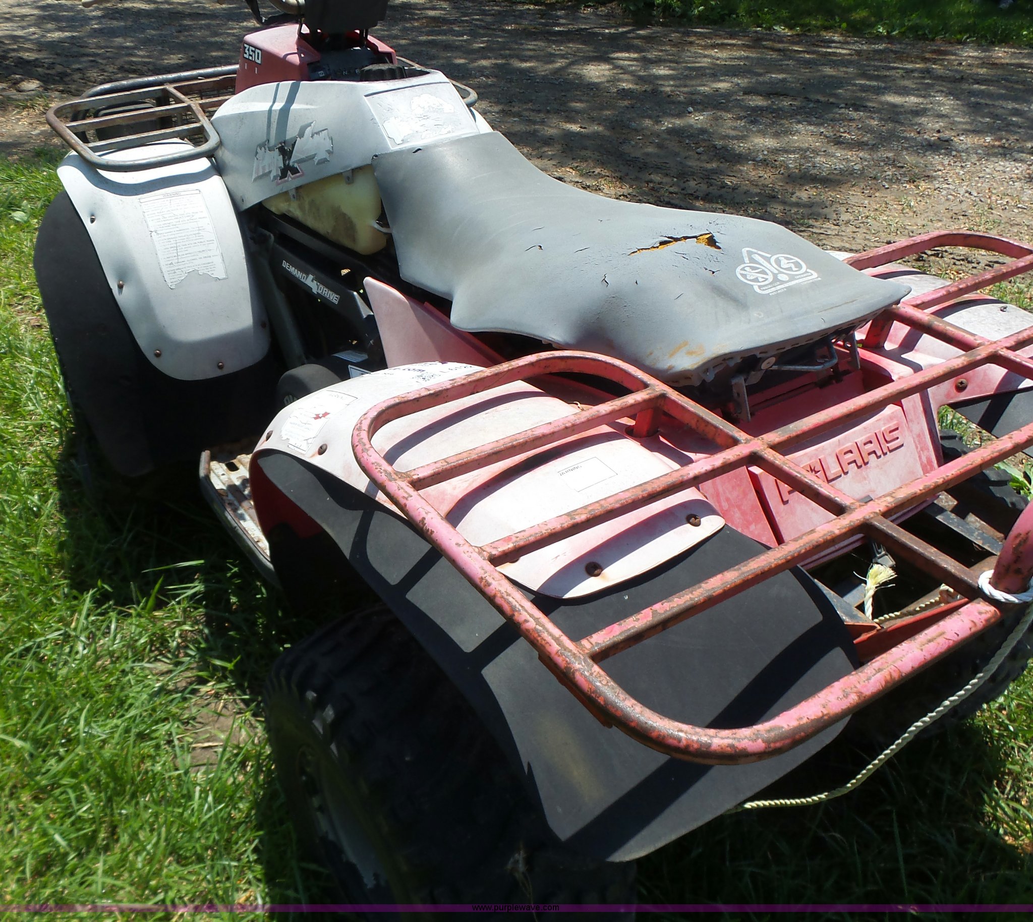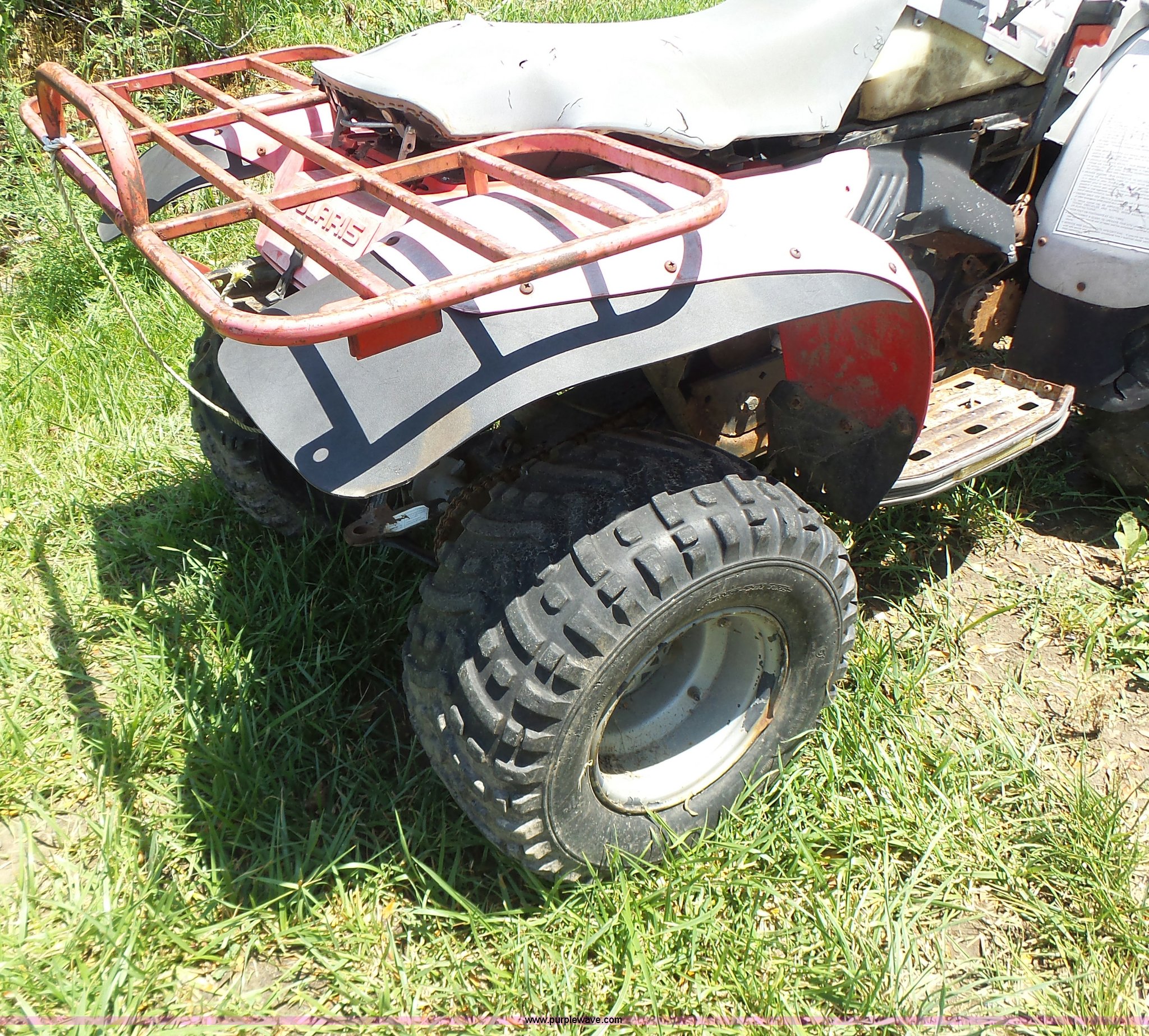 Purple Wave is selling a used ATV in Missouri. This item is a 1993 Polaris 350 ATV with the following: Single cylinder gas engine, Hi-Lo transmission, Four wheel drive, 22x11.00-10 tires, Nonperational