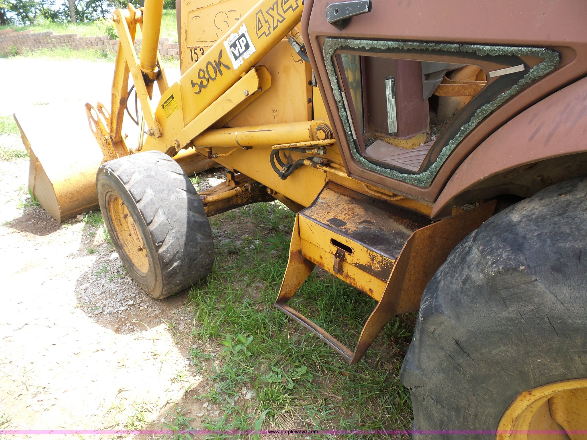 1990 Case 580K backhoe. 7,109 hours on meter, Cummins four cylinder diesel engine, Shuttle shift transmission 4F-4R gears, Four wheel drive, EROPS, Heat, Four stick backhoe controls, Front and rear work lights, 80"W loader bucket, 24"W backhoe bucket (5) teeth, Hydraulic outriggers, 12-16.5 front tires, 19.5-24 rear tires, 12,048 lbs. base operating weight, No glass, Serial JJG0024823. 28208 E Atherton Sibley Road. Sibley, MO 64088