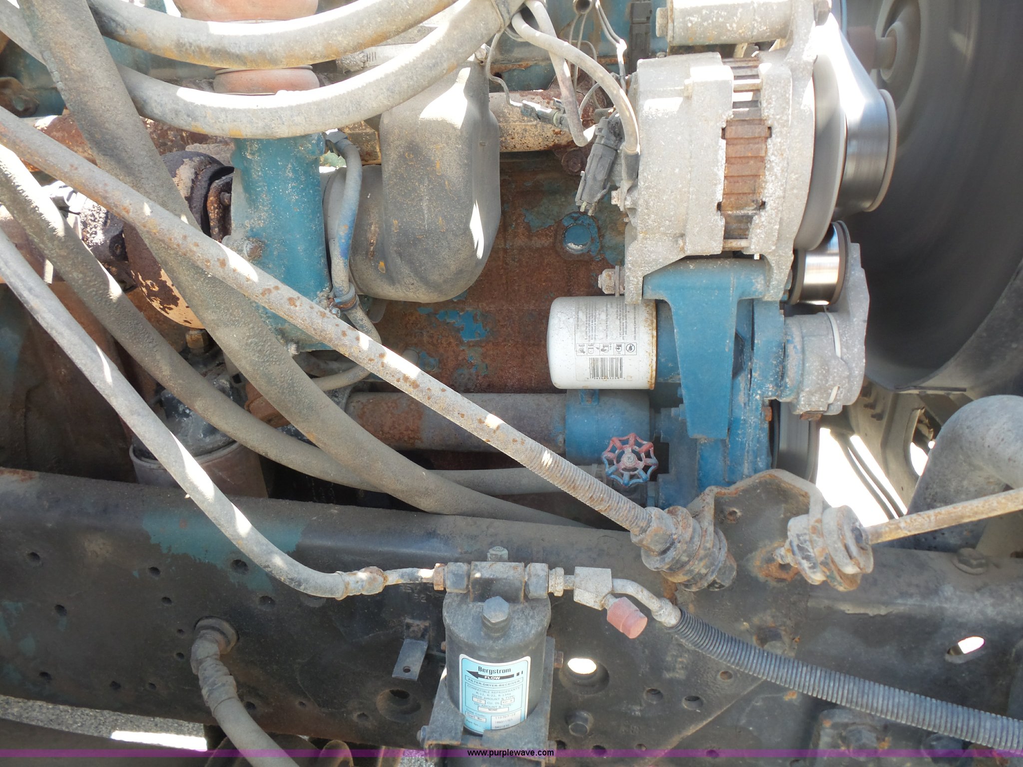 Purple Wave is selling a used Flat Bed Truck in Missouri. This item is a 1995 International 2674 flatbed truck with the following: 468,126 miles on odometer, International DT530 8.7L L6 turbo diesel engine, Eaton Fuller RTX-11708LLDBL Lo eight speed manual transmission, Tandem axle, Inter-axle differential lock, AC and heat, Air suspension seat, 18'L flatbed, Toolboxes, Single rear exhaust stack, Single fuel tank, Double frame, Tire pressure system, Spring over walking beam suspension, Air brakes, 385/65R22.5 front tires, 11R22.5 rear tires, FAWR 18,000 lbs, IAWR 20,000 lbs, RAWR 20,000 lbs