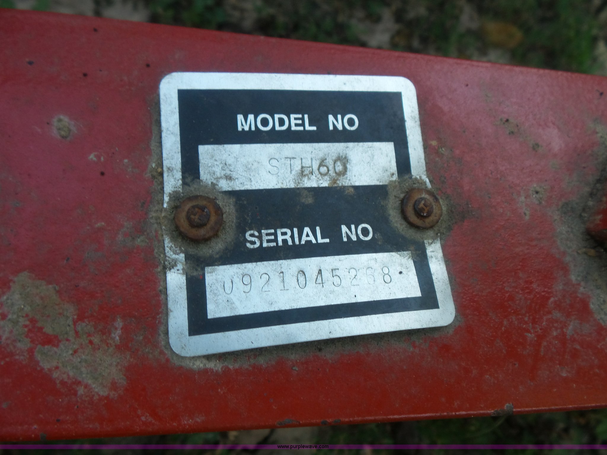 Purple Wave is selling a used Tillage Other in Missouri. This item is a Harrow with the following: Model STH60, Manual fold, Three point, Serial 0921045268