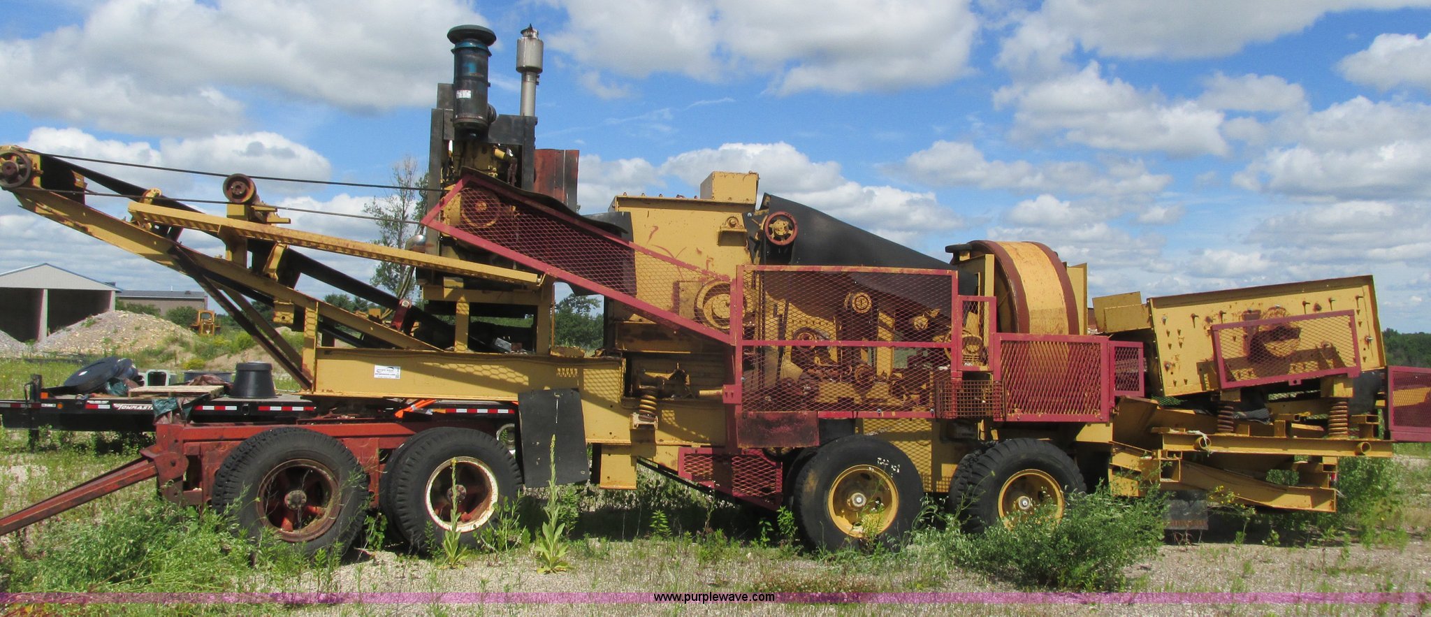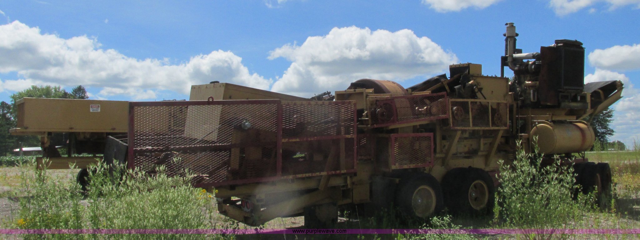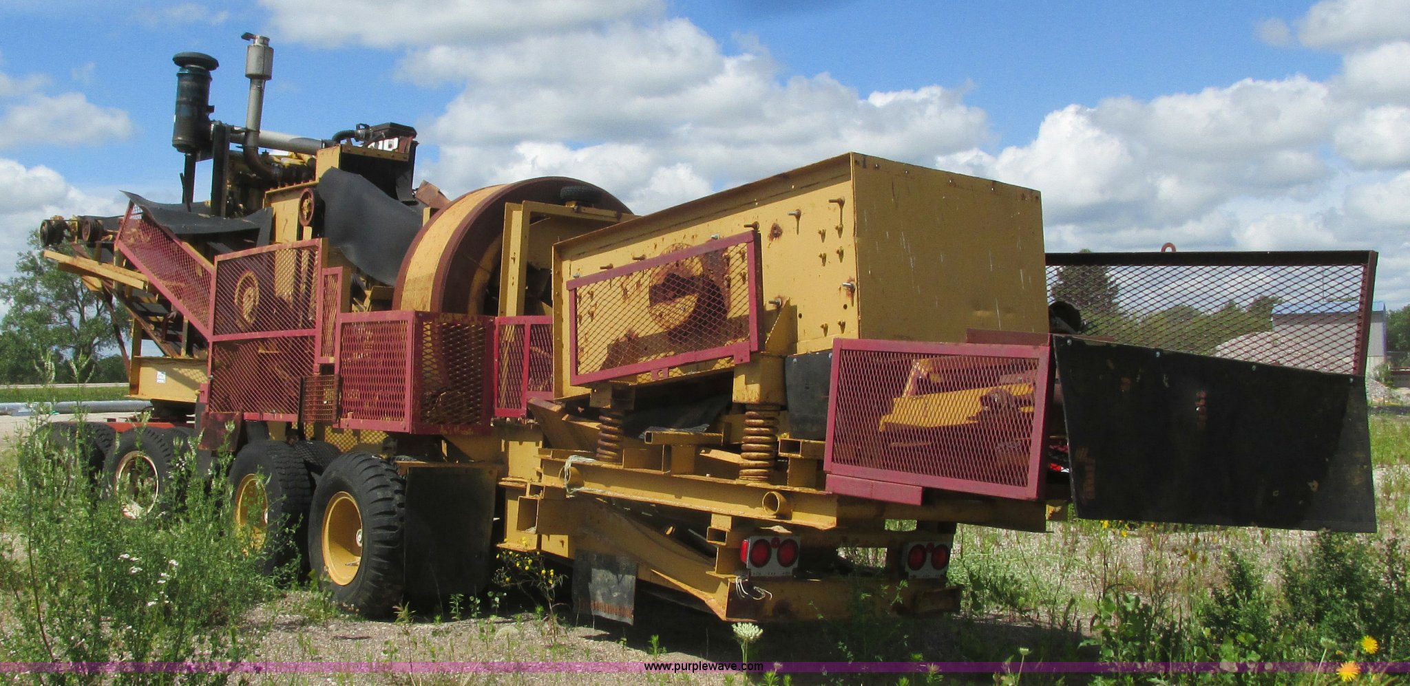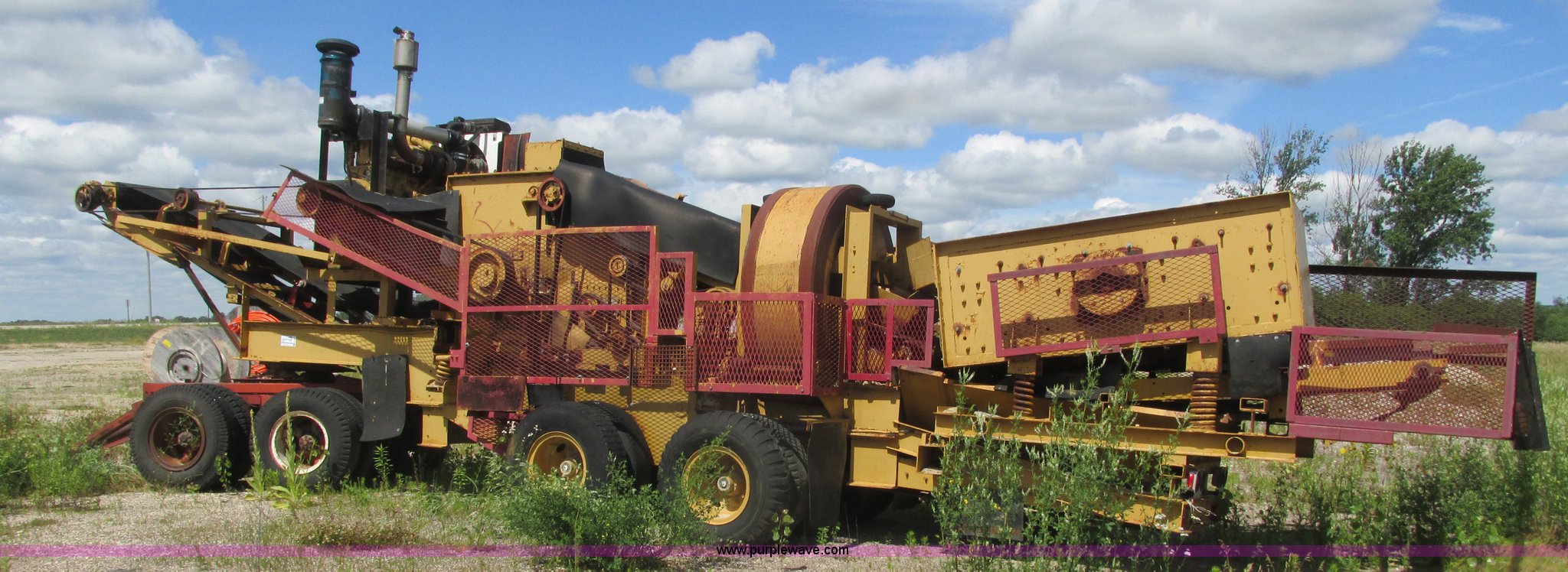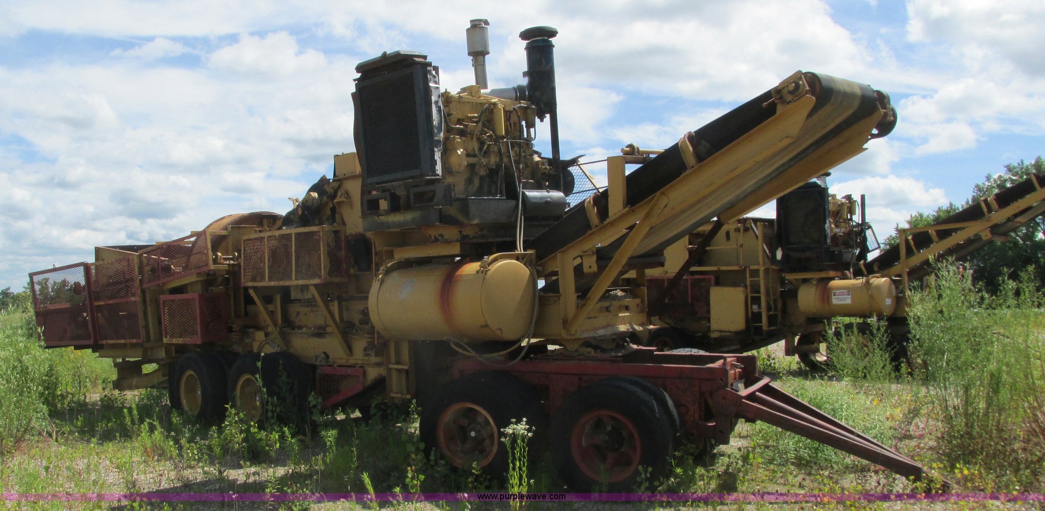 Purple Wave is selling a used Crusher or Crushing Plant in Minnesota. This item is a Hammer-roll impact crusher with the following: Caterpillar six cylinder turbo diesel engine, 400 HP, 45" x 35" impactor, Dual shaker deck screens, 4' x 8' dual screen deck, 2' x 10' single screen deck, Belt driven, 32"W conveyor, Pintle hitch dolly or fifth wheel plate, 10.00-20 tires