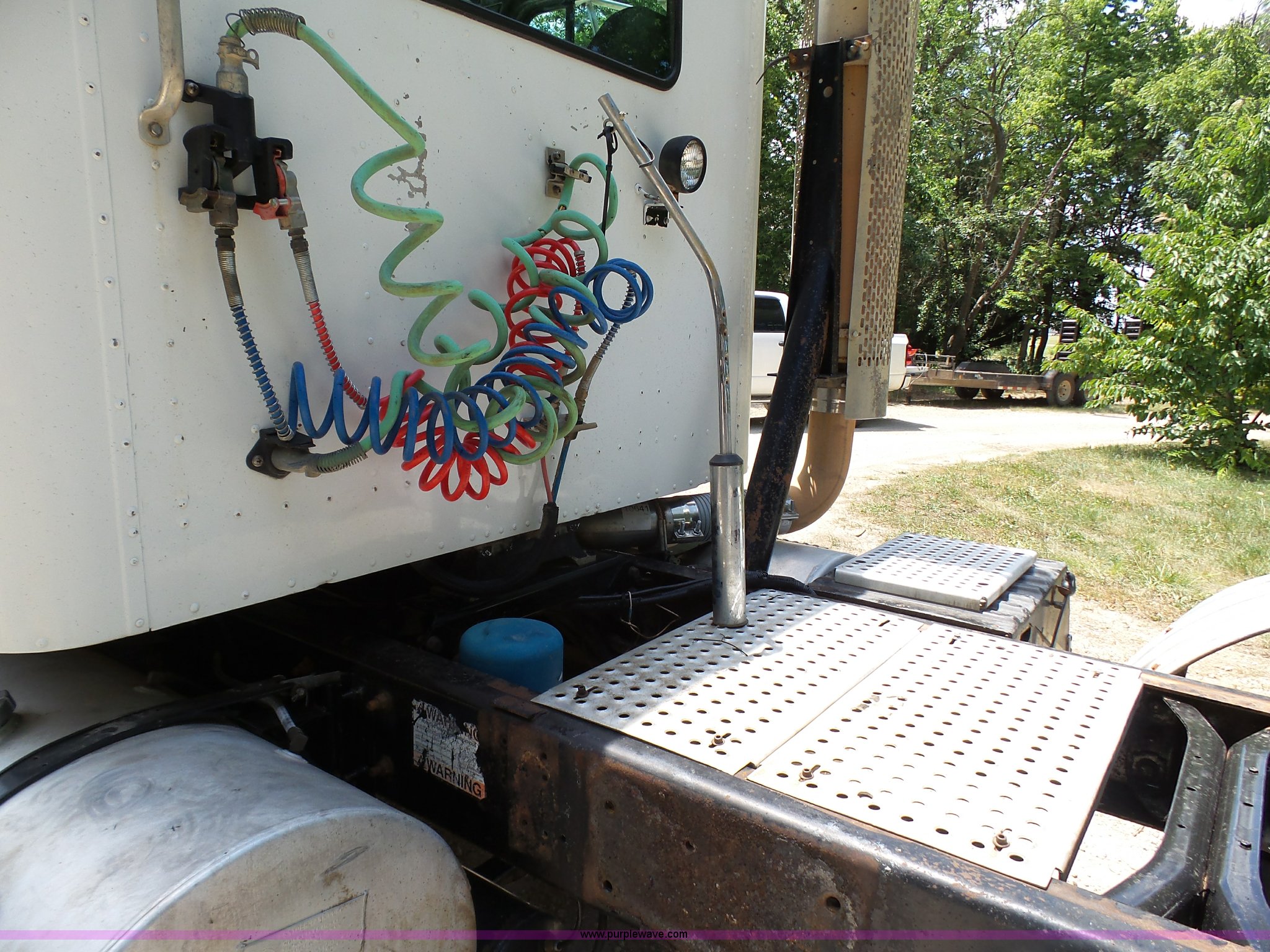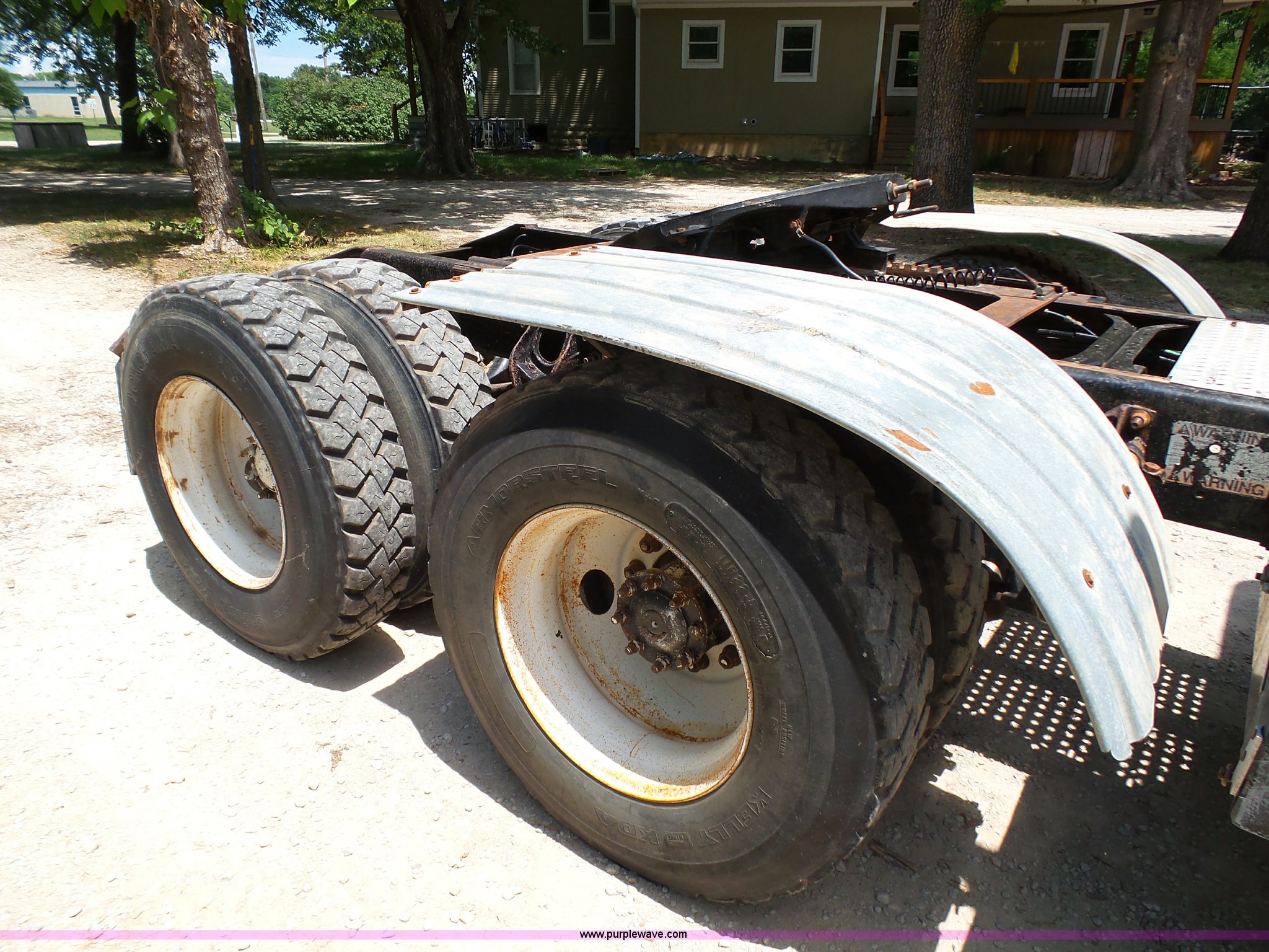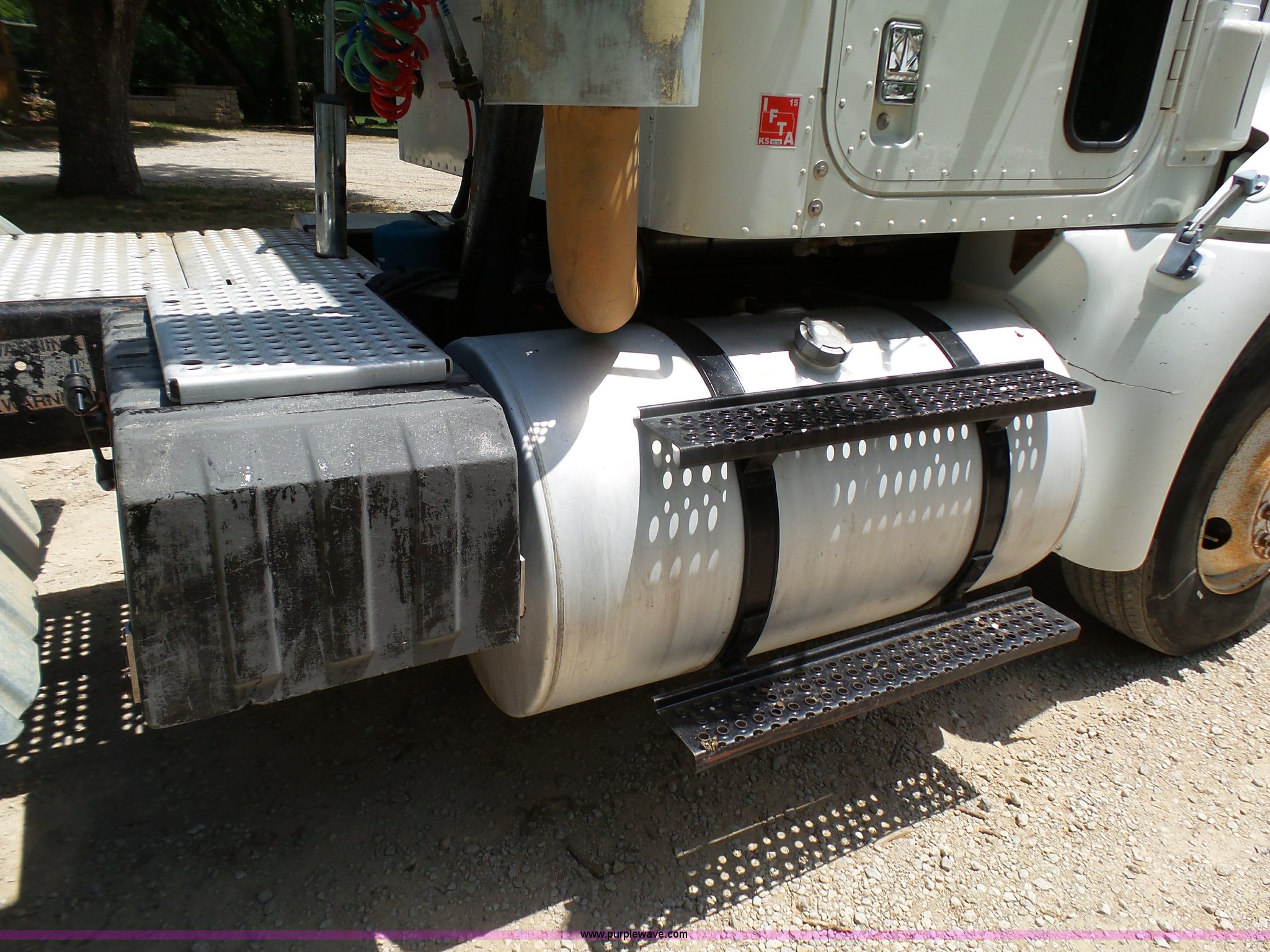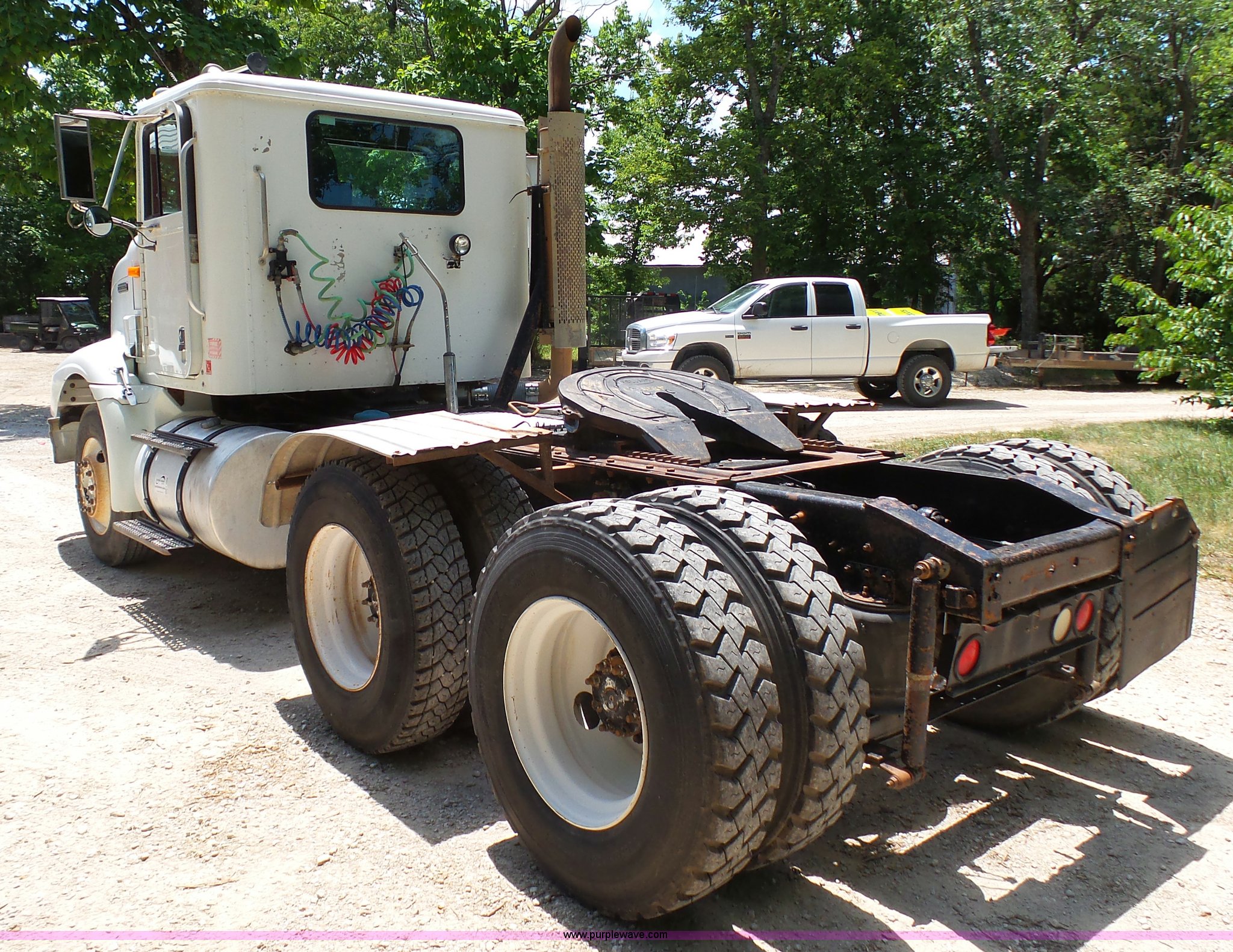 Purple Wave is selling a used Truck Tractor in Kansas. This item is a 1998 International 9100 semi truck with the following: 526,899 miles on odometer, Cummins M11 10.8L L6 turbo diesel engine, Rockwell 10 speed manual transmission, Tandem axle, Full screw, AC and heat, AM/FM/cassette, Power and heated mirrors, Air suspension seat, Leather seat, PTO, Sliding fifth wheel plate, Single exhaust stack, Dual fuel tanks, Half fenders, 161" wheelbase, Air suspension, Air brakes, 295/75R22.5 front tires, 11R22.5 rear tires, GVWR 52,000 lbs