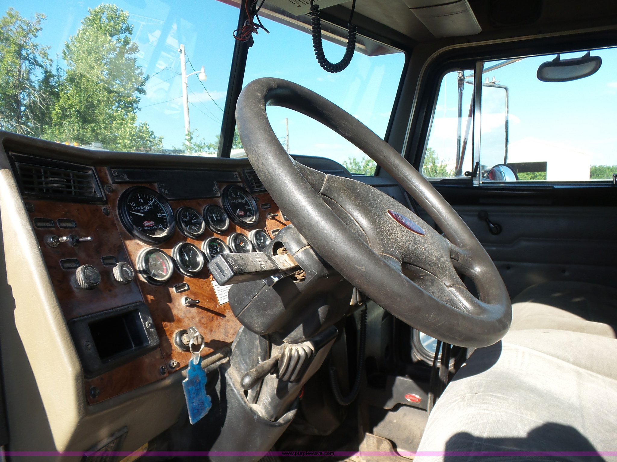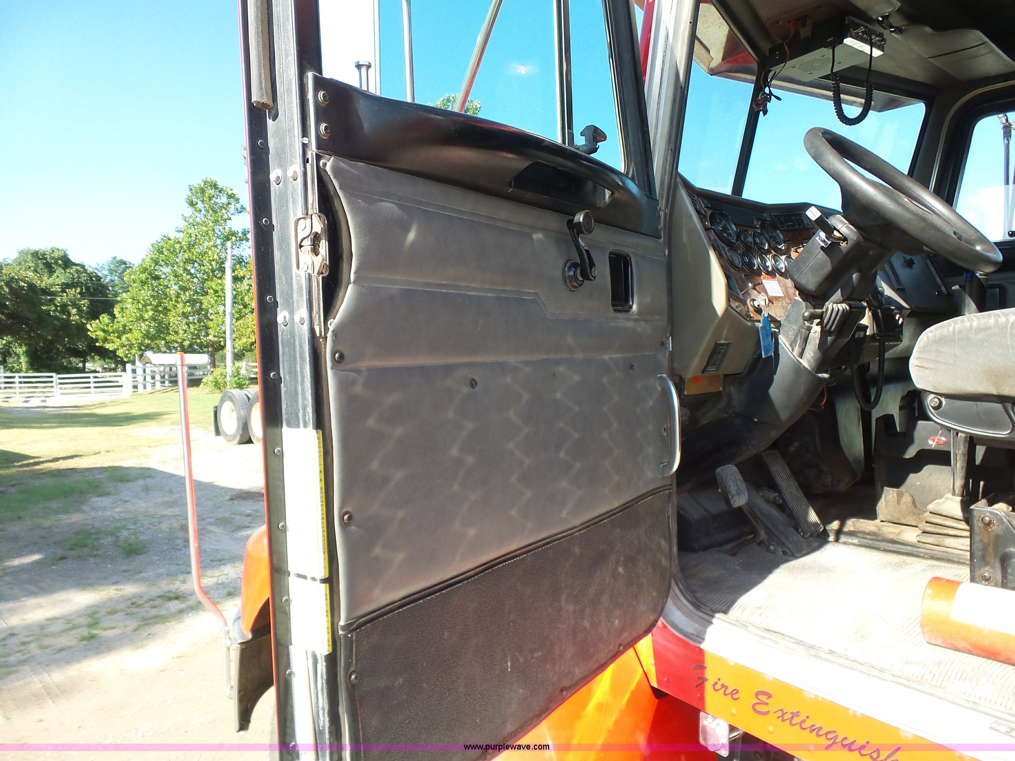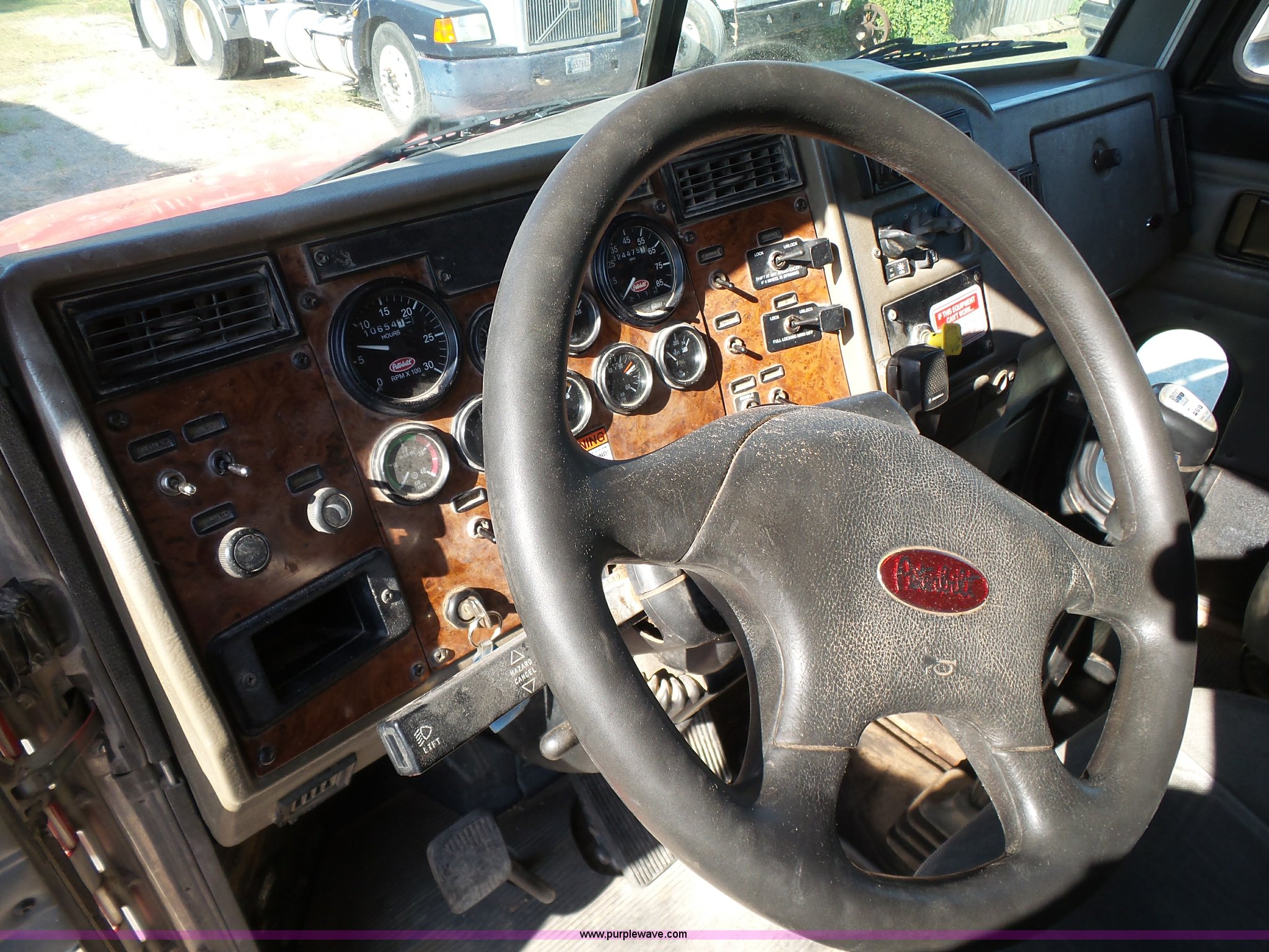 Purple Wave is selling a used Construction Dump Truck in Oklahoma. This item is a 2003 Peterbilt 330 dump truck with the following: 224,475 miles on odometer, 10,654 hours on meter, Caterpillar 3126 7.2L L6 turbo diesel engine, Eaton Fuller eight speed manual transmission, Tandem axle, Inter-axle differential lock, AC and heat, Tilt, Telescoping steering wheel, Cruise, AM/FM, Power and heated mirrors, Air suspension seat, Block heater, Air ride cab, Exterior visor, PTO, McLain 502F steel dump bed, Single ram hoist, Air operated end gate, Roll-over tarp, 15 ton capacity, Single fuel tank, Pintle hitch, Hendrickson suspension, Air brakes, Engine brake, 11R24.5 tires, FAWR 14,600 lbs, IAWR 20,000 lbs, RAWR 20,000 lbs, 20,000 lbs tag axle